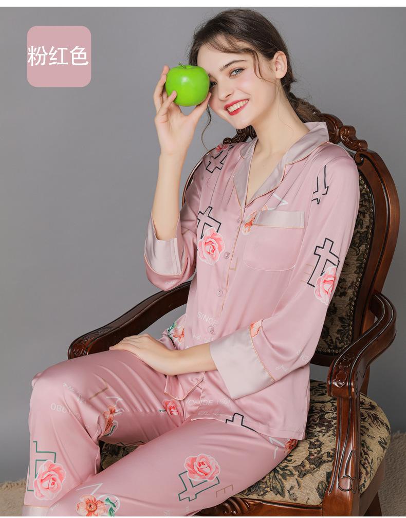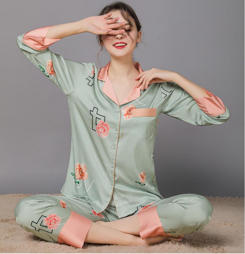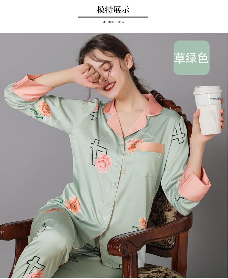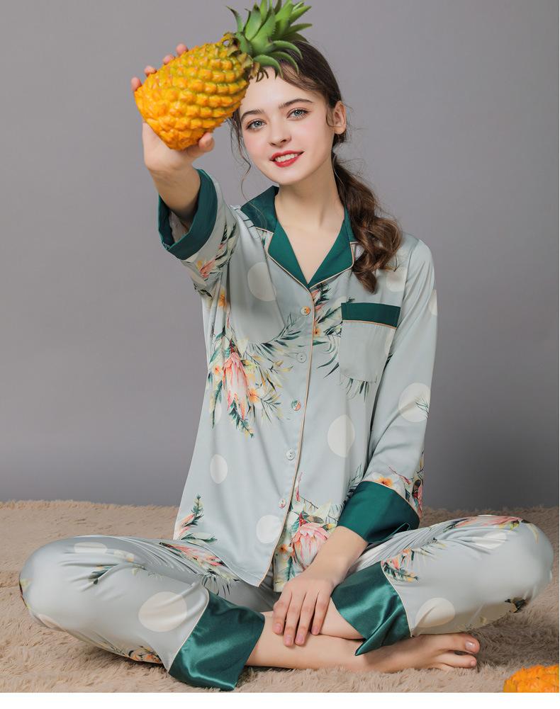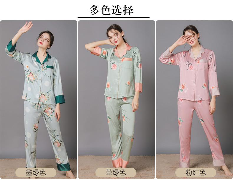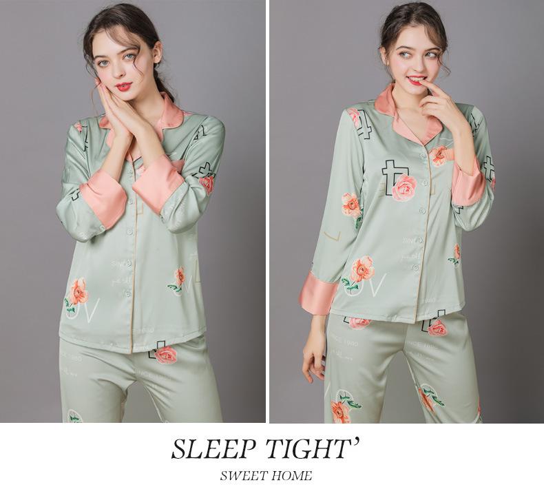 Conjunto de pijama de verano para mujer, pijama sexy de seda de manga larga suave, ropa de hogar al por mayor, primavera y otoño, seda fina de hielo