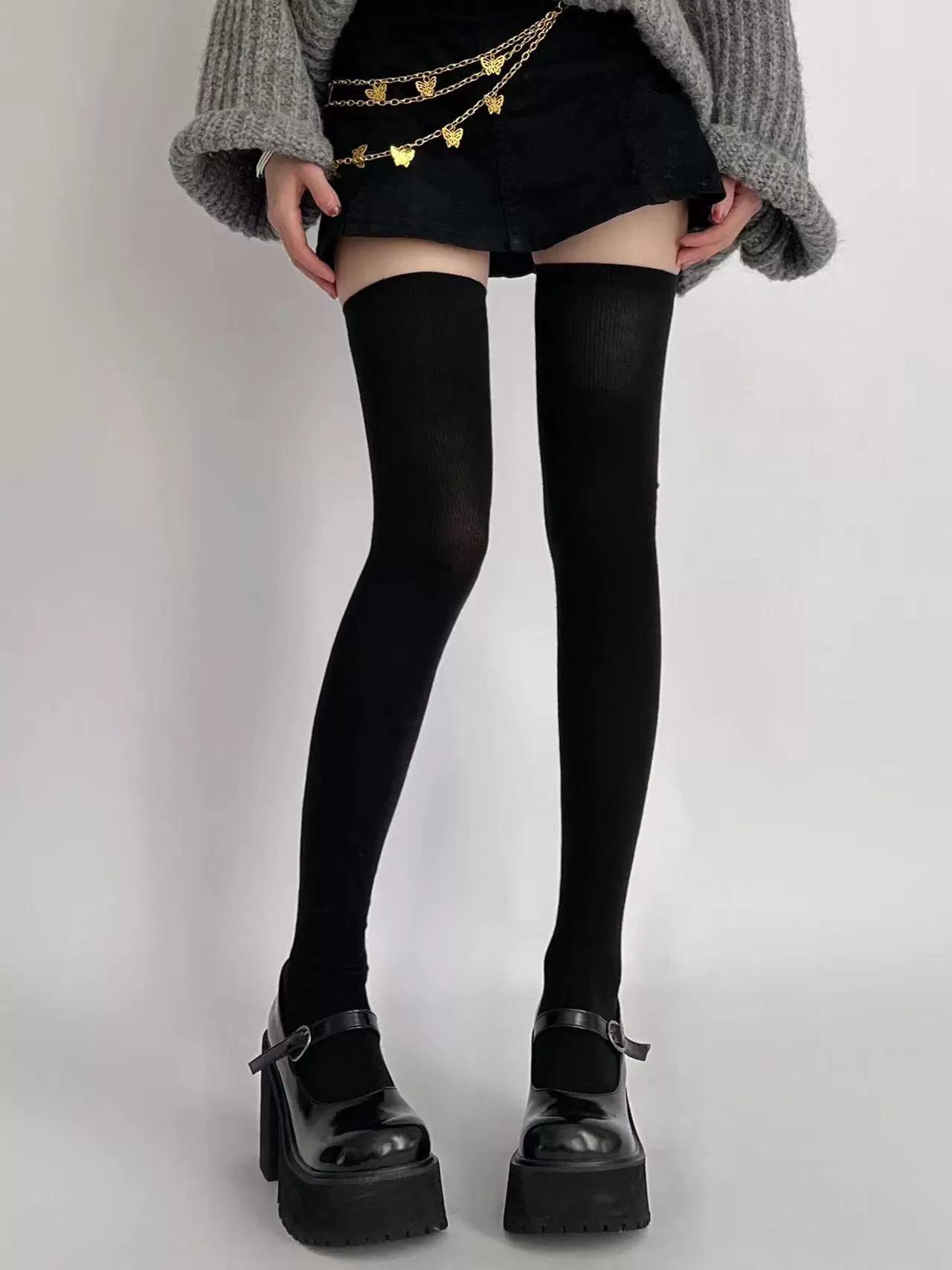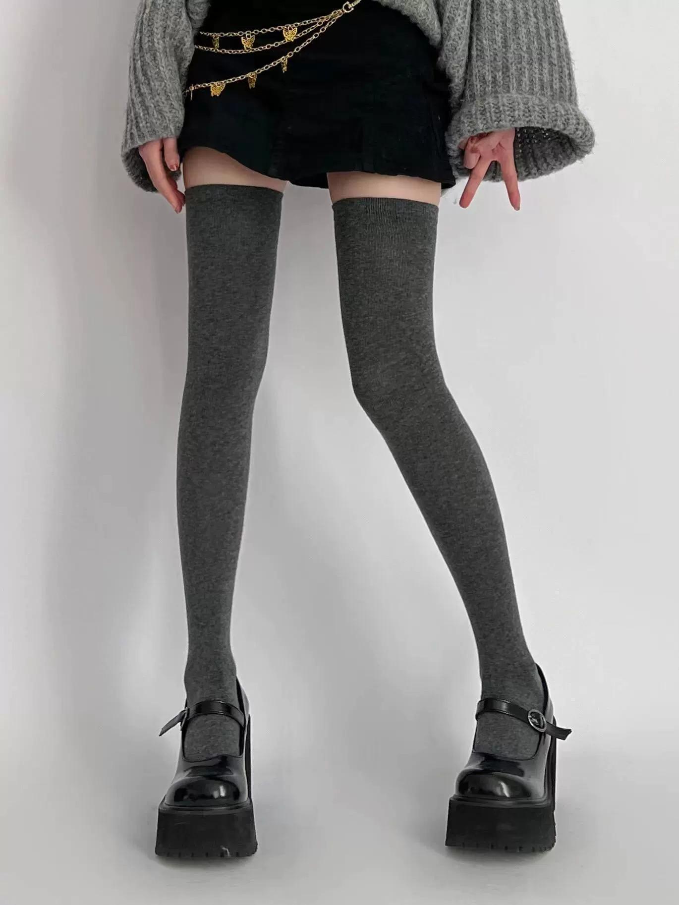 Black over-the-knee socks, White over-the-knee socks, Dark gray over-the-knee socks