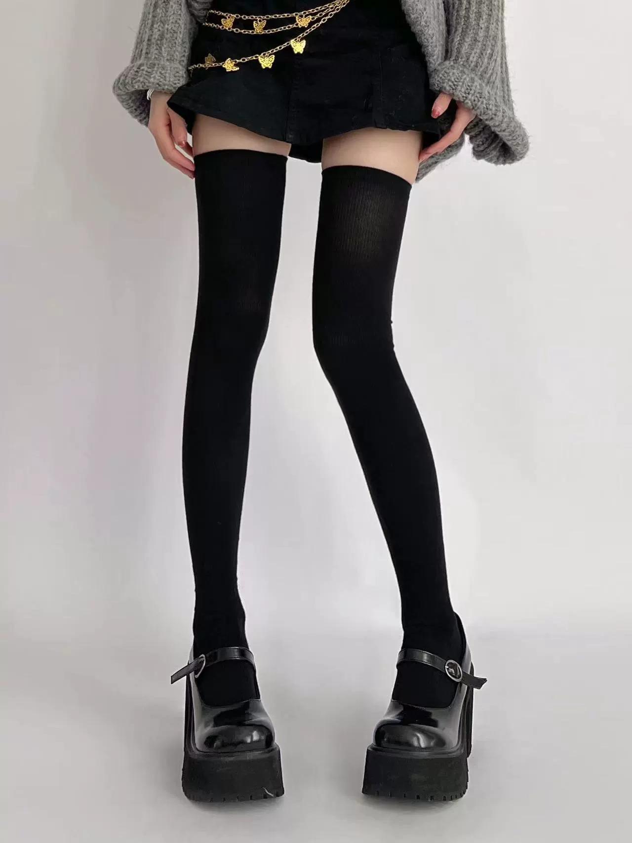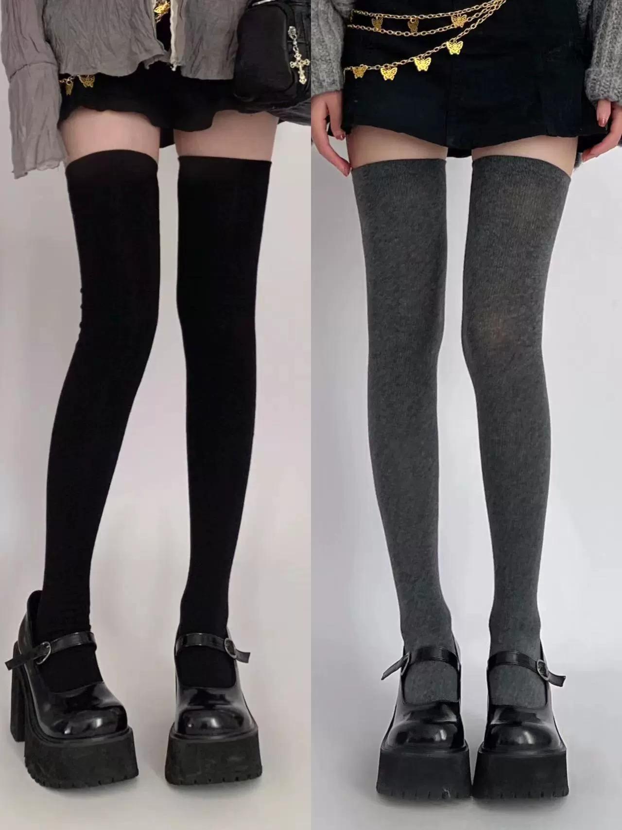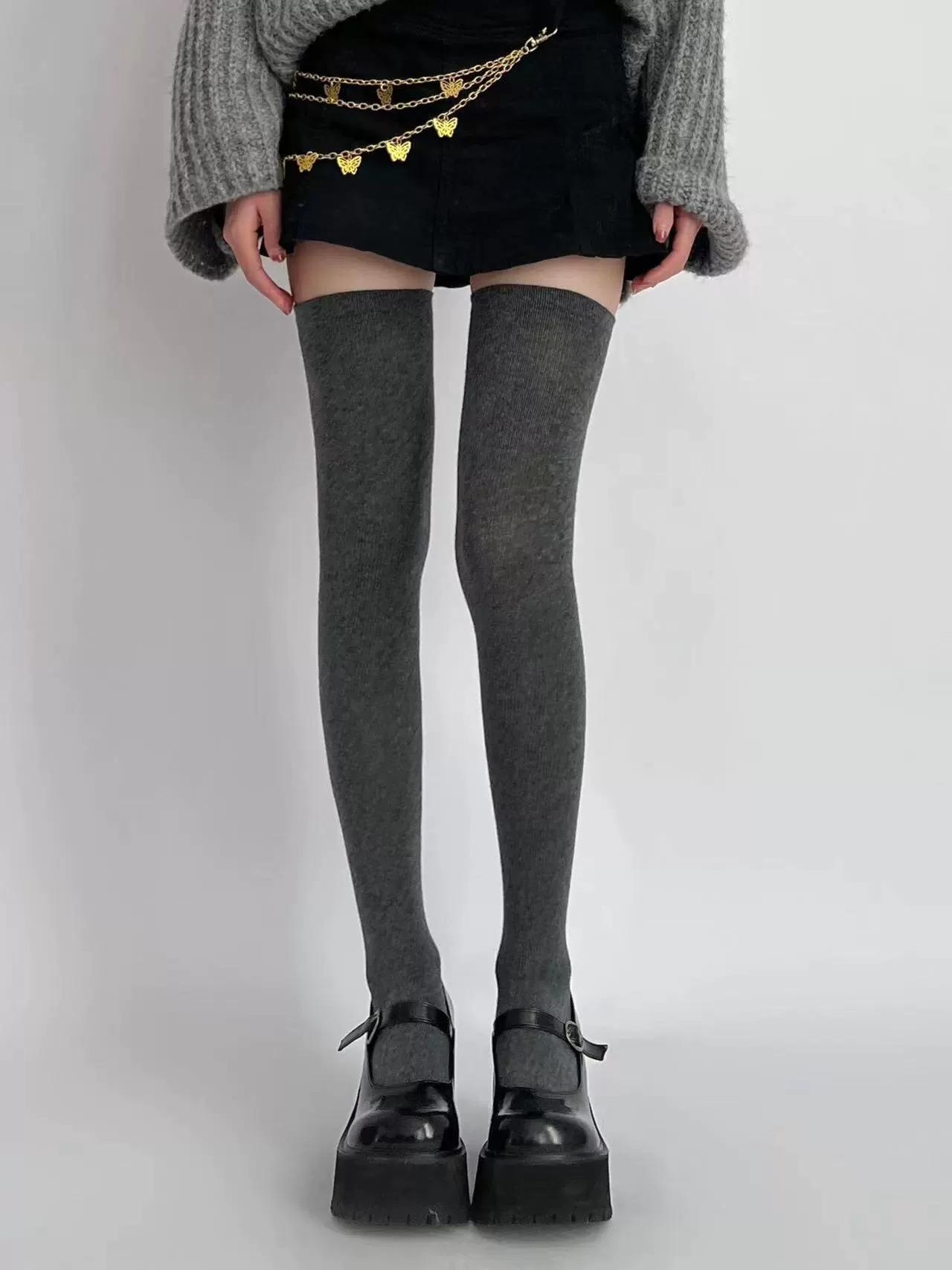 Calcetines negros por encima de la rodilla para mujer, calcetines finos jk de otoño e invierno, calcetines japoneses grises adelgazantes estilo preppy para primavera y otoño.
