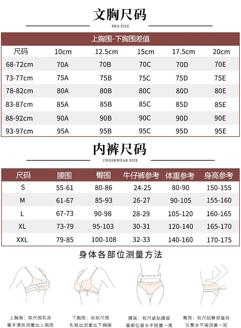 Este producto está actualmente en stock con talla 75 para ropa interior talla S, talla 80 para ropa interior talla M y talla 85 para ropa interior talla L. Las tallas correspondientes son consistentes con las tallas de gran volumen anteriores, pero el método de marcado es diferente al del pasado. Si le importa, ¡tenga cuidado al comprar!