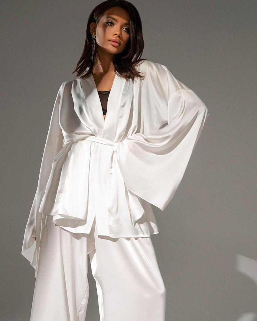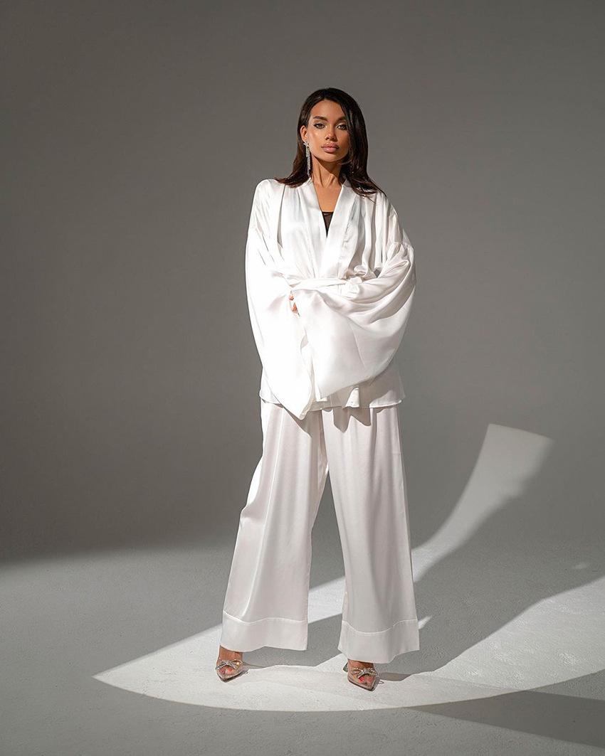 Pijama de dos piezas para el hogar, ropa de dormir blanca cómoda, de moda europea y americana, novedad de verano de 2024