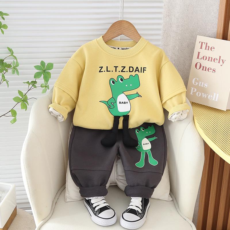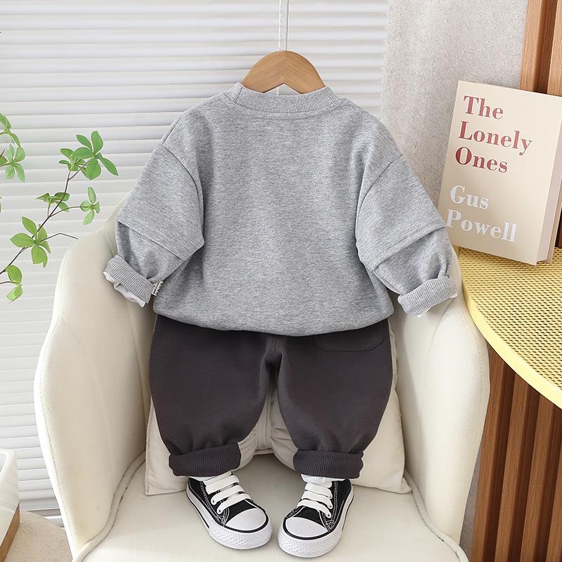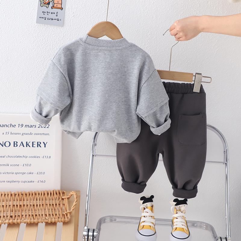 Traje para niños Primavera y otoño 2024 Nuevo conjunto de dos piezas de manga larga de estilo occidental de moda para 3 niños Ropa casual para niños de 6 años