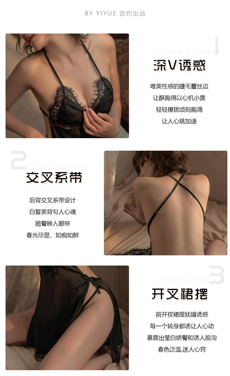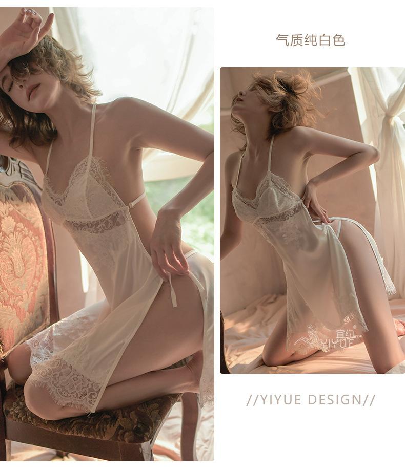 Compra Ropa Interior Sexy Yiyo Encaje Sexy Tentación Tirantes Pijama Pestañas Caliente Abertura Conjunto Ropa de Noche Uniforme 8271 al por mayor en Joom.pro