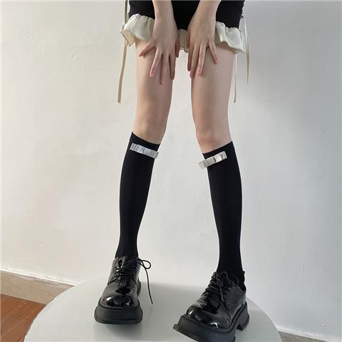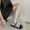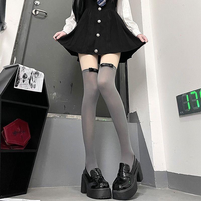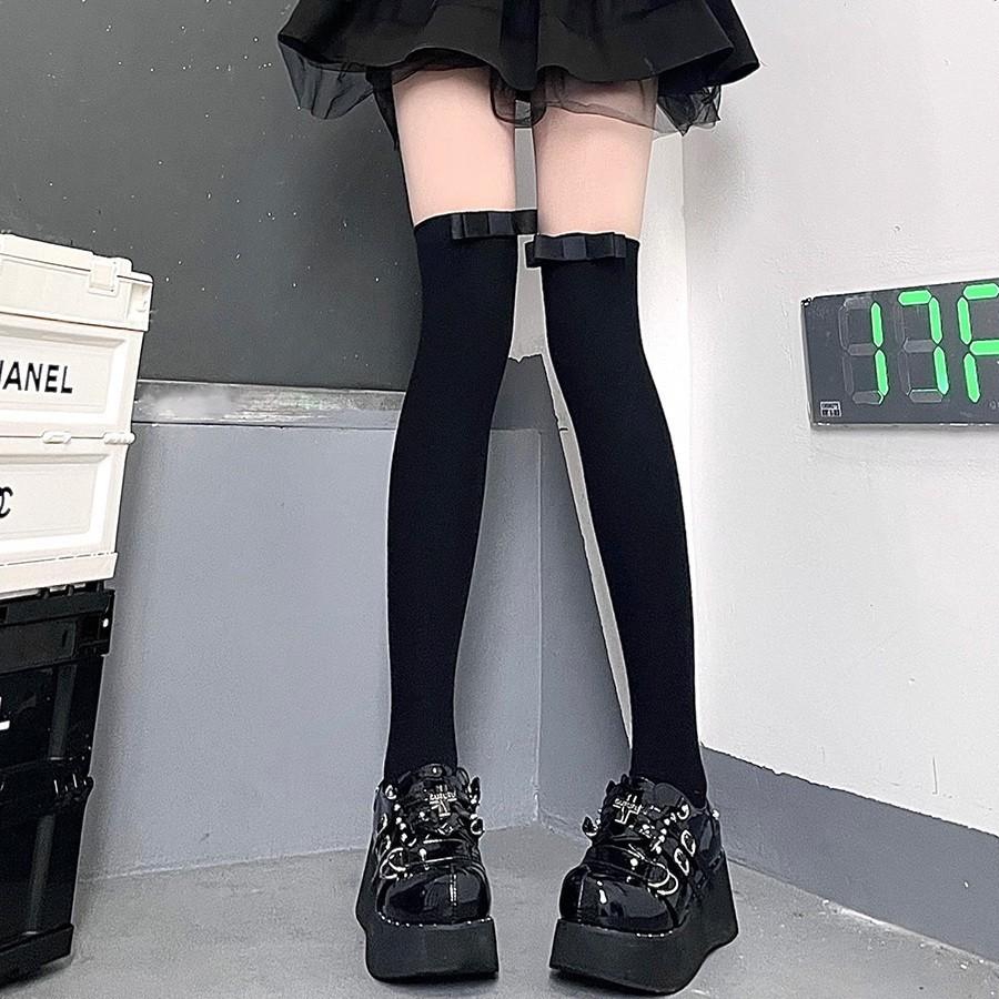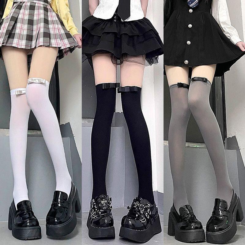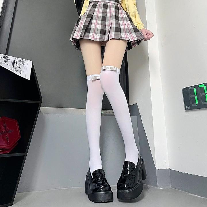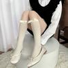 Calcetines japoneses de terciopelo blanco puro por encima de la rodilla, finos y de verano, famosos en Internet, con lazo y tubo largo que adelgaza el muslo.