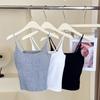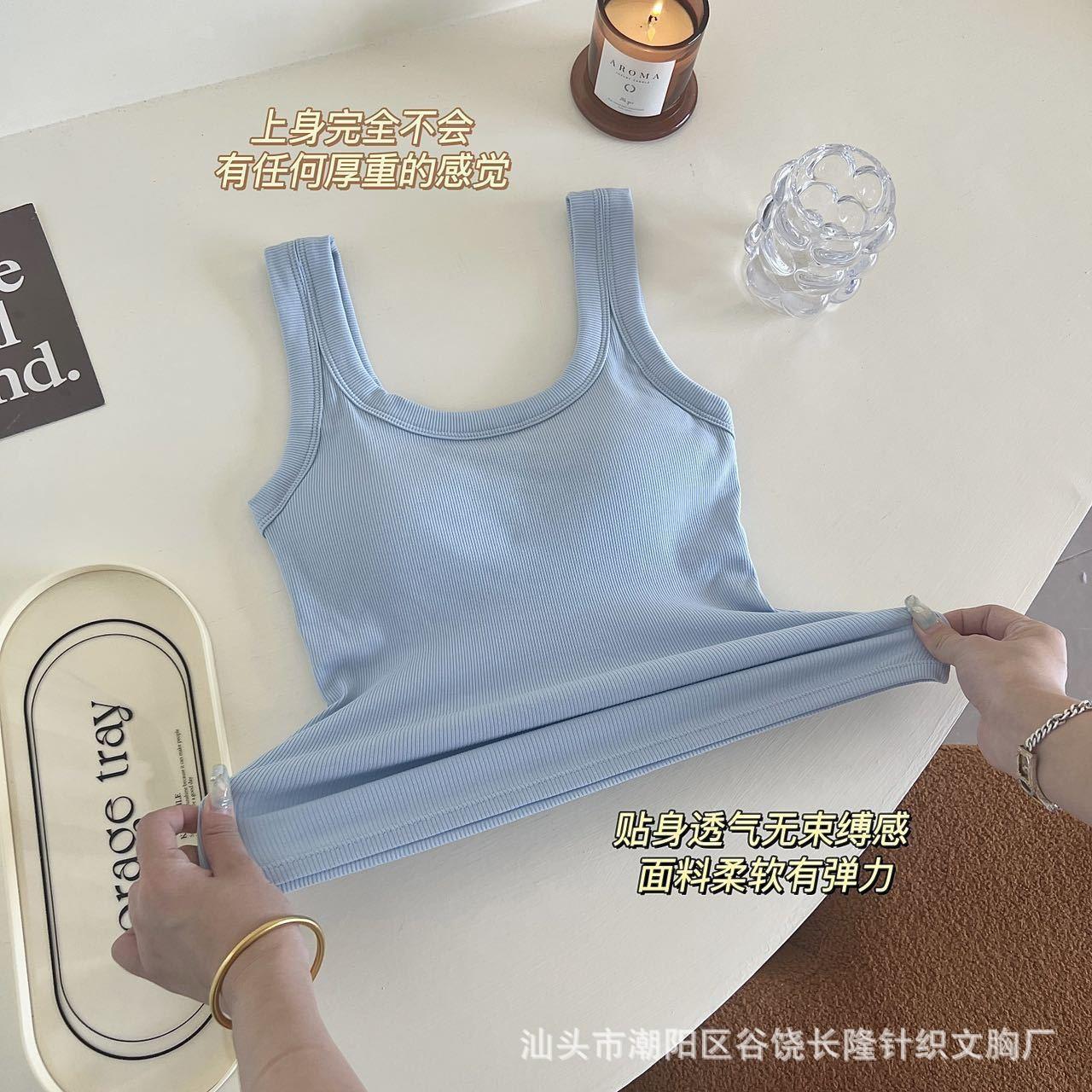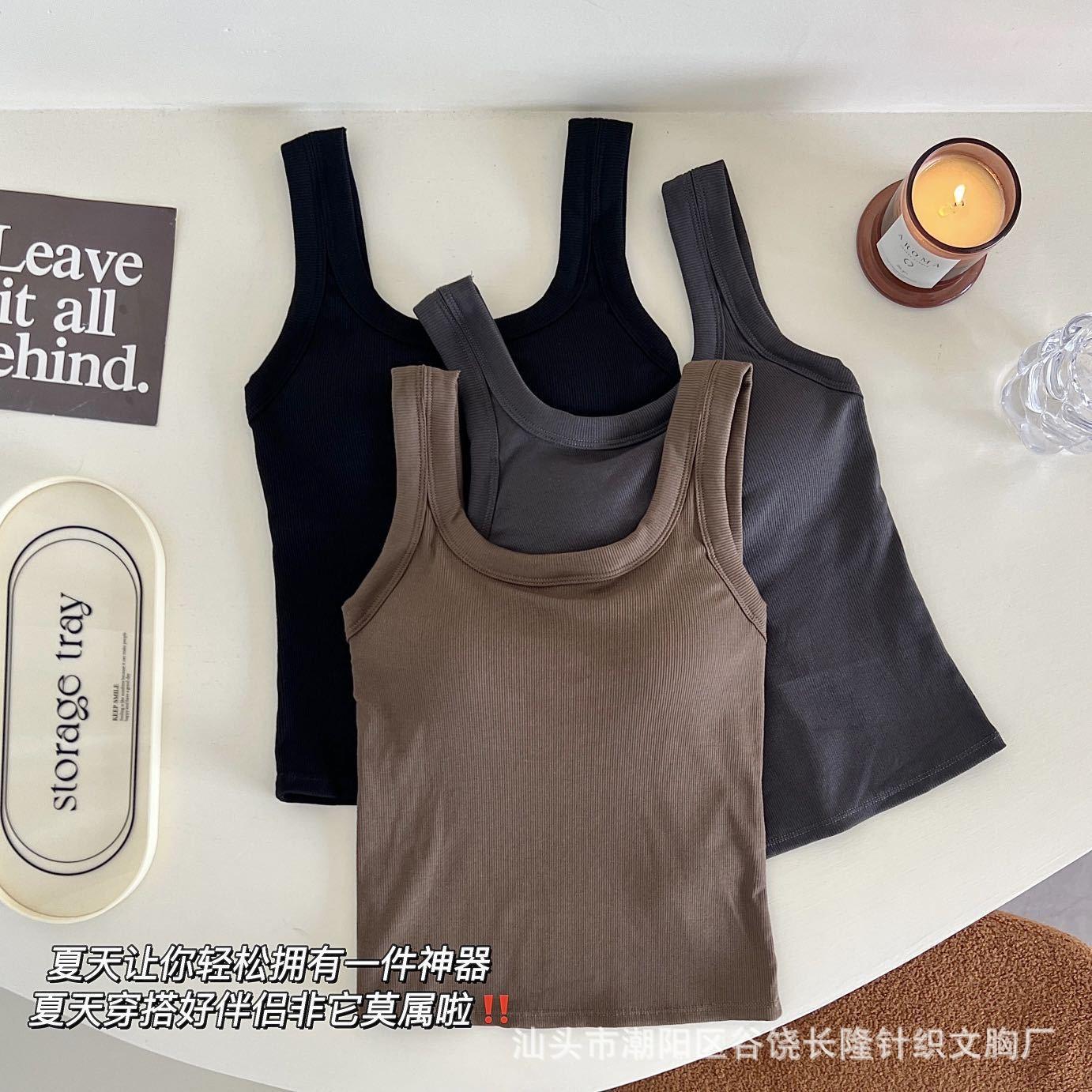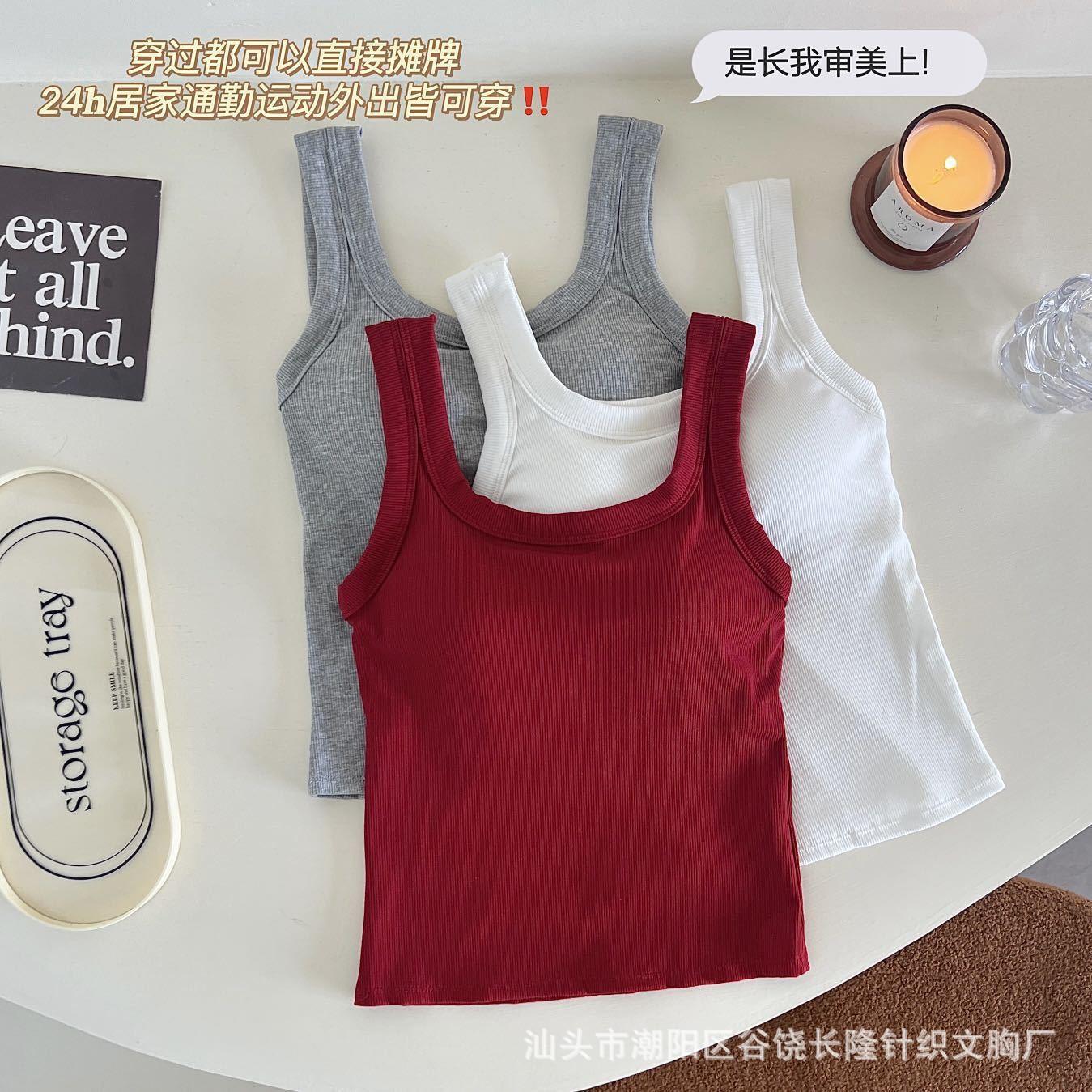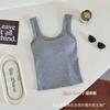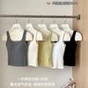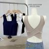 Camisola de algodón puro de otoño con cuello cuadrado, espalda descubierta, hombros anchos, copa fija, corte entallado, prenda exterior combinable, top de tubo