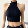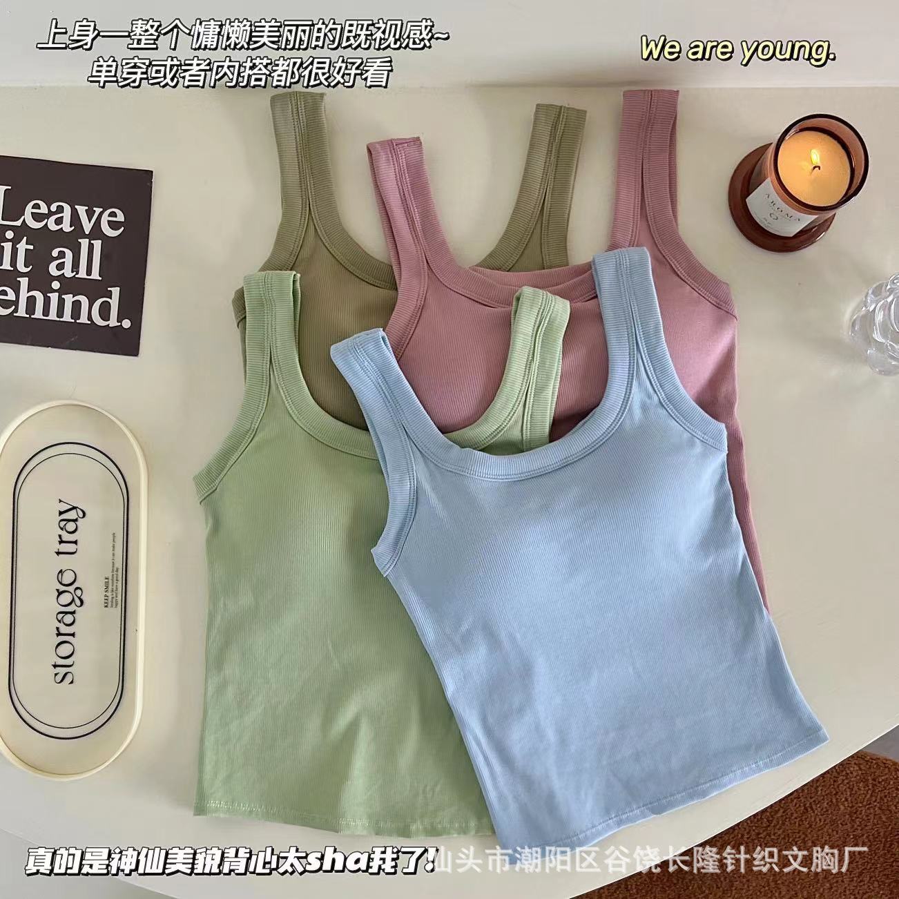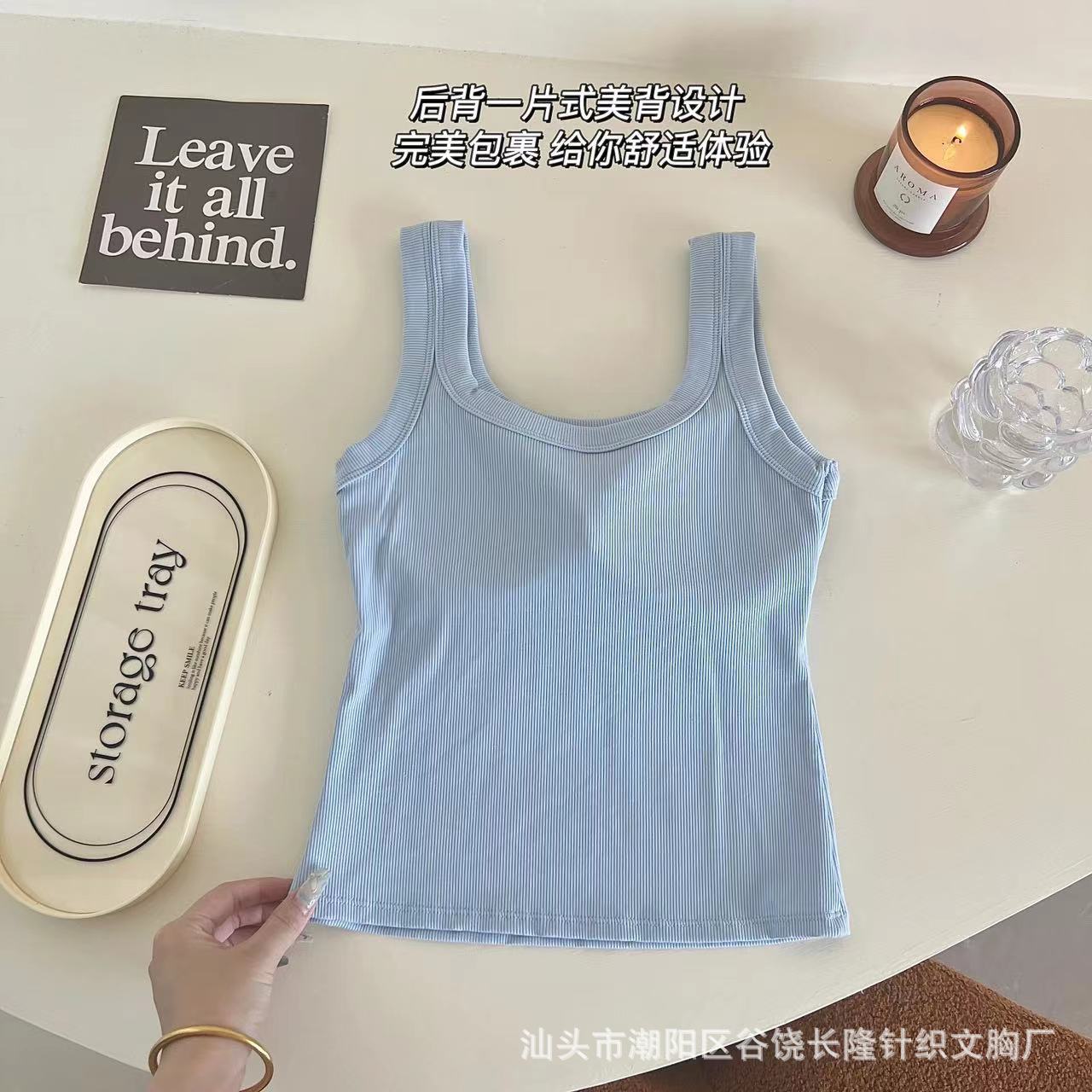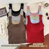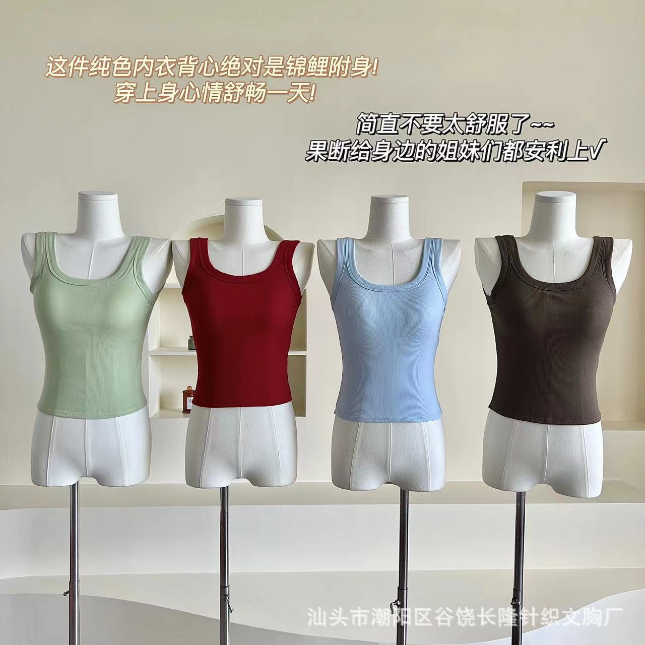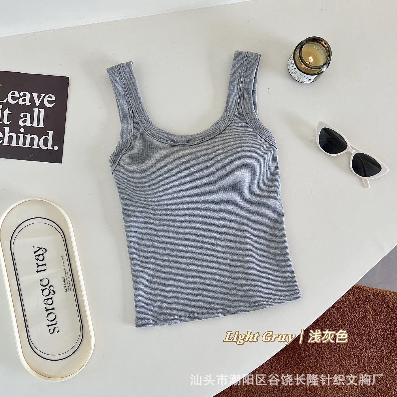 Camisola de algodón puro de otoño con cuello cuadrado, espalda descubierta, hombros anchos, copa fija, corte entallado, prenda exterior combinable, top de tubo