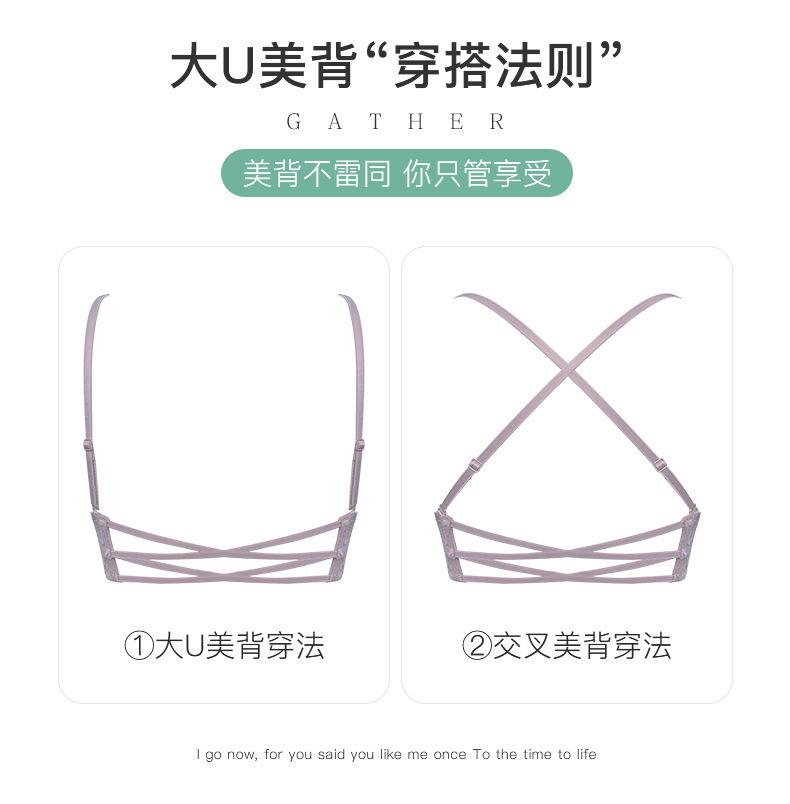 Sujetador invisible estilo francés fino en forma de U grande sin espalda con hermosa espalda cruzada con hebilla delantera, ropa interior con pecho grande y pequeño.