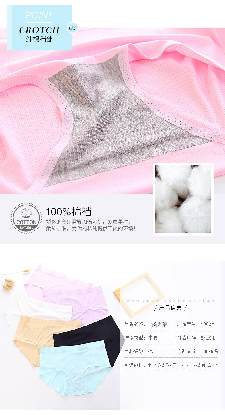 Ropa interior de verano para mujer, de seda helada, de cintura media, de algodón fino, con entrepierna, talla grande, sexy, sin marcas, para niña