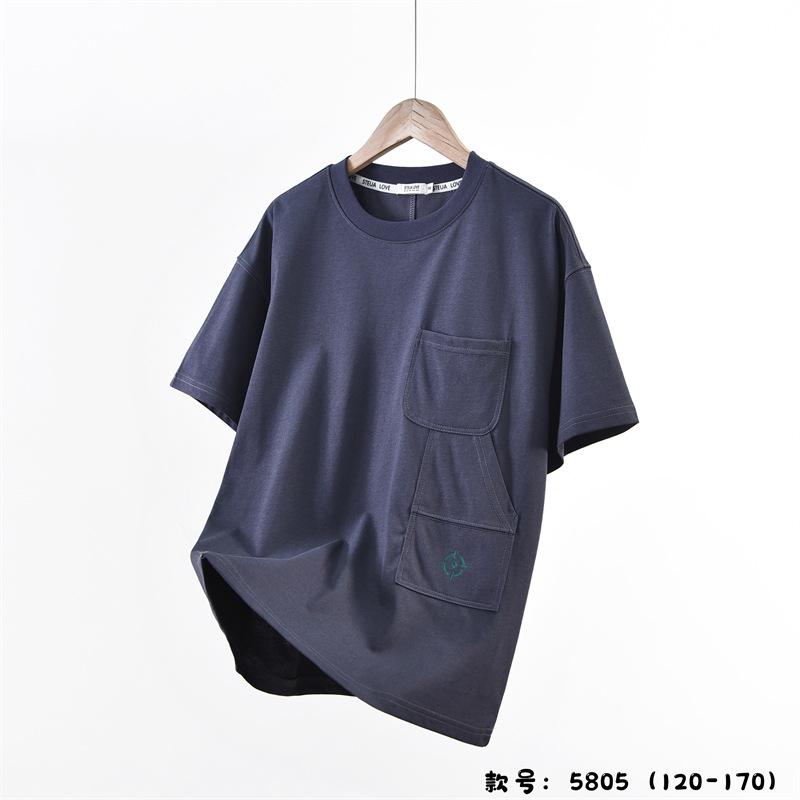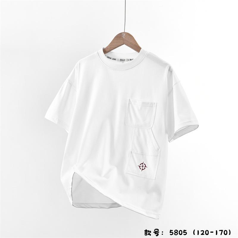 Camisa infantil de diseño original y moderno con bolsillo grande para niños y niñas, manga larga, cuello redondo, verano 2024