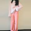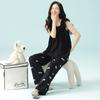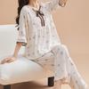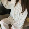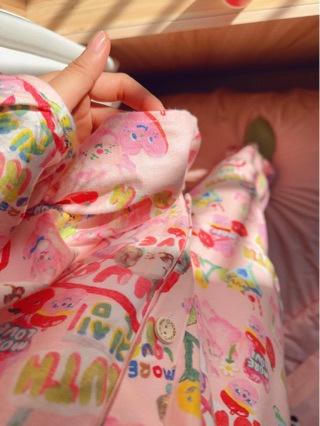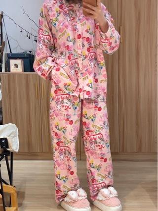 Pijama de algodón cepillado de oso melocotón, cuello redondo holgado, traje para estar en casa