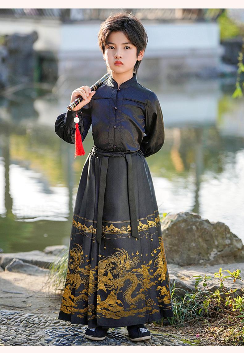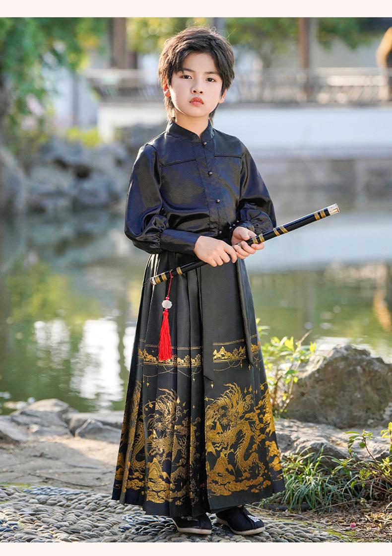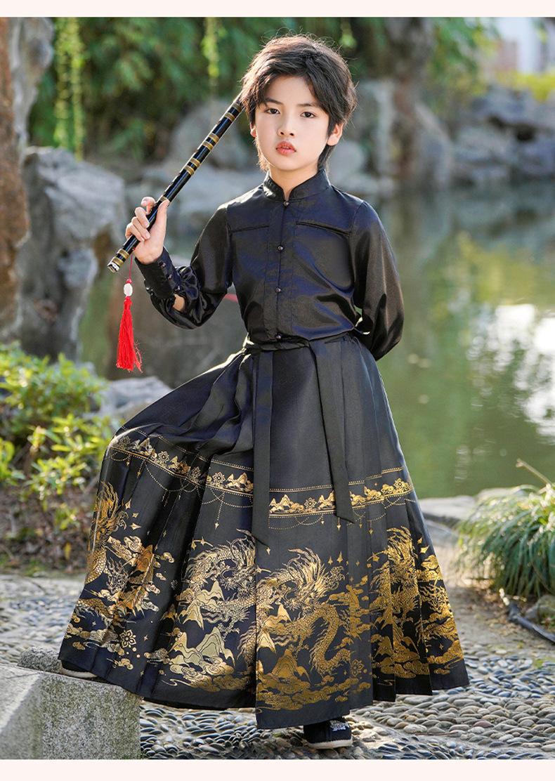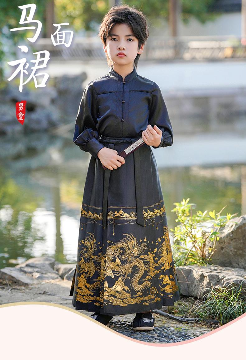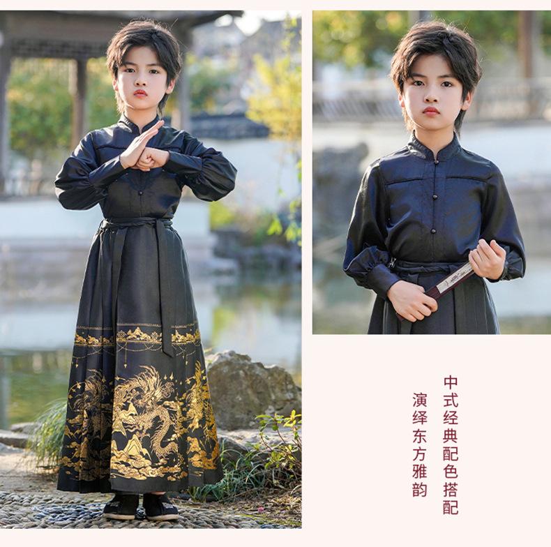 Ropa para niños 2025 Nuevo estilo chino Traje Tang para niños Ajustado Primavera y verano Dinastía Ming Dinastía Han Largo medio Traje de falda Cara de caballo para niños