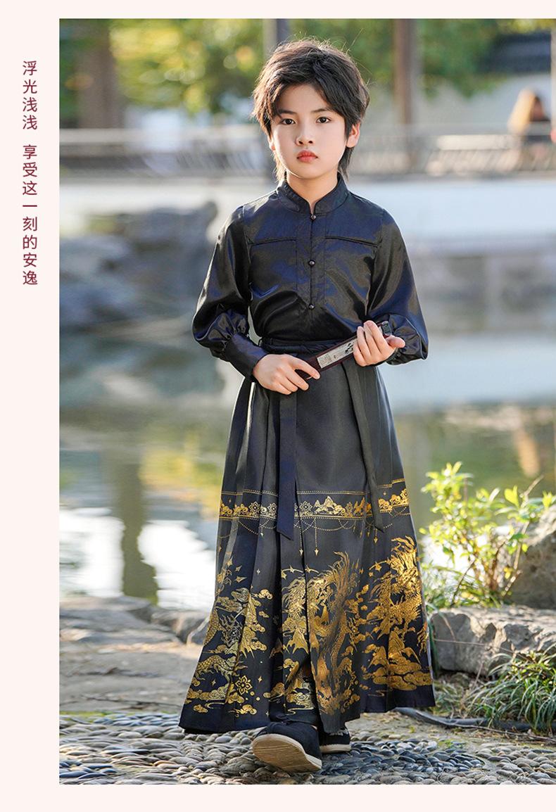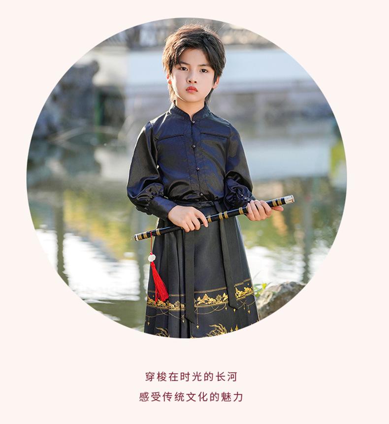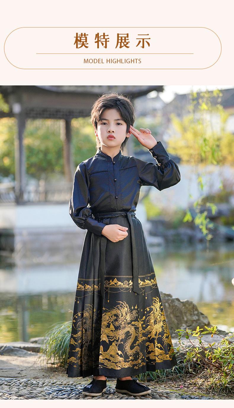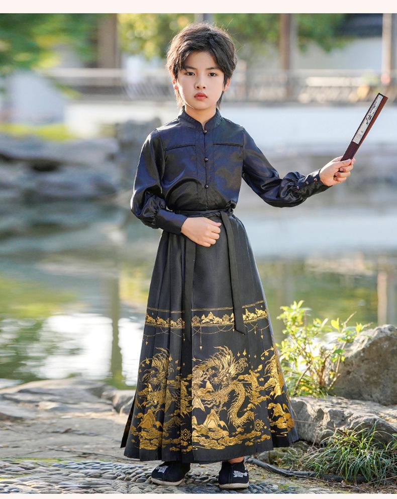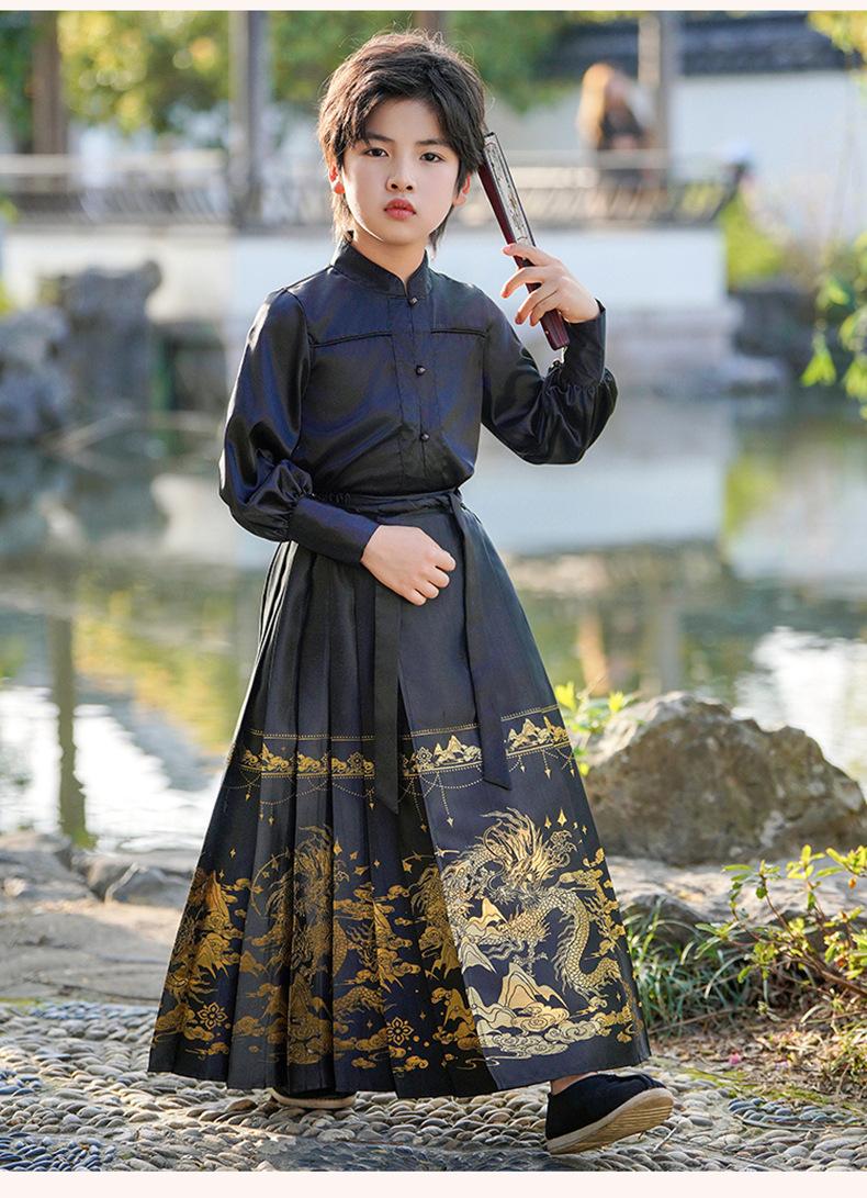 Ropa para niños 2025 Nuevo estilo chino Traje Tang para niños Ajustado Primavera y verano Dinastía Ming Dinastía Han Largo medio Traje de falda Cara de caballo para niños