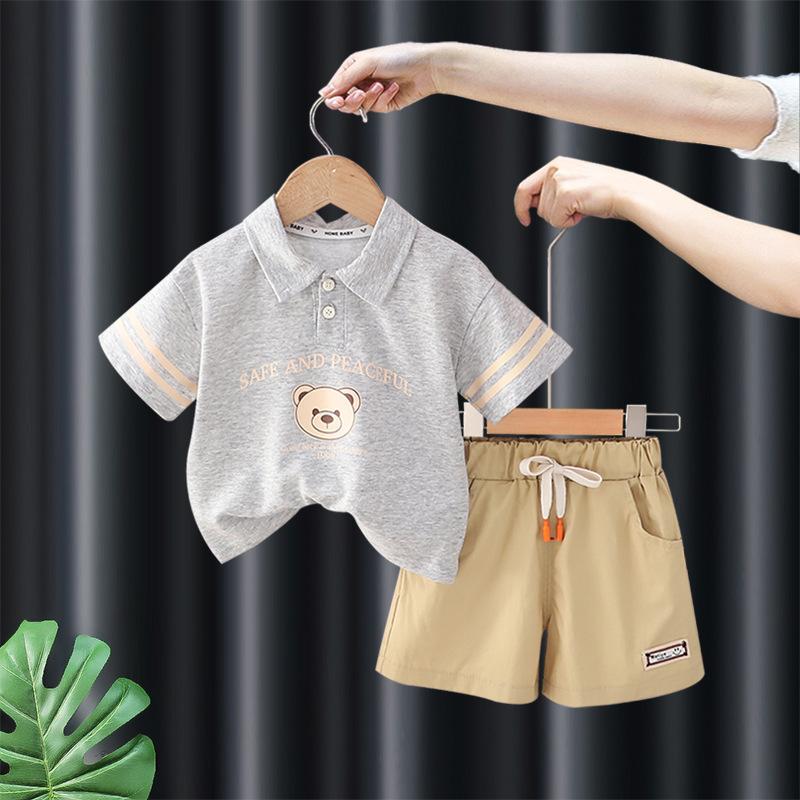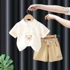 Traje casual para niños Cuello polo patrón de oso traje para bebé varón chaqueta + pantalón dos piezas ropa de moda para niños