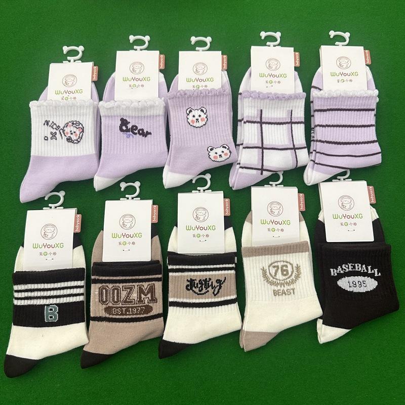 Calcetines elásticos de tubo medio con dibujos animados de otoño e invierno para niños, calcetines universales de primavera y otoño para niños y niñas, calcetines de algodón para estudiantes