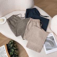 Pantalones de Lino Puro a Rayas Nuevos de Primavera y Verano 2025 para Mujer, Sueltos, Rectos, Artísticos, de Pierna Ancha, para Casa, Casual, Pijama
