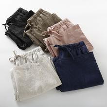 2025 nuevos pantalones rectos de algodón y lino primavera y verano delgados cintura elástica holgados pantalones de mujer pijamas para el hogar pantalones casuales