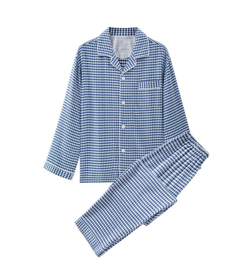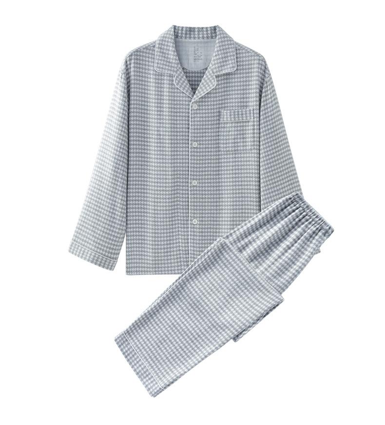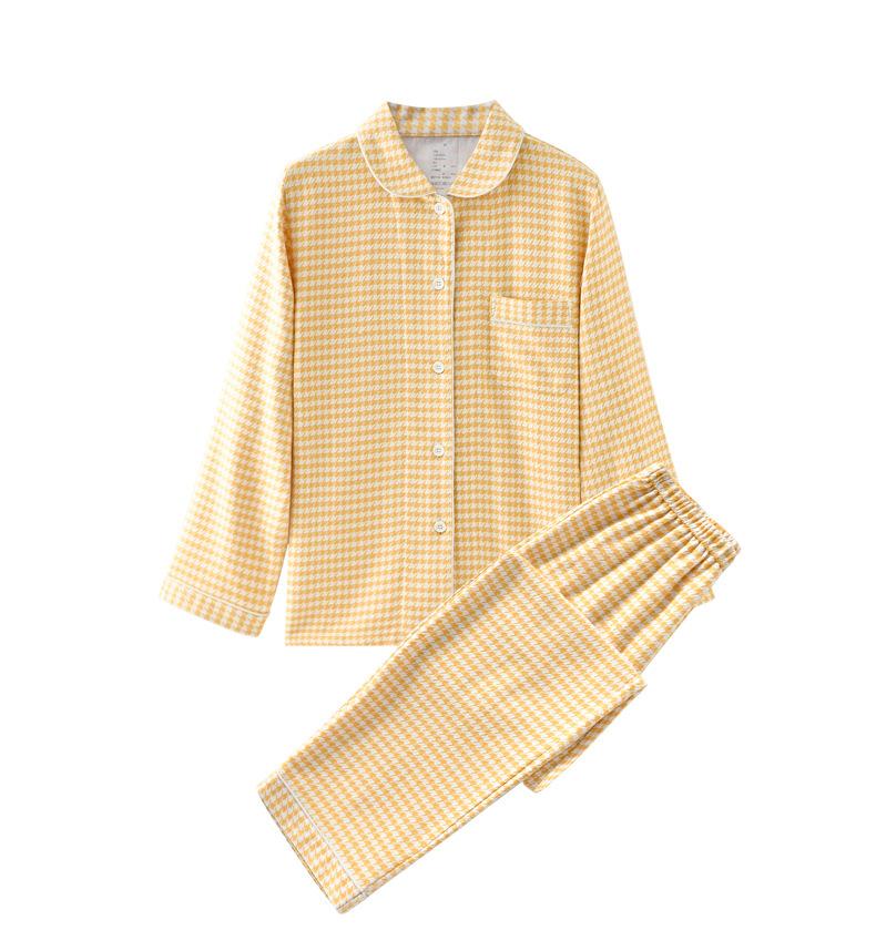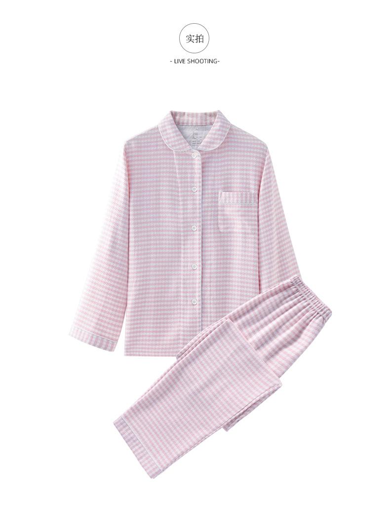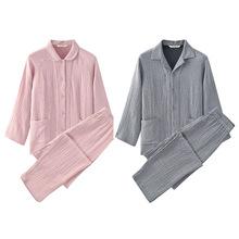 2025 nuevo otoño e invierno color sólido grueso pijama mujer punto simple gasa de cuatro capas hombres y mujeres pareja conjunto ropa para el hogar