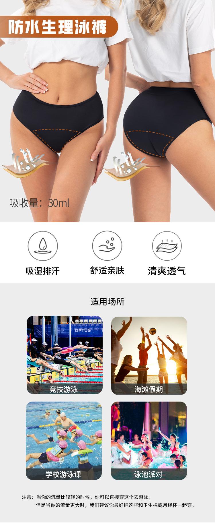 Traje de Baño de Costura Transfronteriza, Ropa Interior Menstrual, Calzones Menstruales Anchos de Tres Capas a Prueba de Fugas sin Toalla Sanitaria, Pantalones Menstruales para Nadar