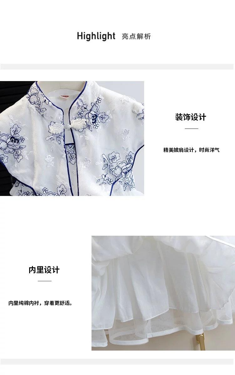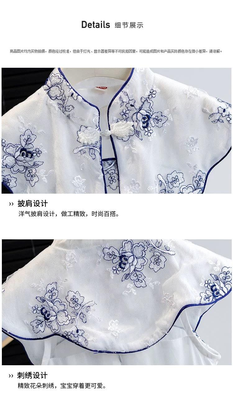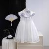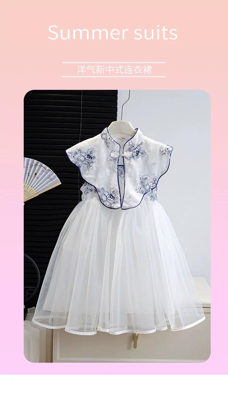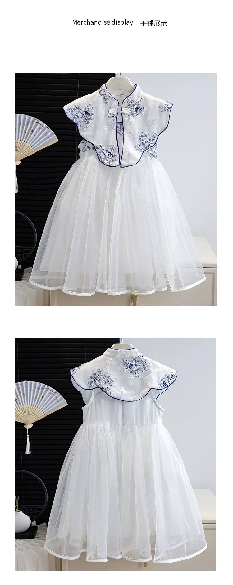 Vestido Cheongsam Mejorado de Estilo Chino Nuevo para Niña Verano Vestido Blanco Vestido Vespa con Hebilla Retro de Estilo Chino para Bebé