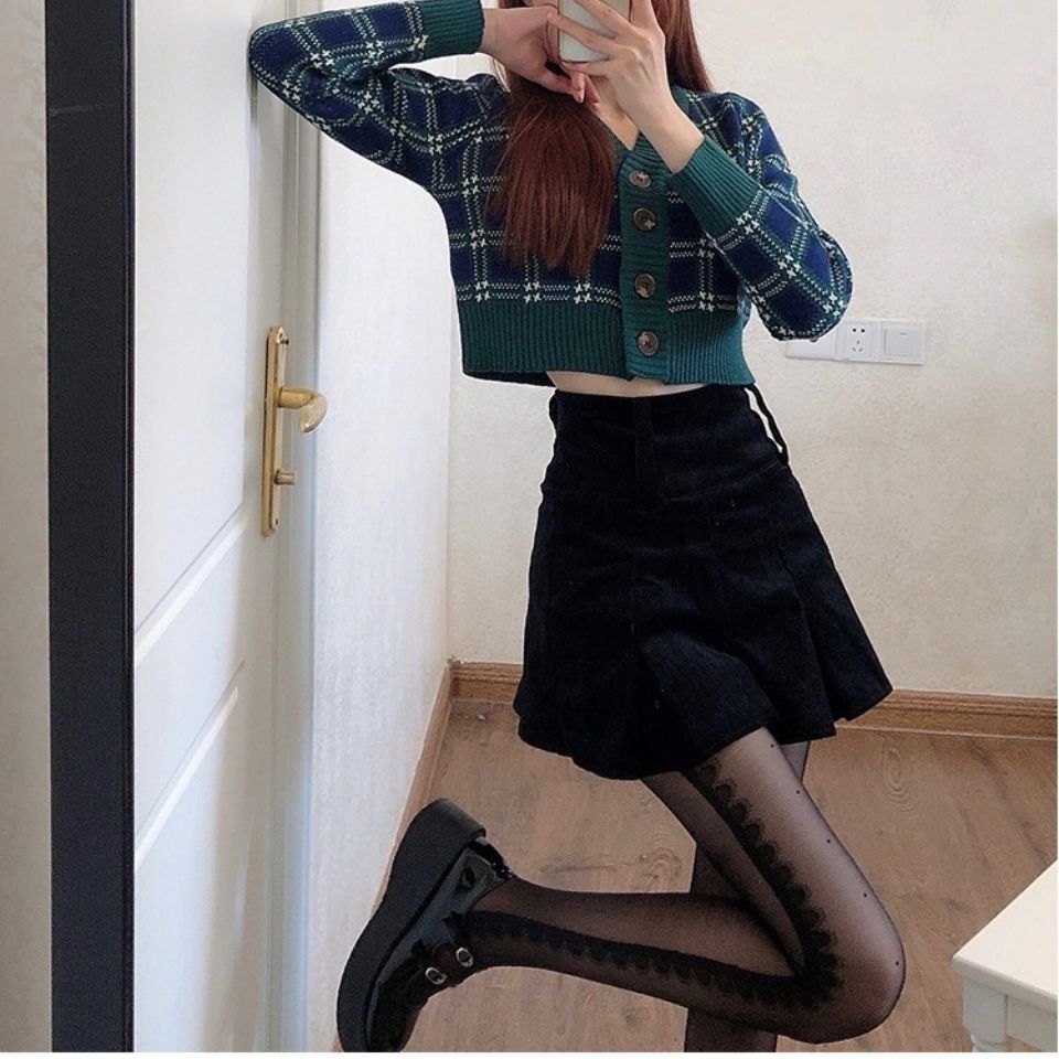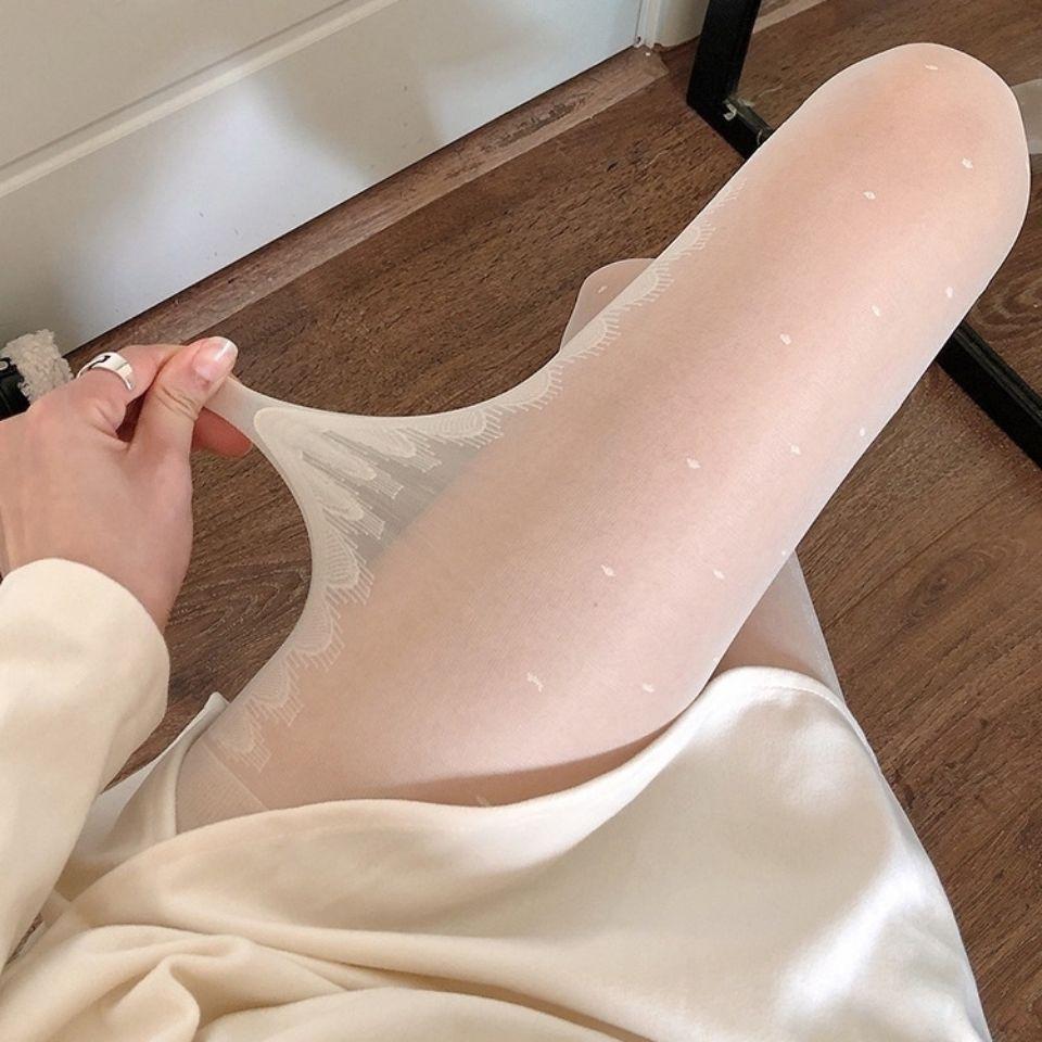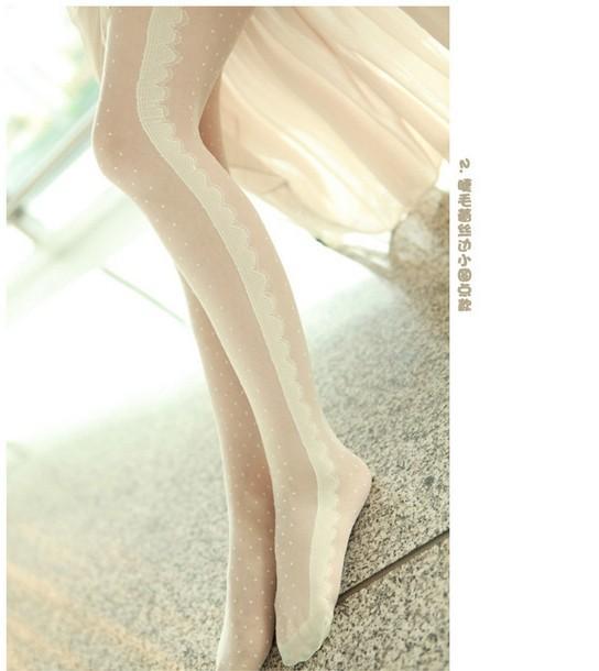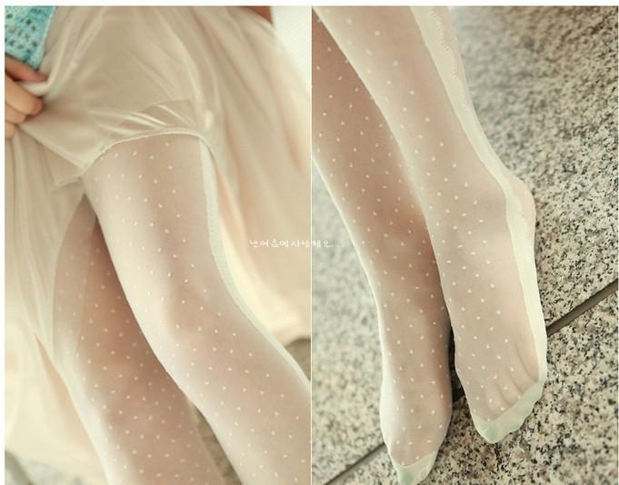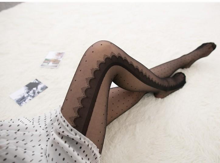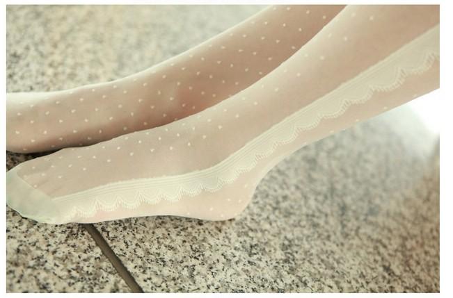 Medias finas de seda negra con encaje lateral de estilo japonés para primavera y verano, pantimedias de lunares blancos para mujer, calcetines con base de jacquard.