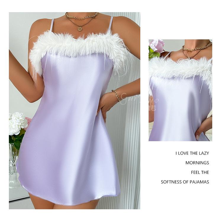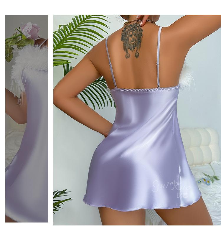 Pijamas cómodos de la marca Guiruo, con costuras de color liso y plumas, para mujer, ropa de casa, traje de comercio exterior F4453