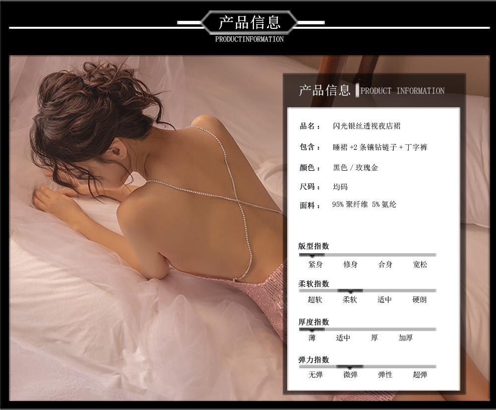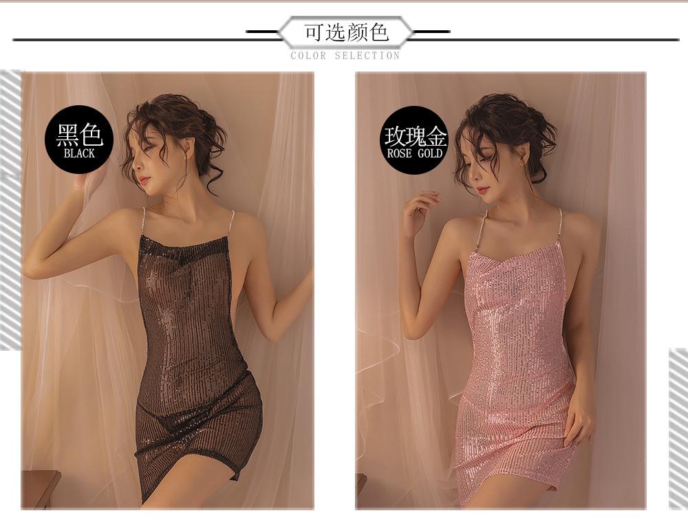 Ropa interior sexy de noche dorada, cuentas brillantes, vestido ajustado a la cadera, tentación de cuello, corte bajo, cadena cruzada, sin espalda