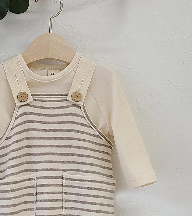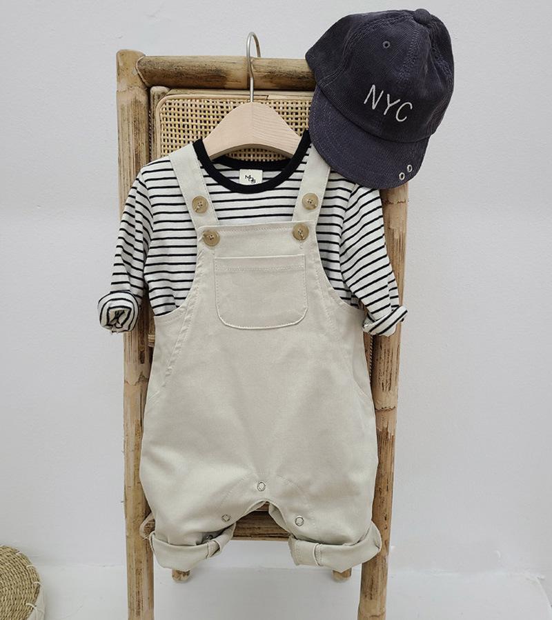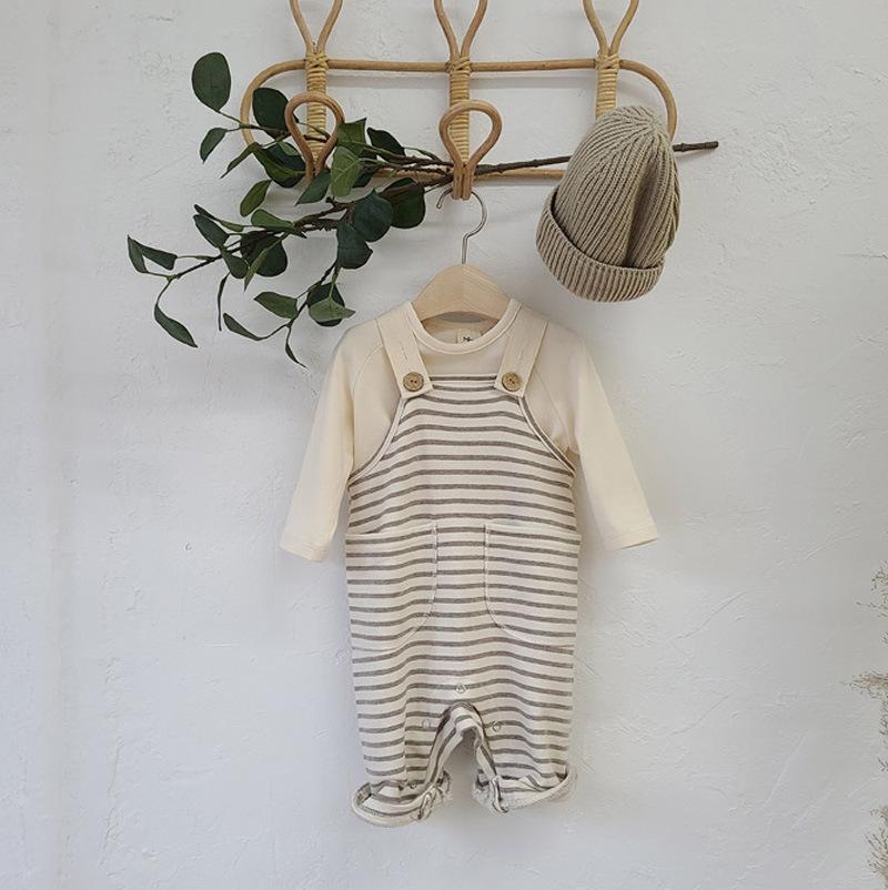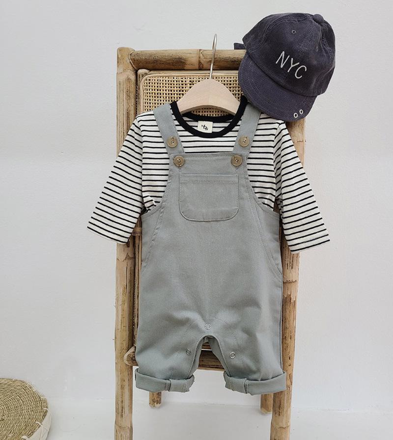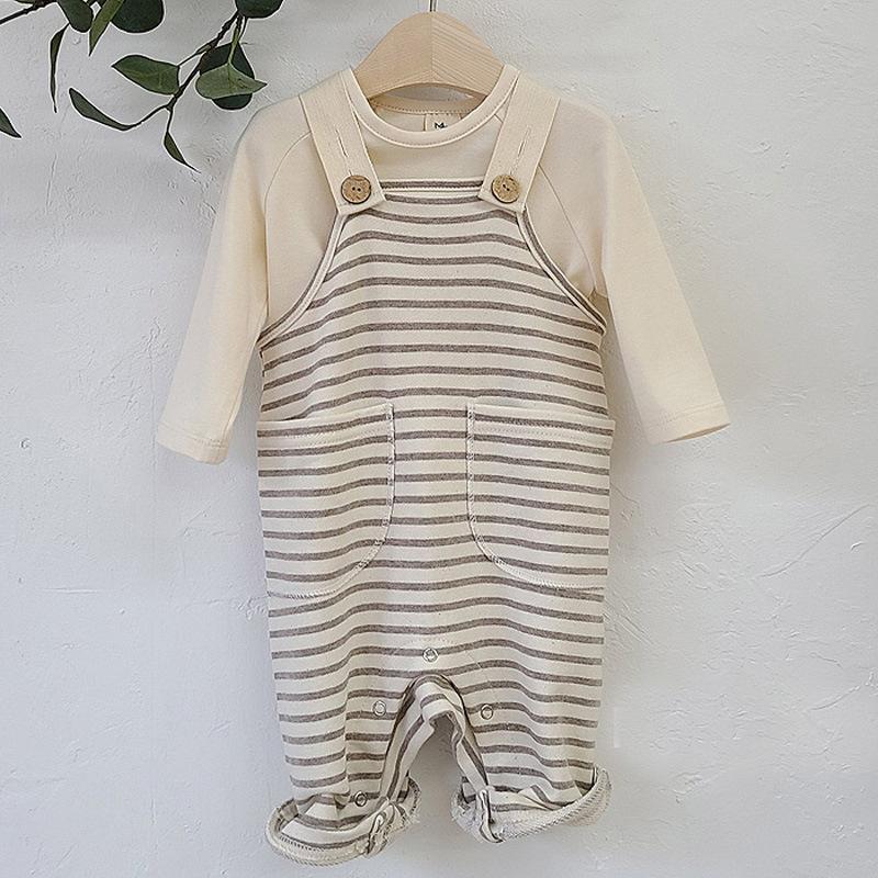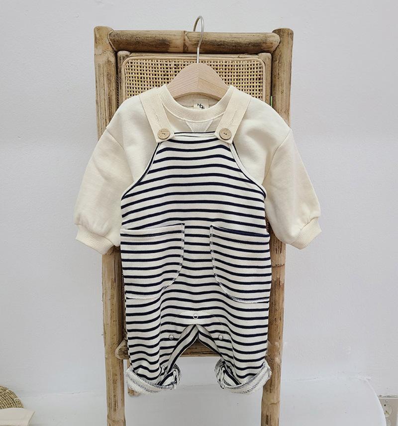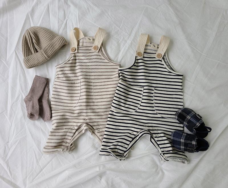 Mono informal de rayas de estilo coreano para bebé, con tirantes abiertos, para niños y niñas, primavera y otoño