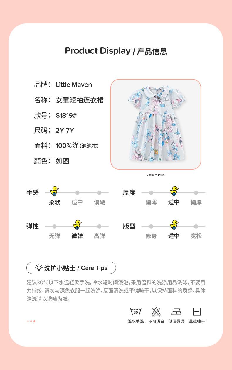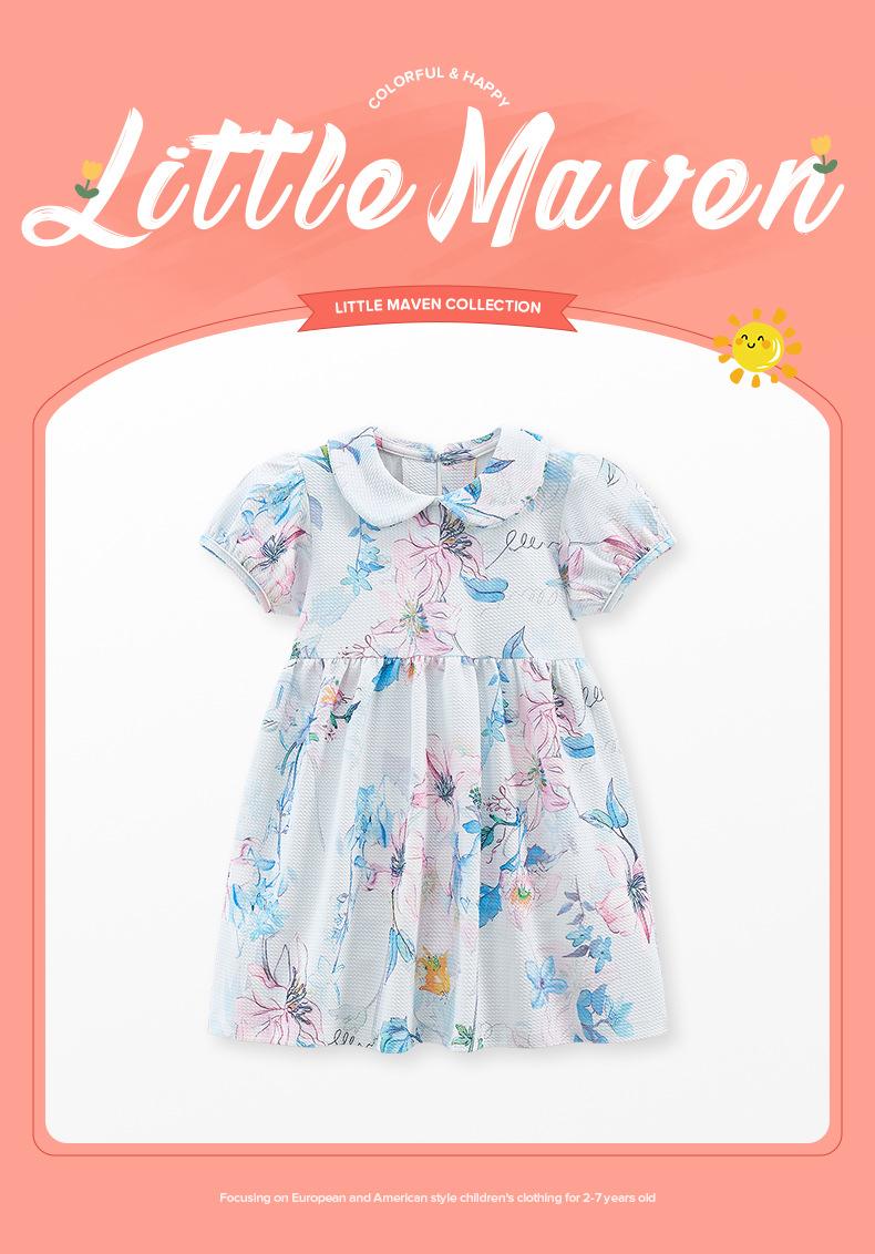 Little Maven Verano Nuevo Estilo Europeo y Americano Vestido de Princesa para Niños 2023 Algodón Puro Manga Corta Vestido de Niña