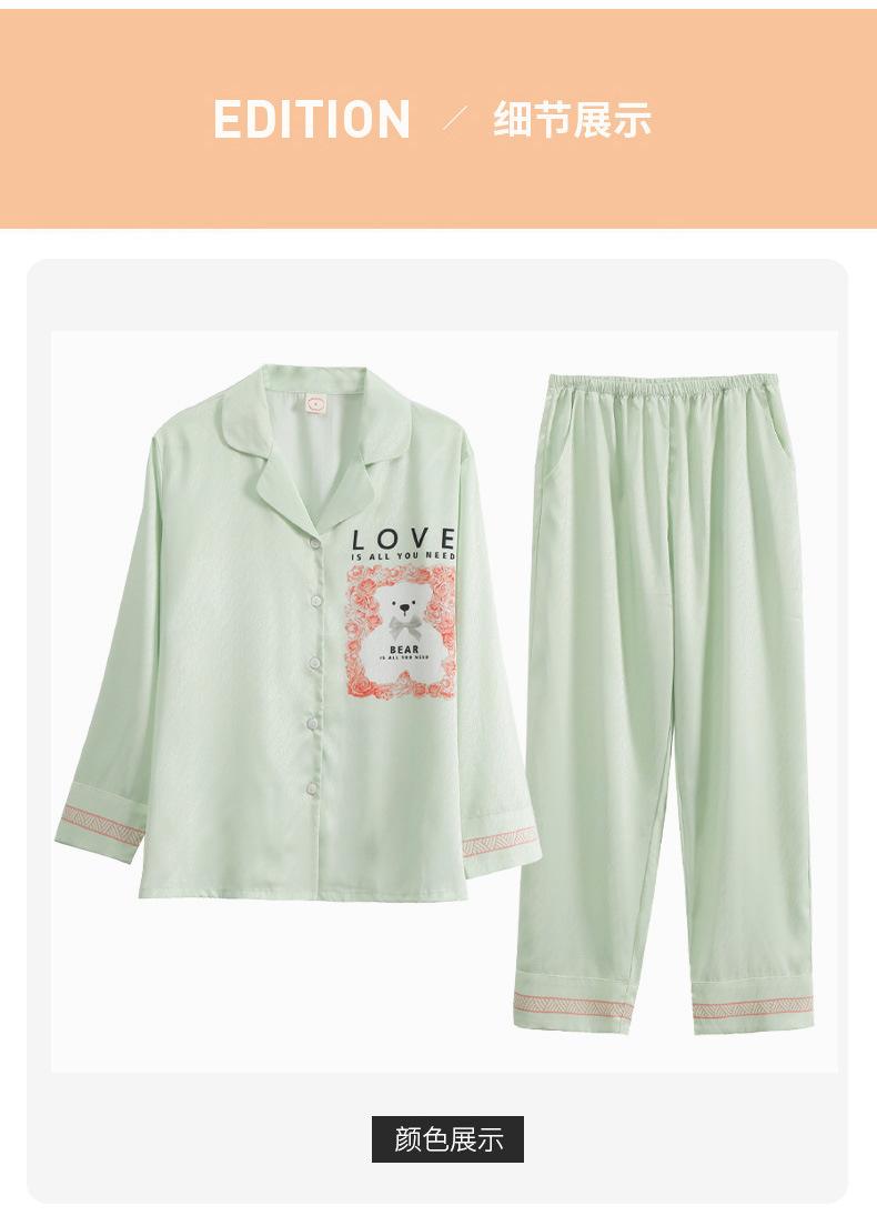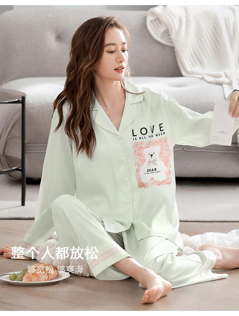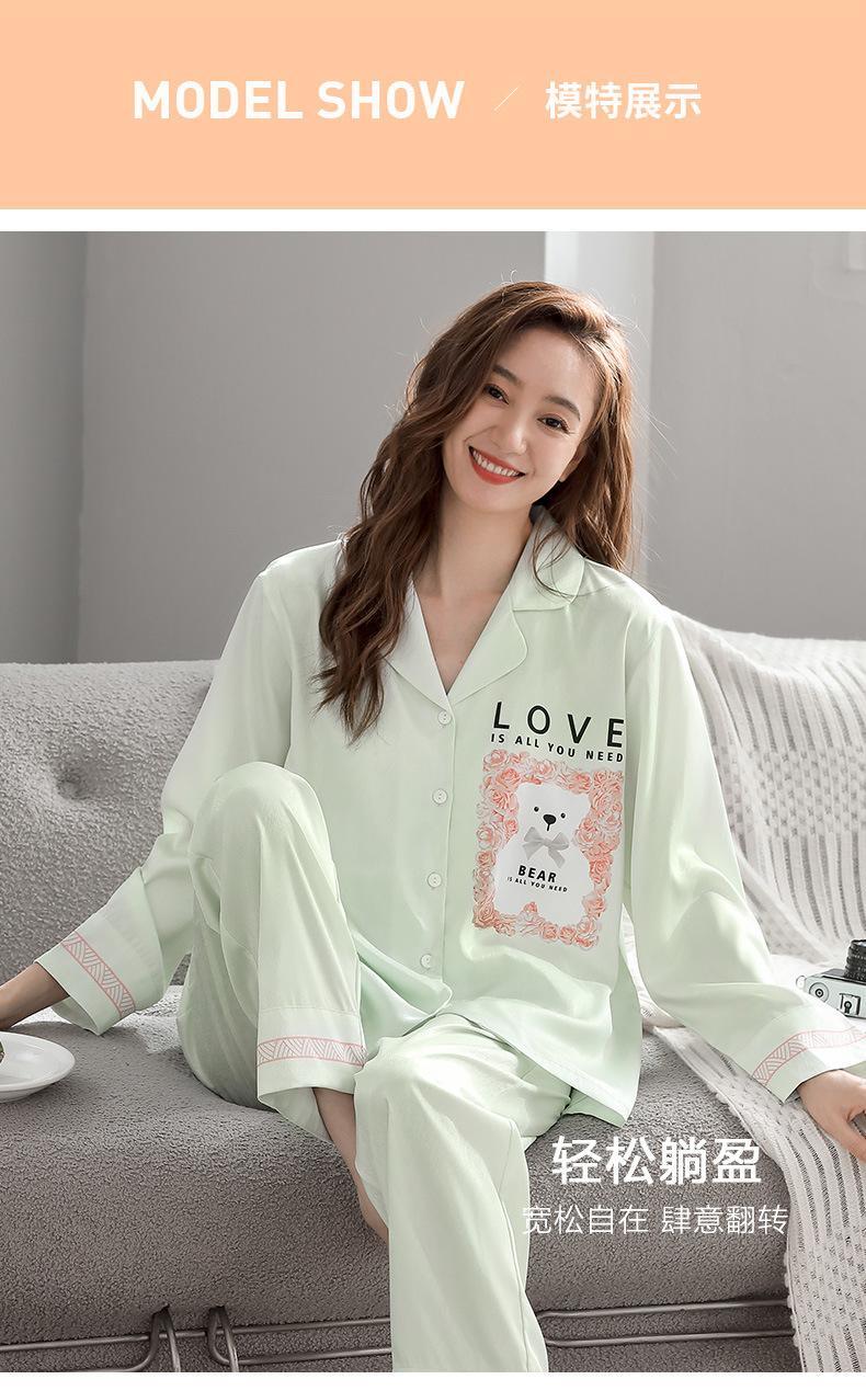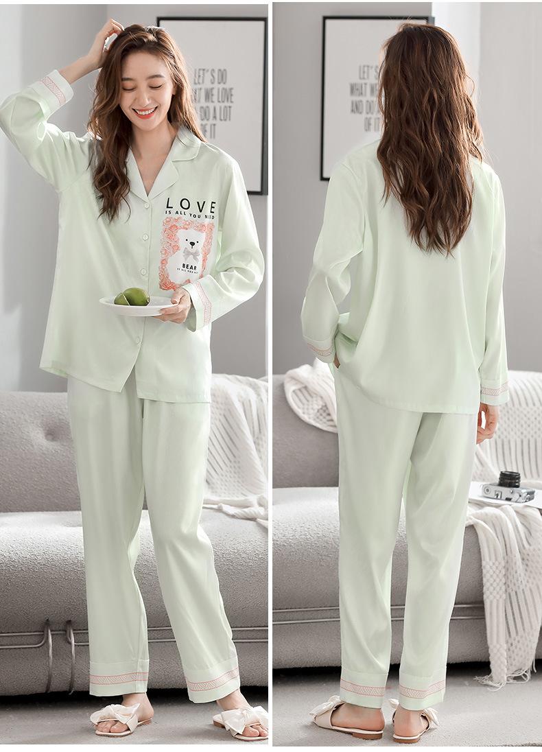 Pijama de Seda Imitación para Primavera y Otoño para Mujer Cárdigan de Manga Larga Lujo Accesible de Alta Gama Satén de Seda Hielo Amigable con la Piel Ropa de Casa para Mujer Estilo Relajado