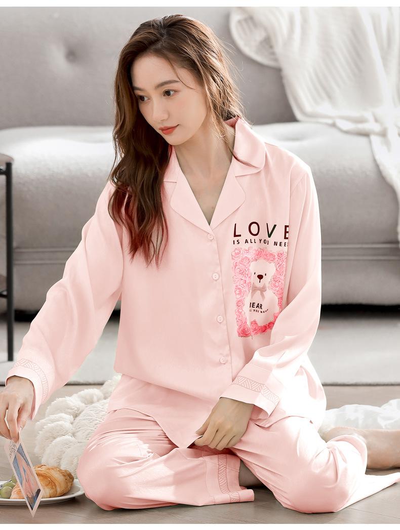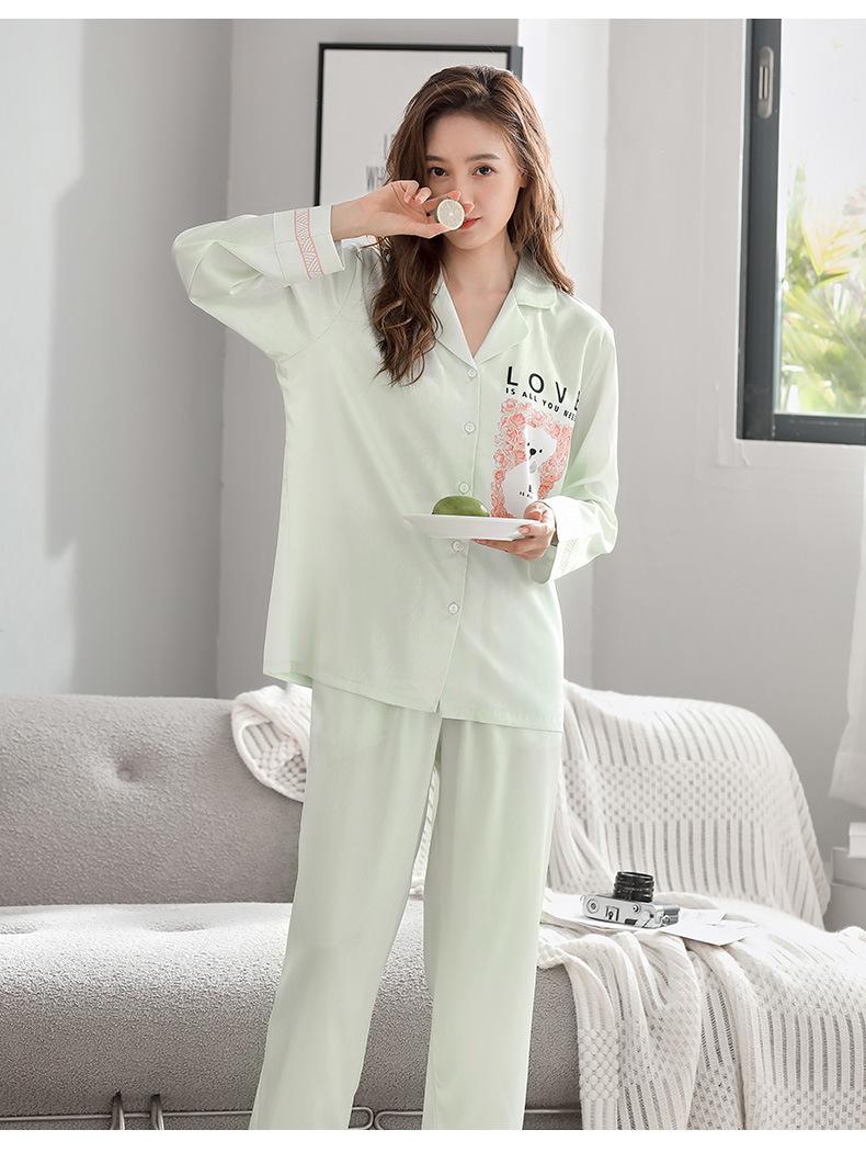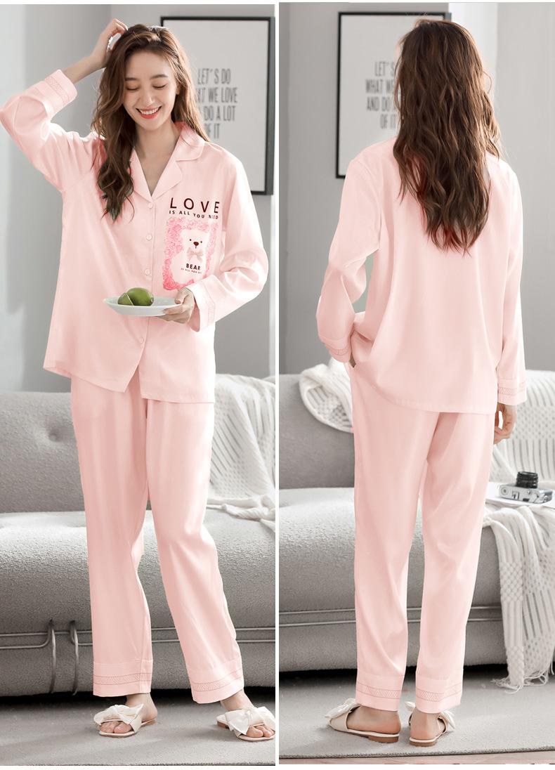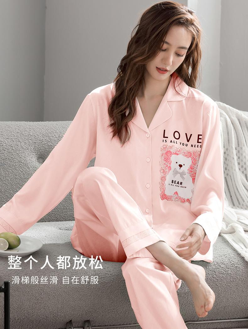Pijama de Seda Imitación para Primavera y Otoño para Mujer Cárdigan de Manga Larga Lujo Accesible de Alta Gama Satén de Seda Hielo Amigable con la Piel Ropa de Casa para Mujer Estilo Relajado