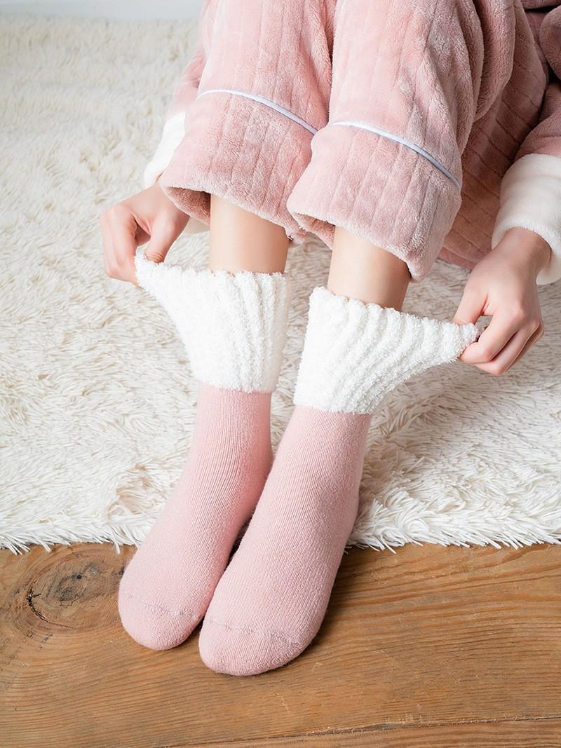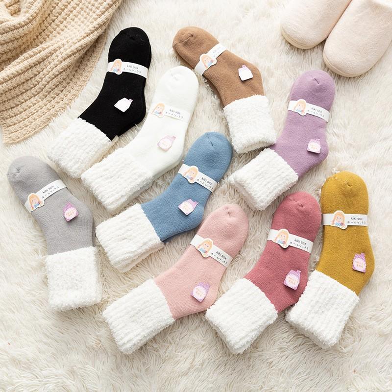Calcetines transpirables de otoño e invierno para mujer, calcetines de toalla gruesos y cálidos para jóvenes, calcetines cepillados, calcetines japoneses apilados, calcetines de algodón para mujer