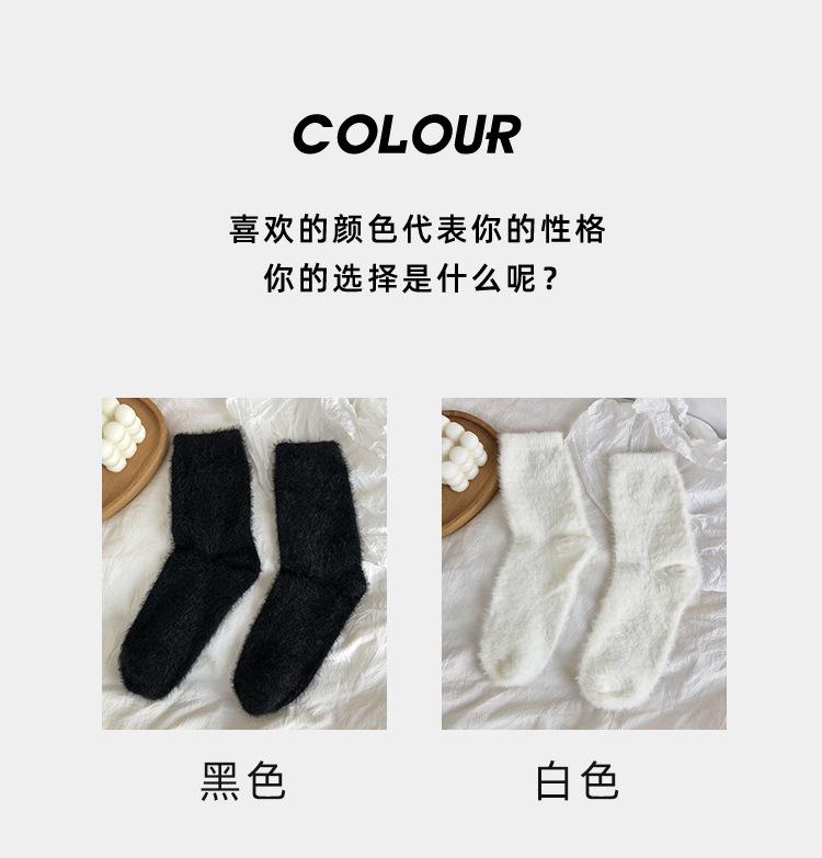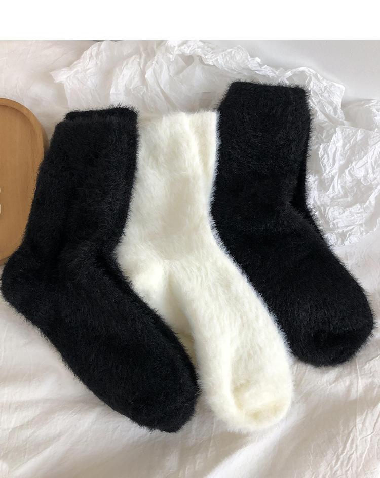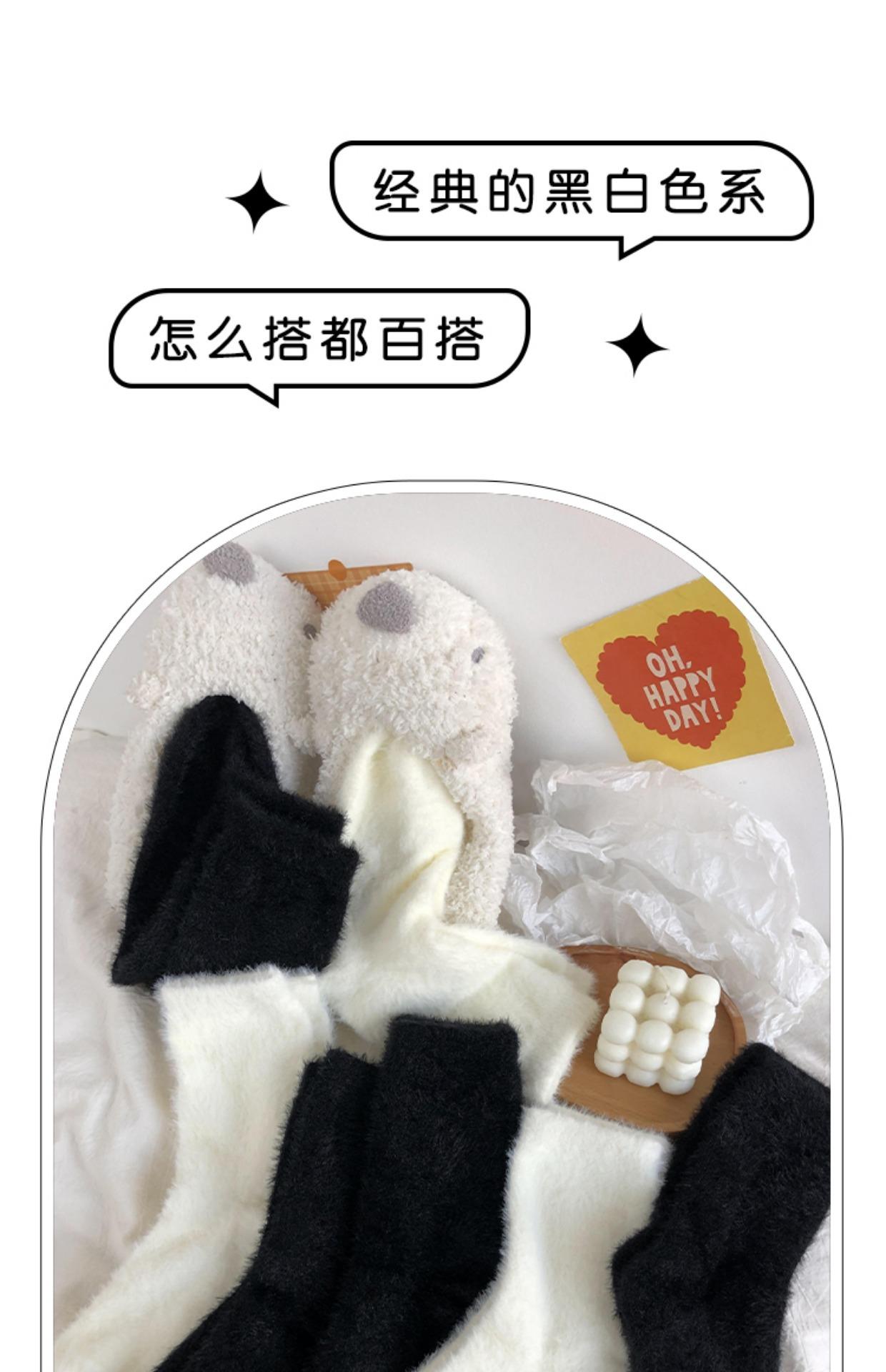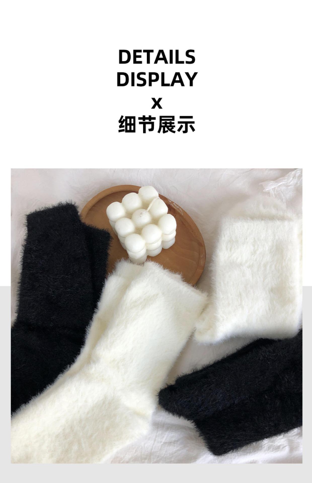 Calcetines de terciopelo visón para mujer para otoño e invierno, cálidos, de terciopelo acolchado, peludos, negros y blancos, de luna para dormir, calcetines peludos