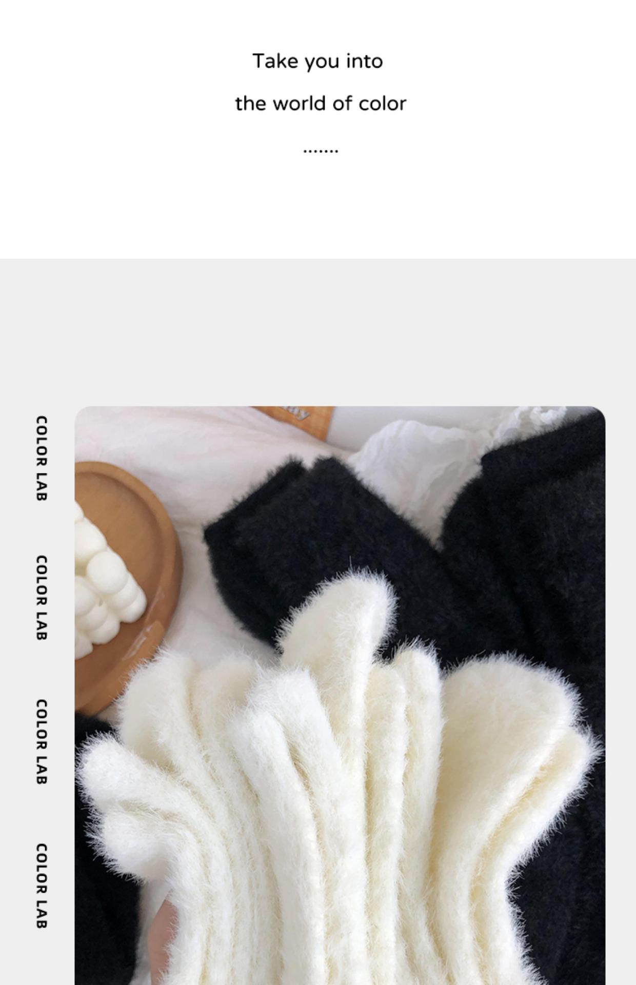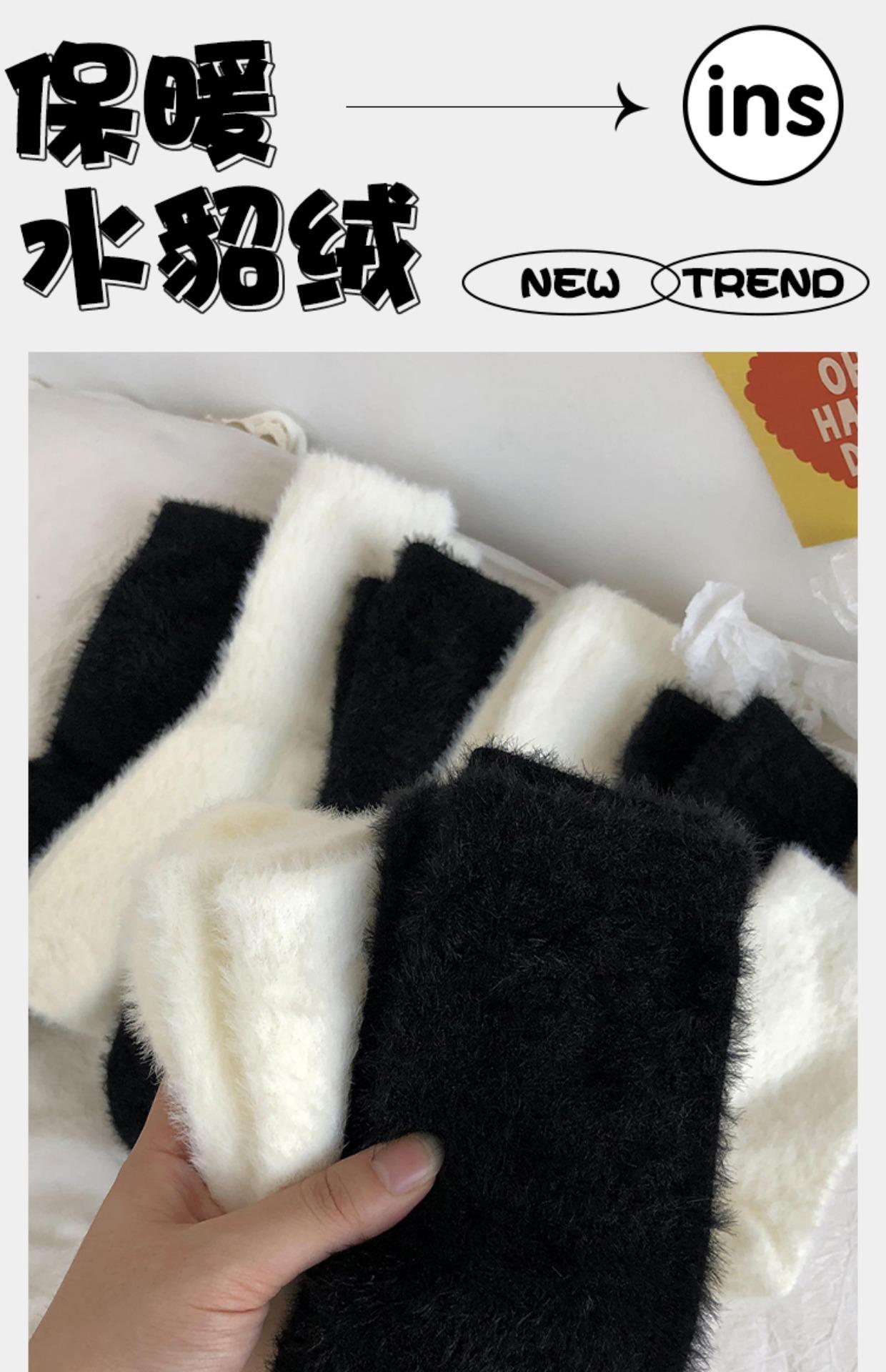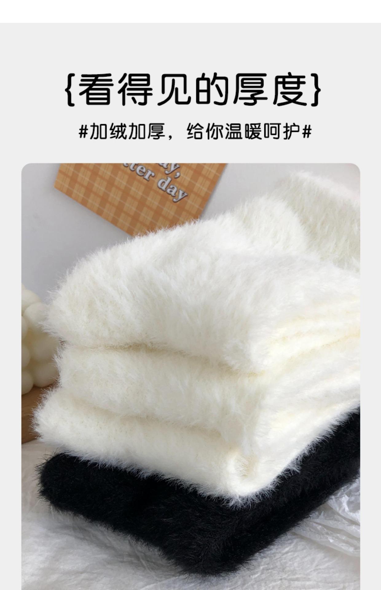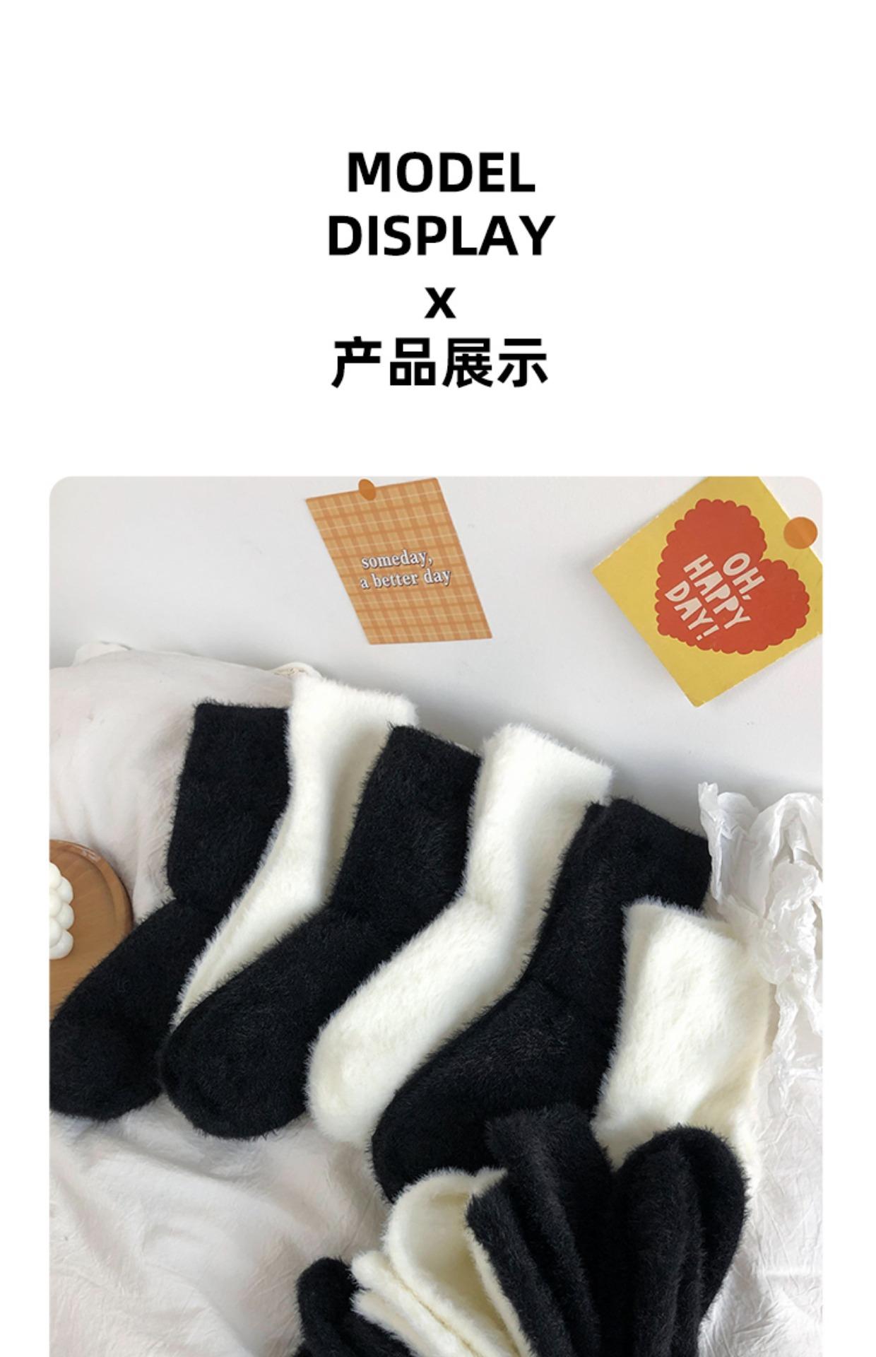 Calcetines de terciopelo visón para mujer para otoño e invierno, cálidos, de terciopelo acolchado, peludos, negros y blancos, de luna para dormir, calcetines peludos