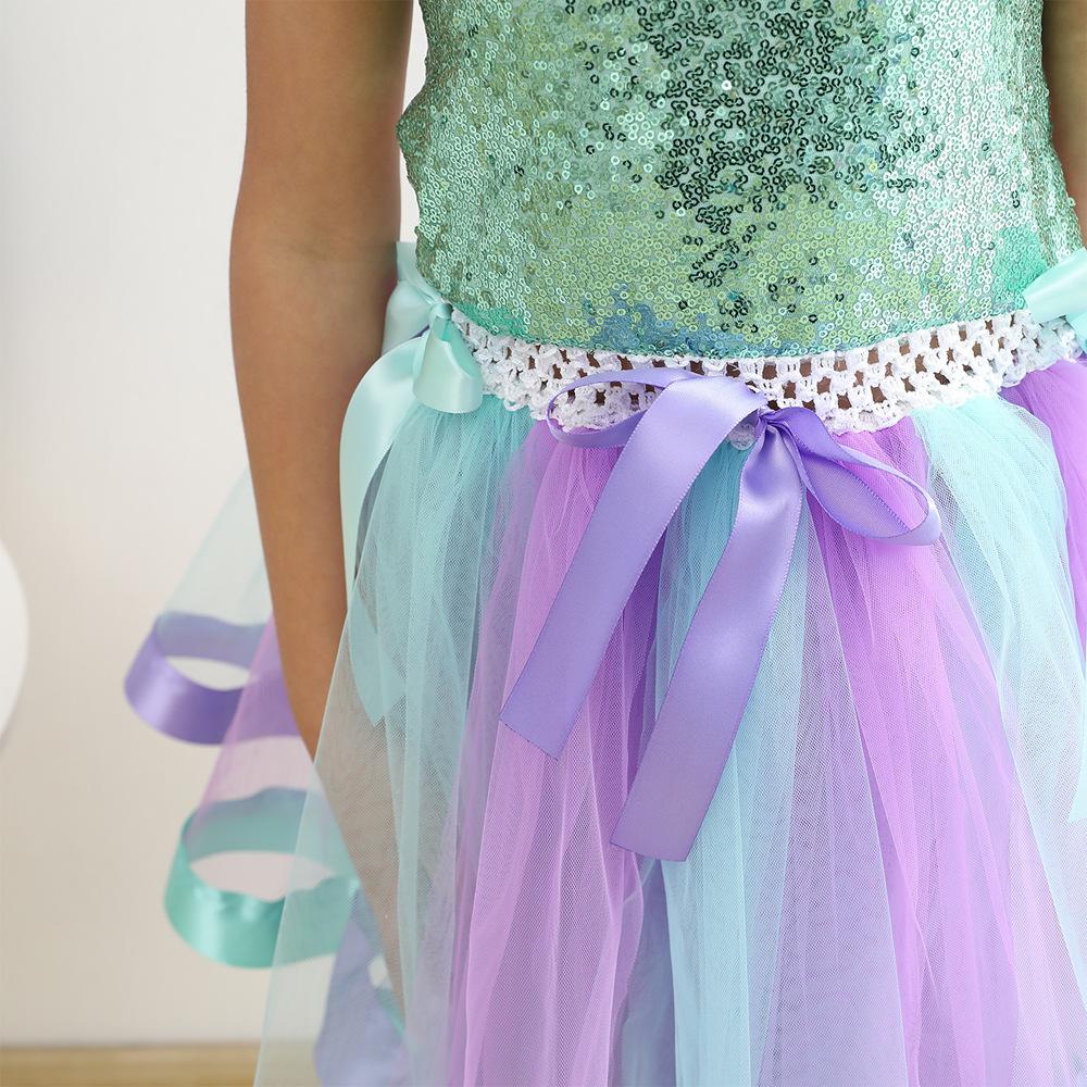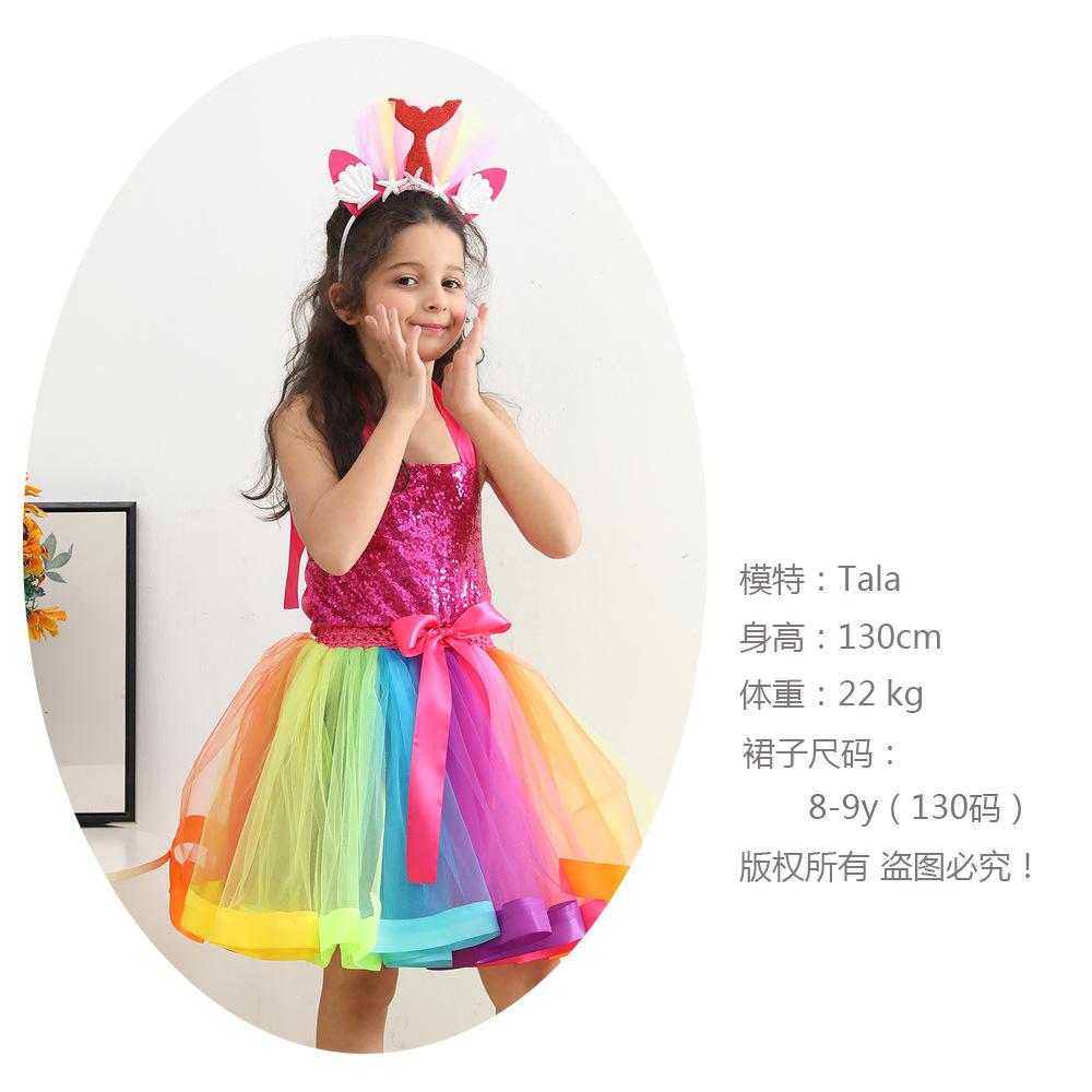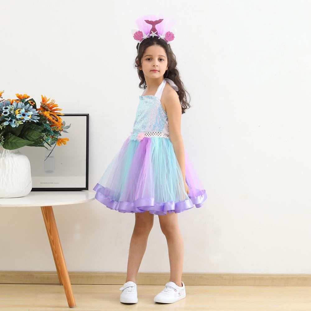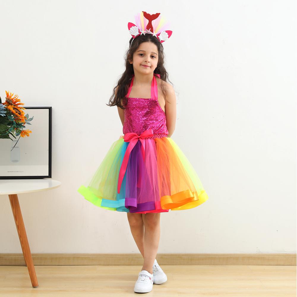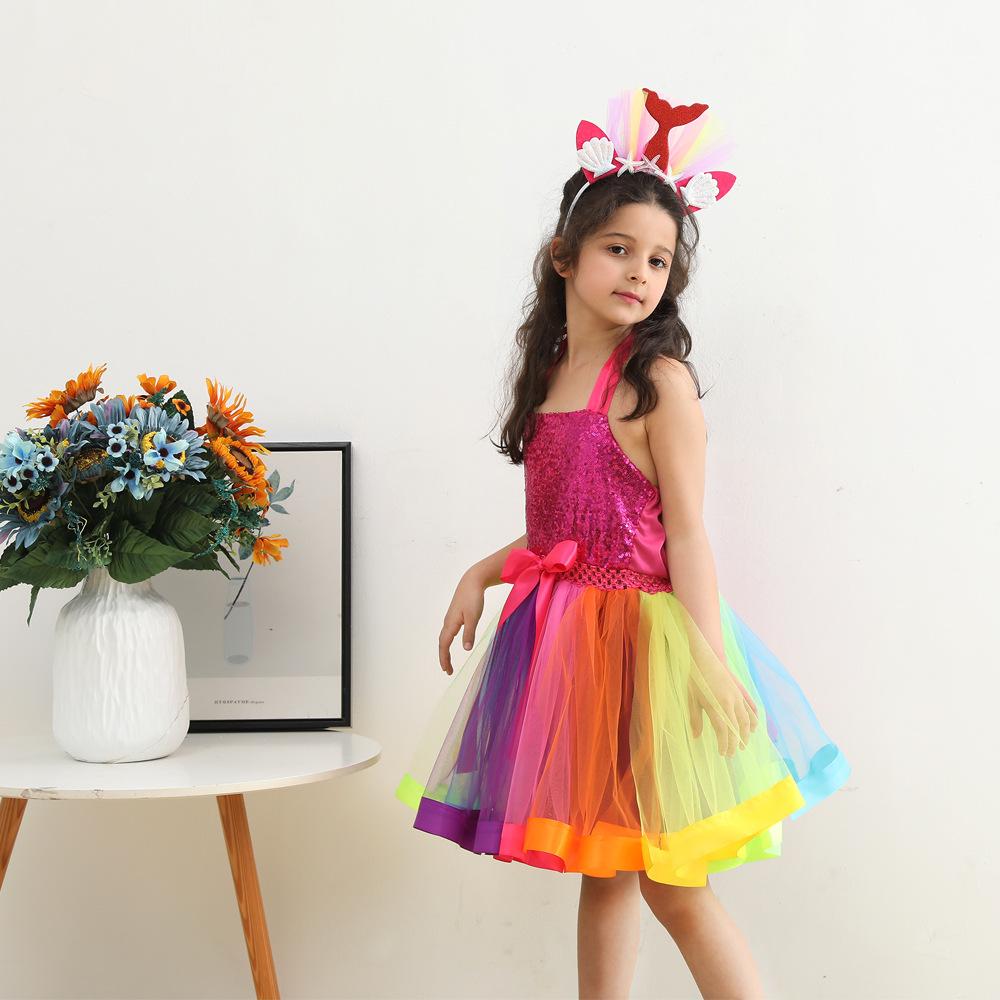 Vestido de niña arcoíris europeo y americano nuevo 2023, vestido de sirena con tocado de cola de pez, falda de tul con lazo