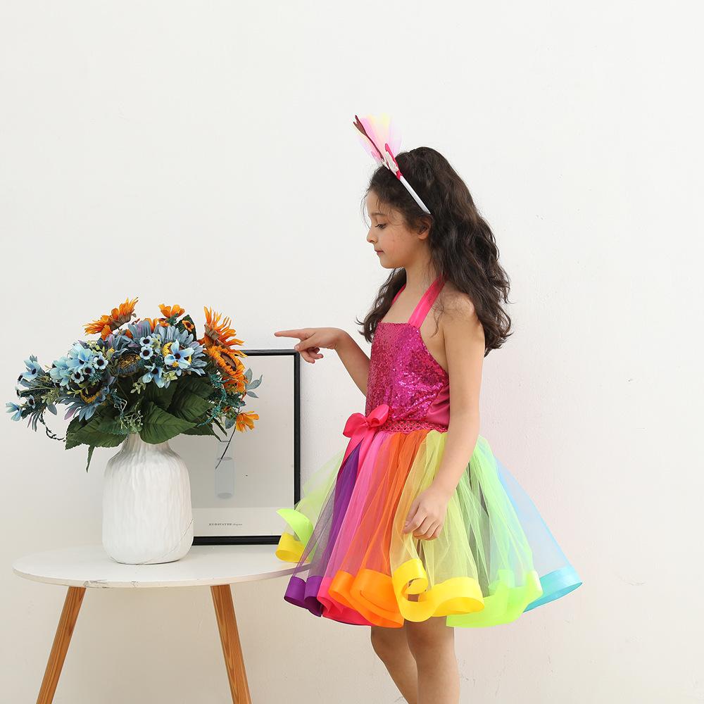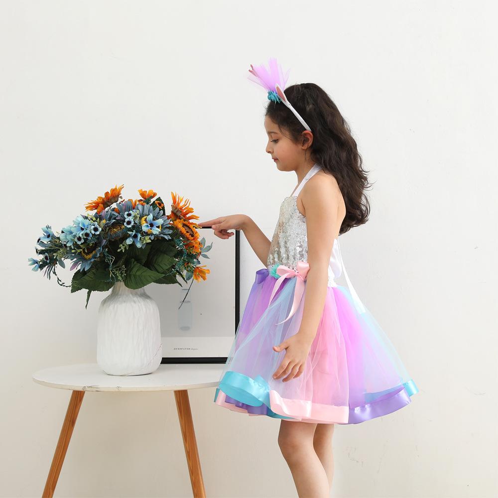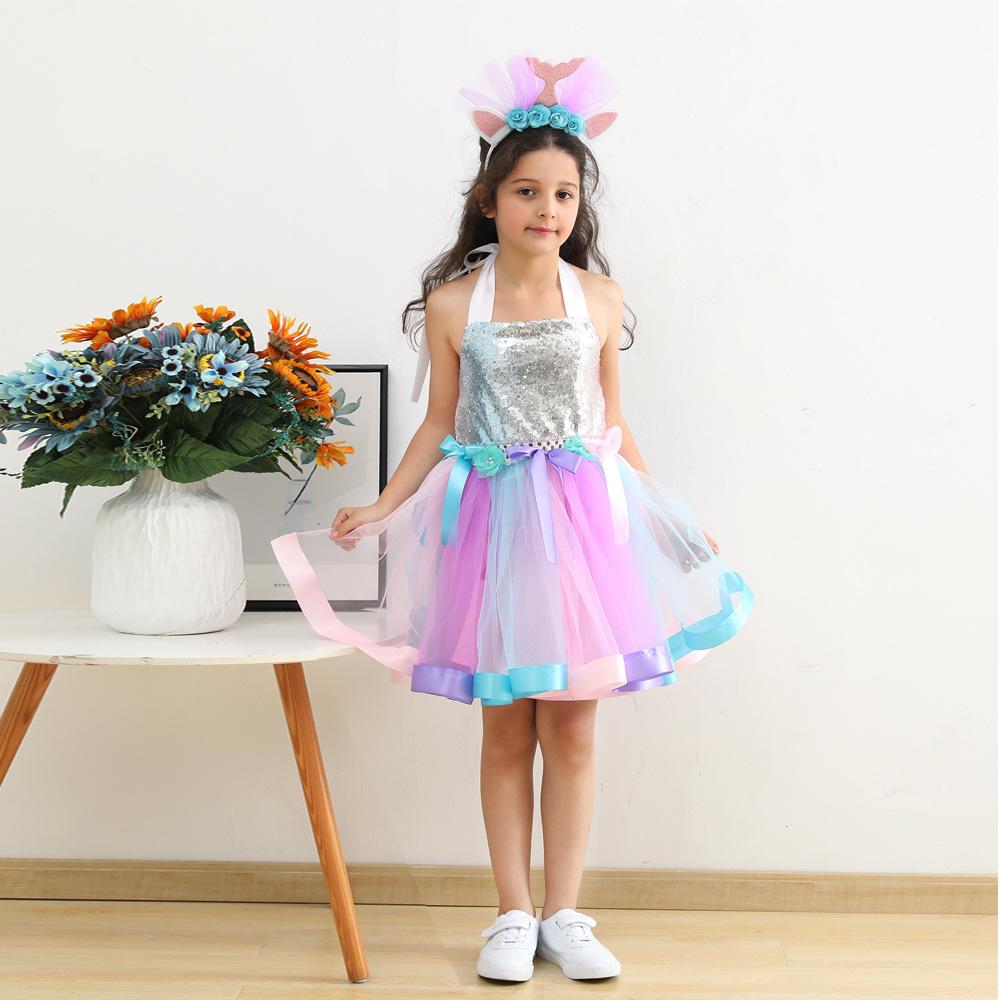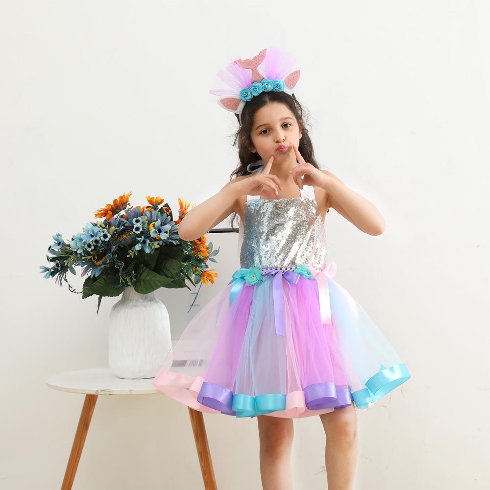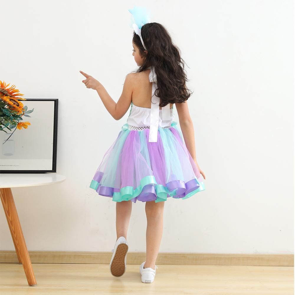 Falda tutú de malla con lentejuelas degradadas para niñas, con tocado, para fiesta de cumpleaños, unicornio, 2023