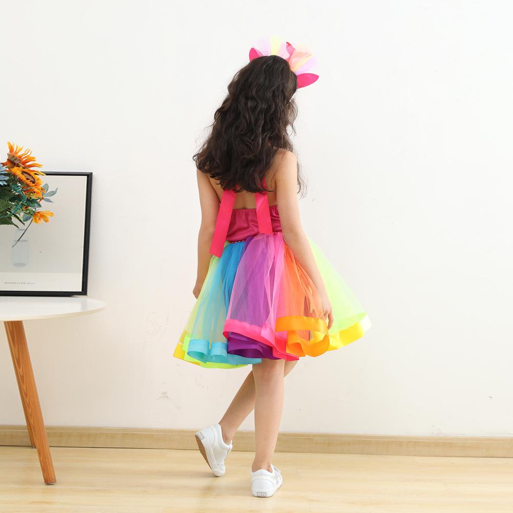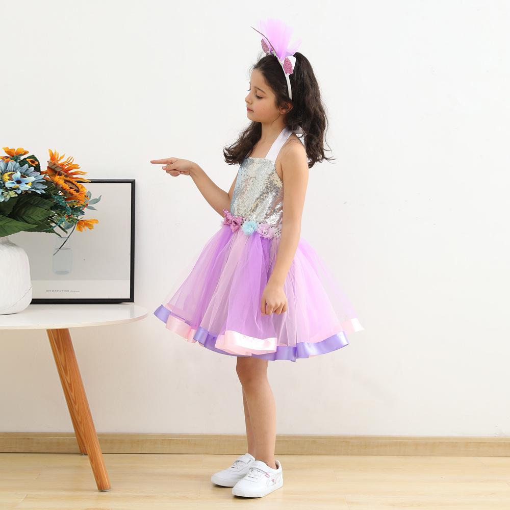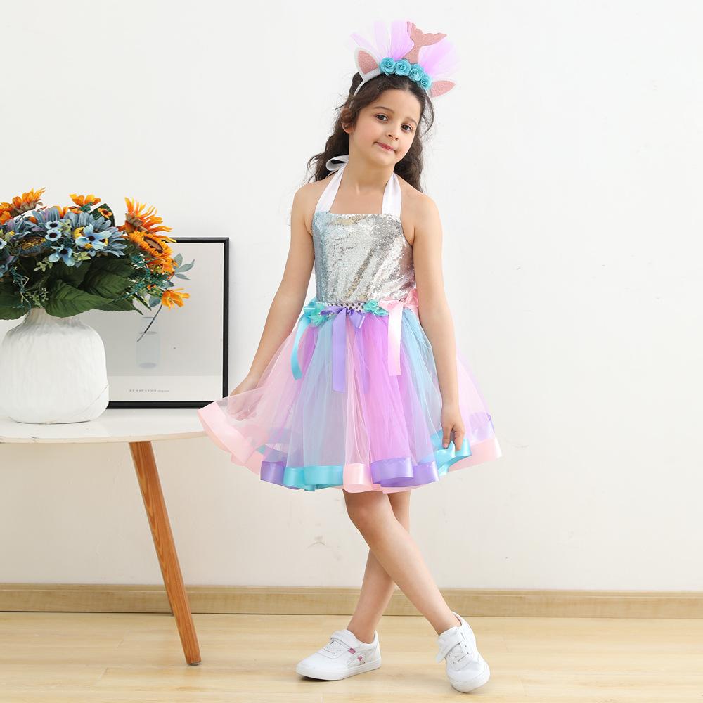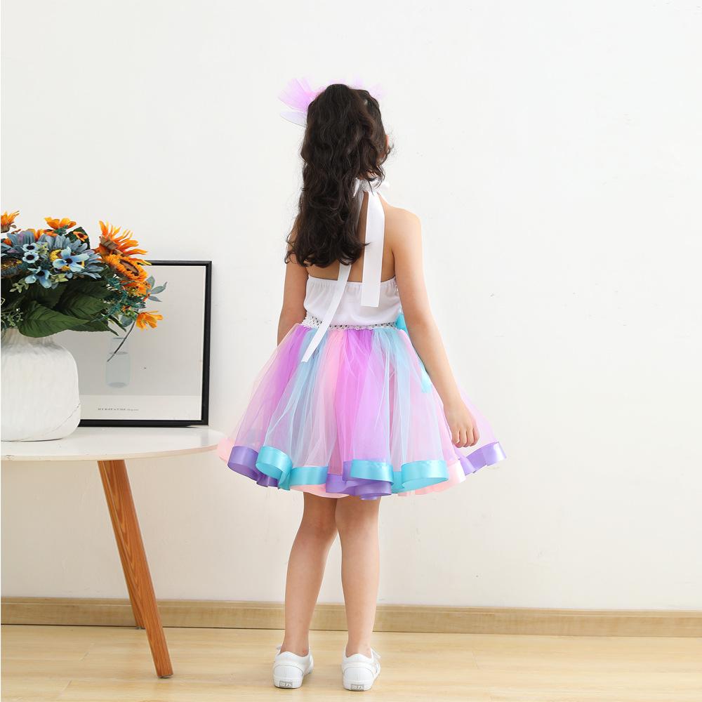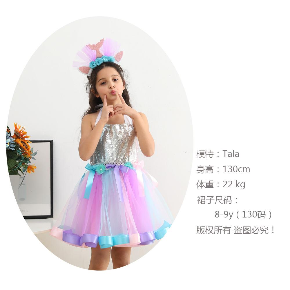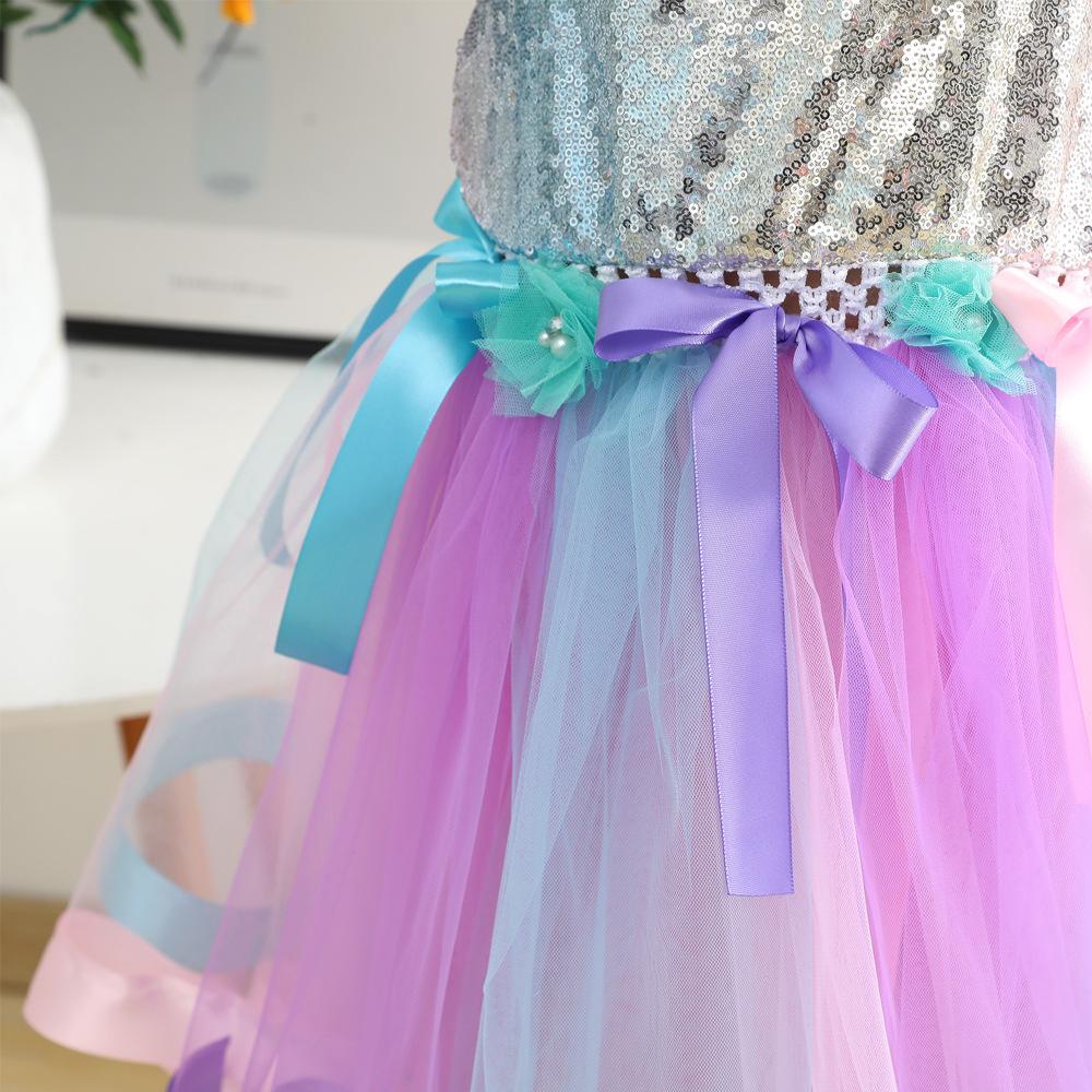 Falda tutú de malla con lentejuelas degradadas para niñas, con tocado, para fiesta de cumpleaños, unicornio, 2023