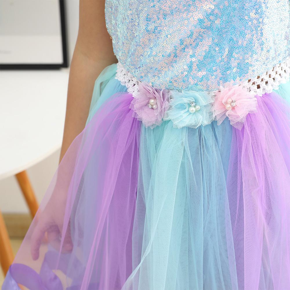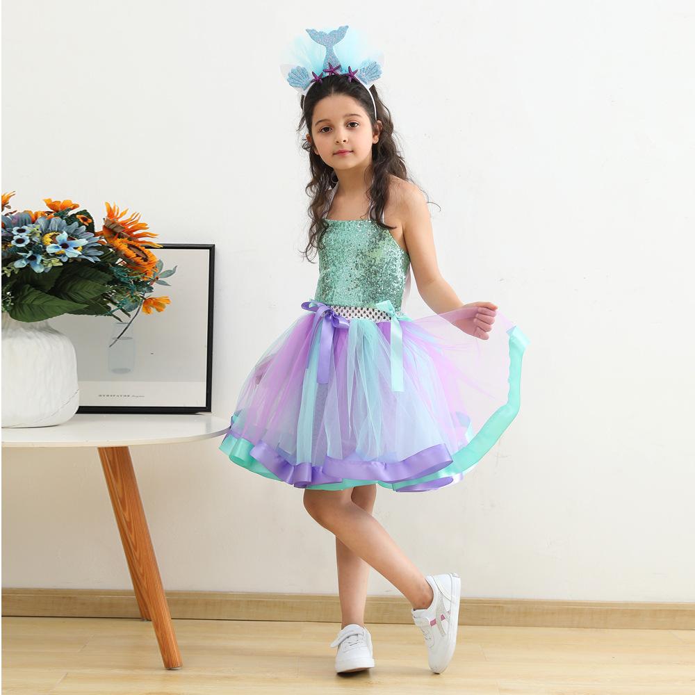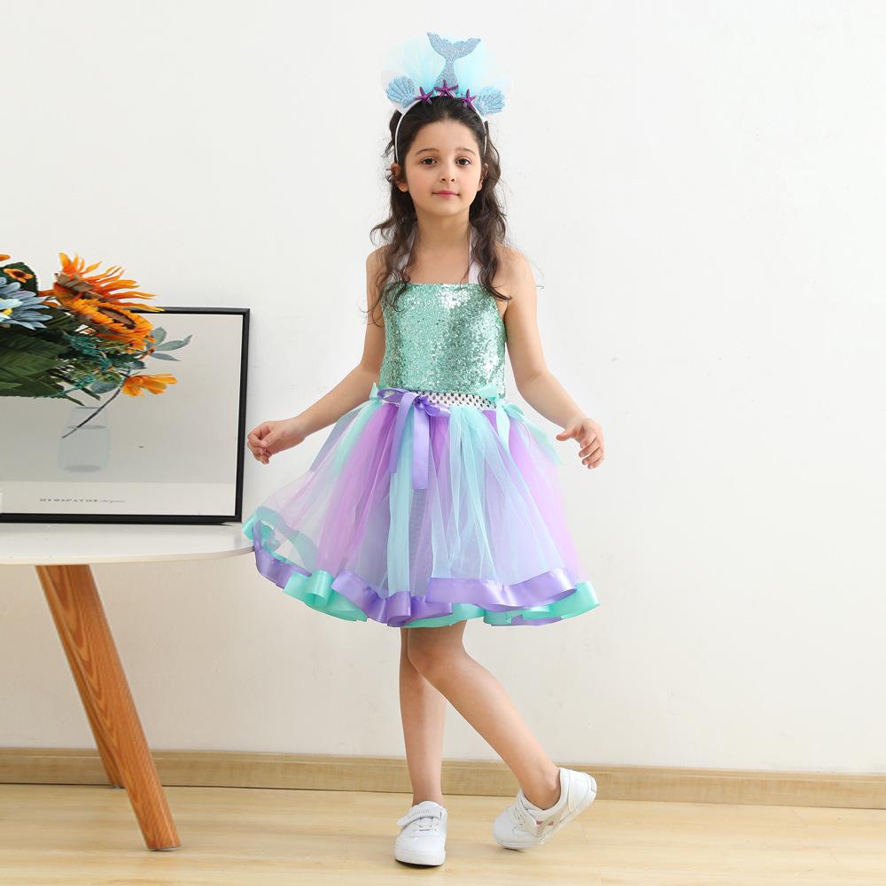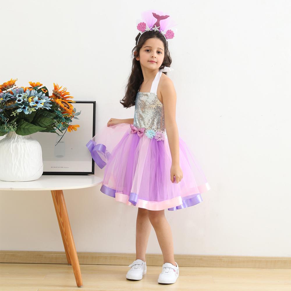 2023 nueva ropa para niños europeos y americanos, vestido de niñas con lentejuelas, falda tutú de flores de sirena con forro