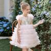 Vestido de niña para fiesta de cumpleaños, falda con tocado, falda de tul de malla de doble capa, disfraz de actuación