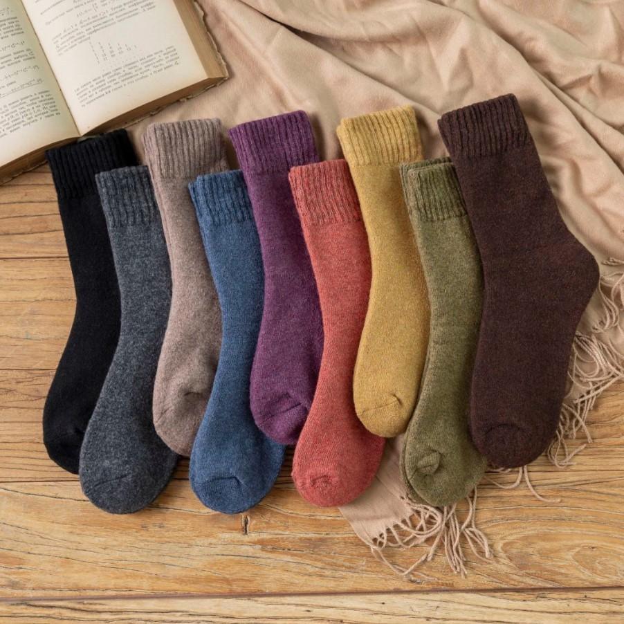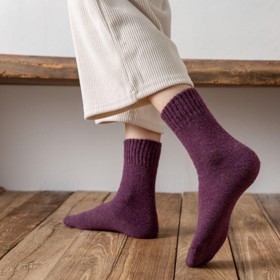 Calcetines de felpa gruesos y cálidos con forro polar de invierno para mujer, calcetines de media pantorrilla de color liso, calcetines de suelo, calcetines de toalla de lana de conejo para mujer