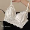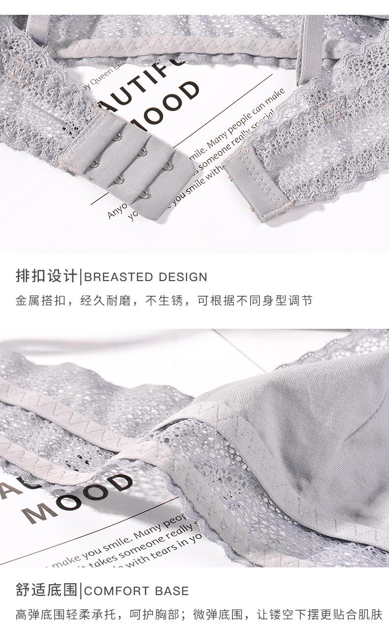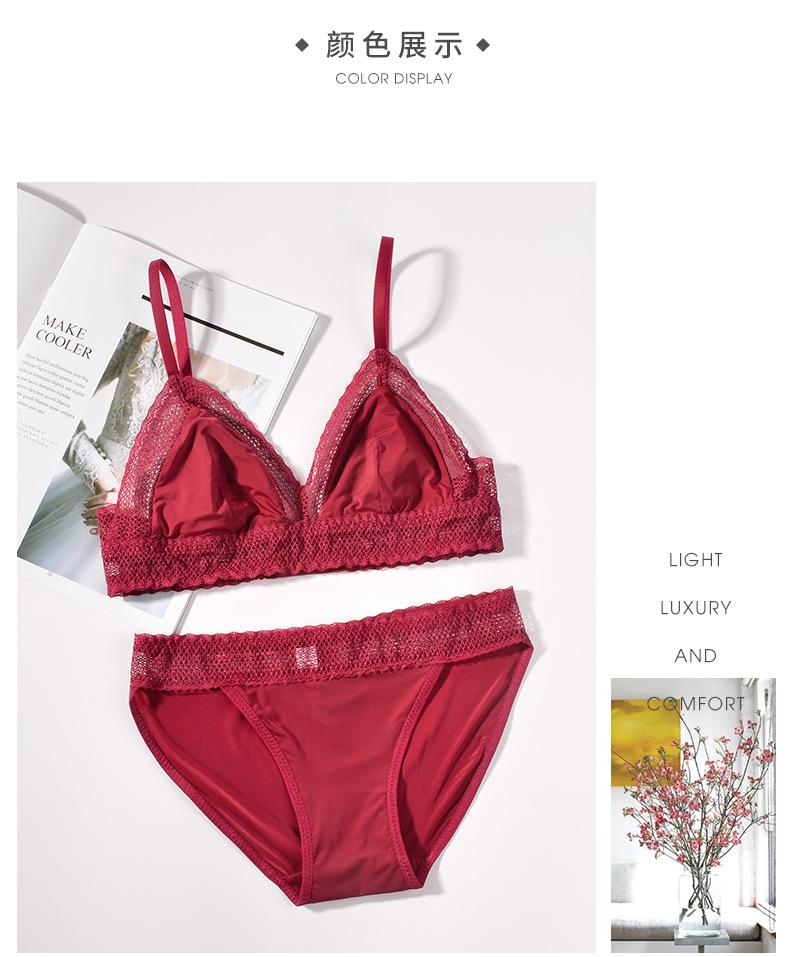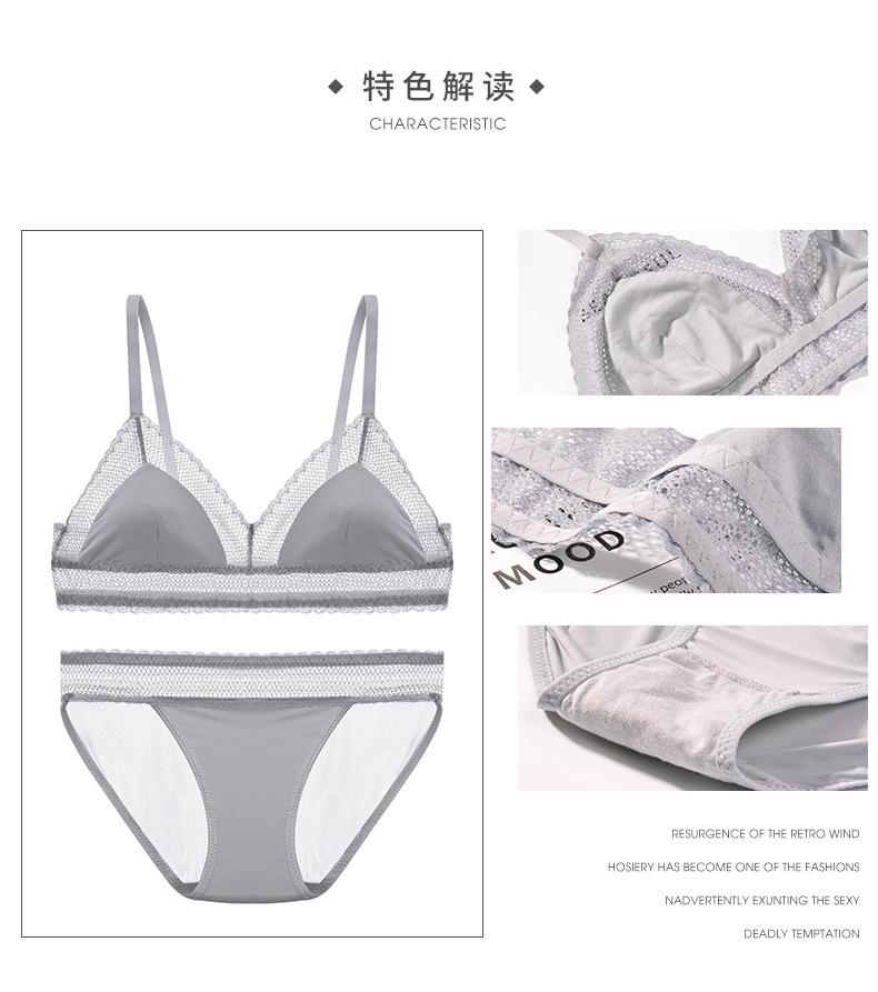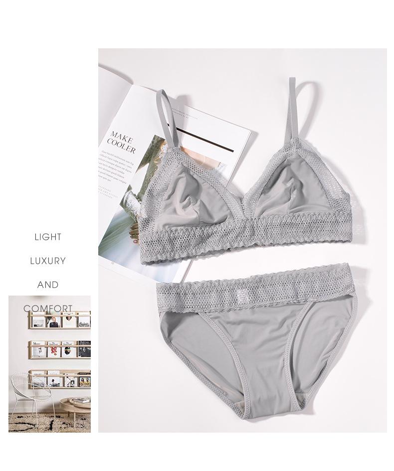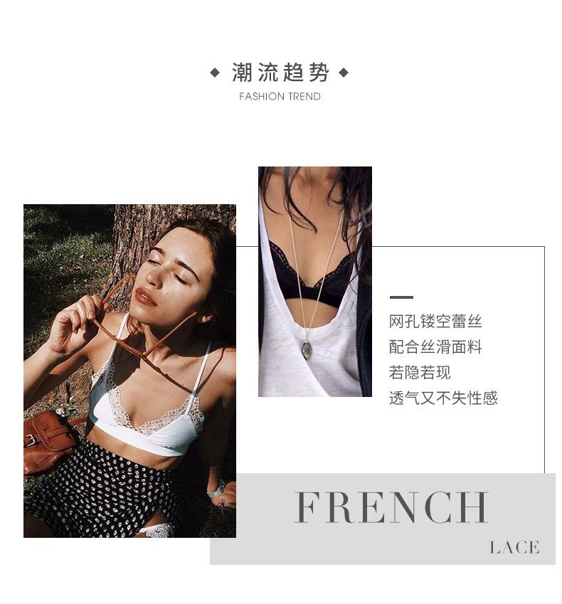 Bralette francés sexy de encaje hueco sin aro de acero, sujetador de copa triangular, conjunto de ropa interior ultrafina T66000
