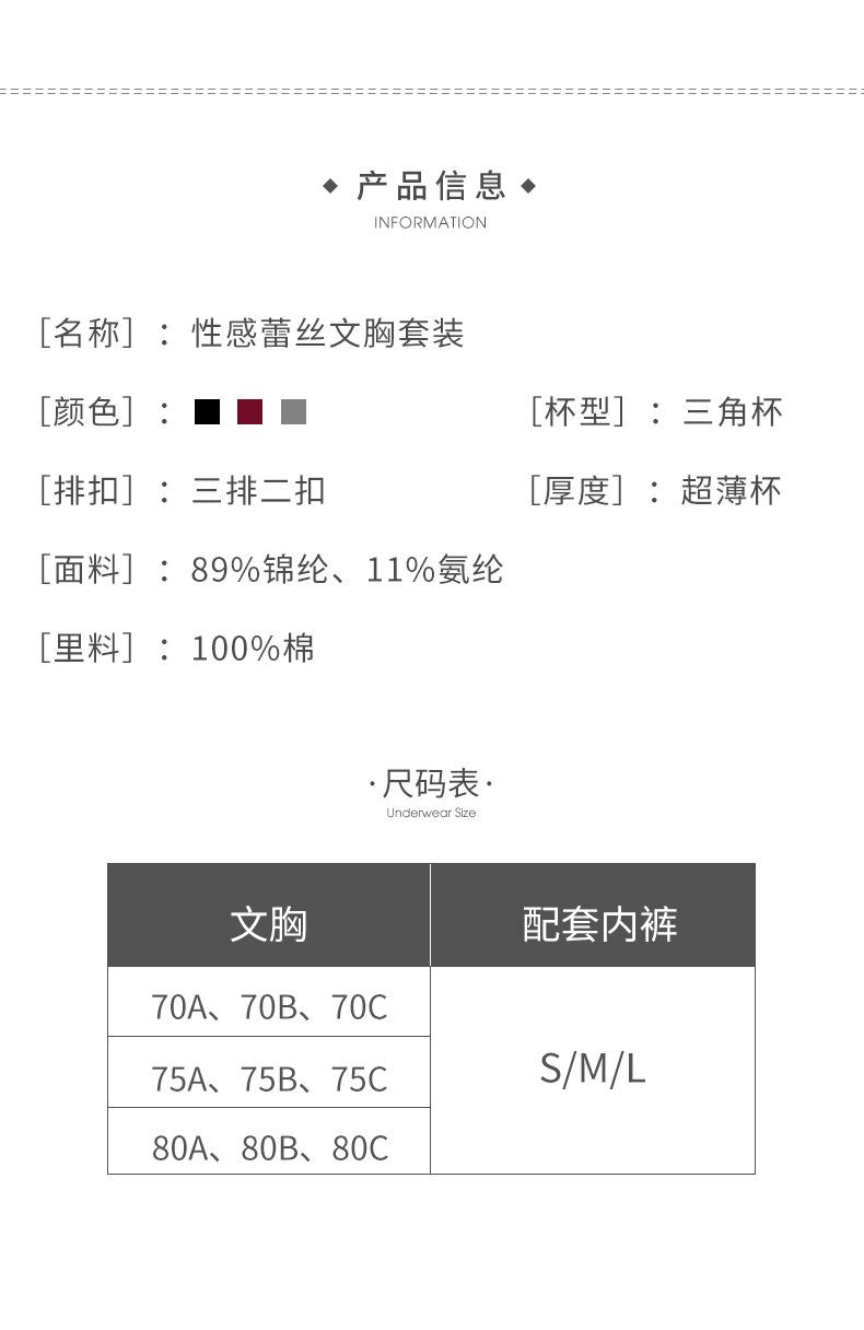 S (bra 70A/70B/70C + panties S), M (bra 75A/75B/75C + underwear M), L (bra 80A/80B/80C + underwear L), XL (bra...