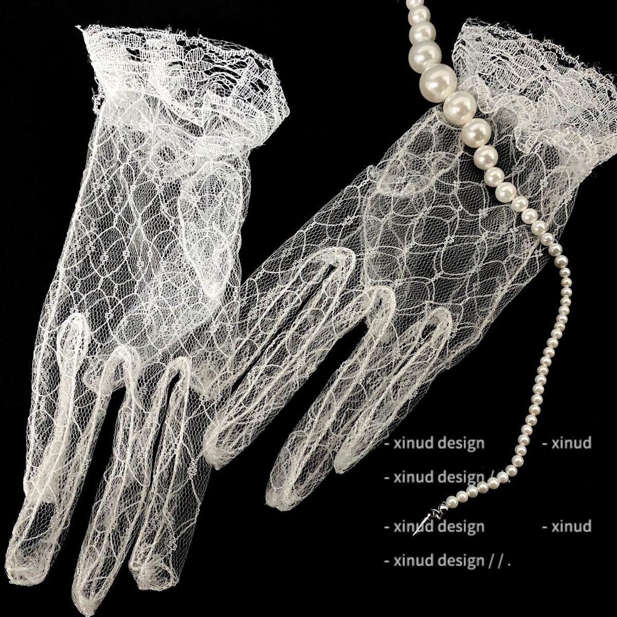 Lencería sexy uniforme seductora malla jacquard manga dedo guantes de encaje guantes decorativos para vestido de novia entrega de una pieza