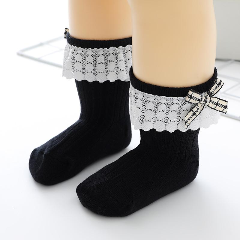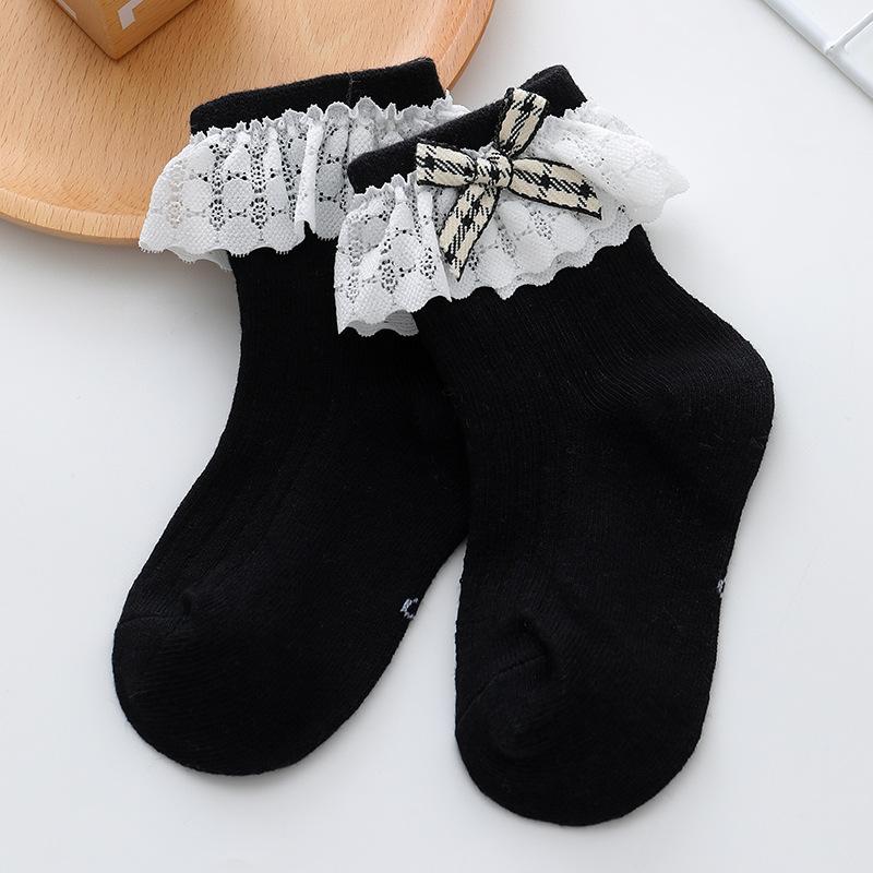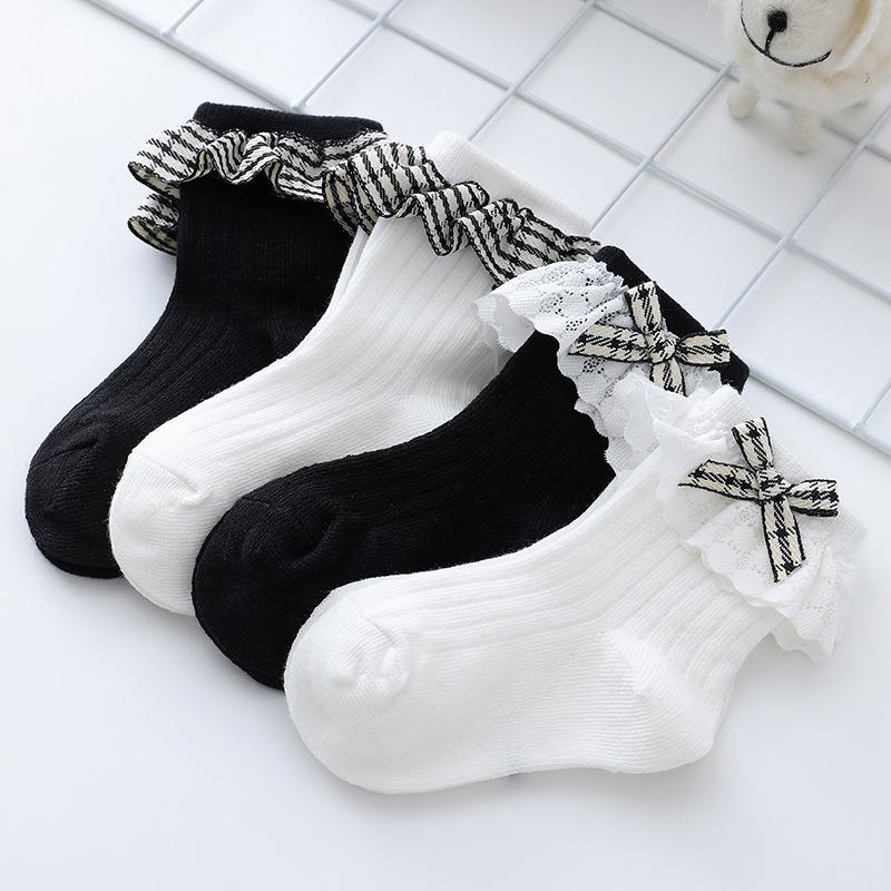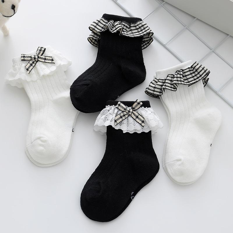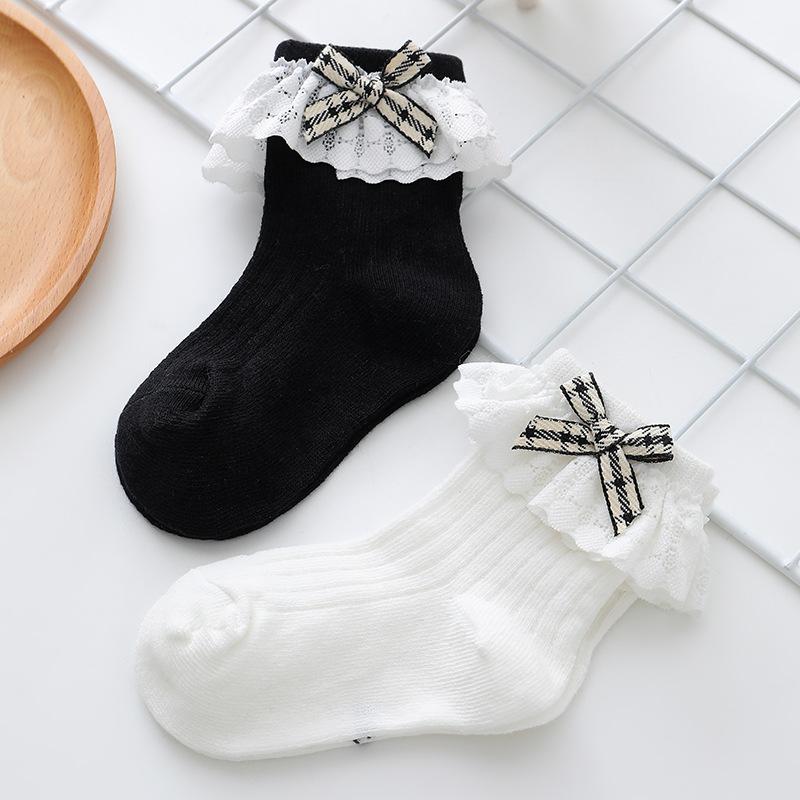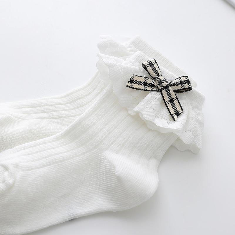 Calcetines de Encaje para Niñas 23 Años Nuevo Estilo Coreano Calcetines de Princesa para Niños Lazo de Encaje Calcetines de Media Caña para Bebé Calcetines Blancos para Niña