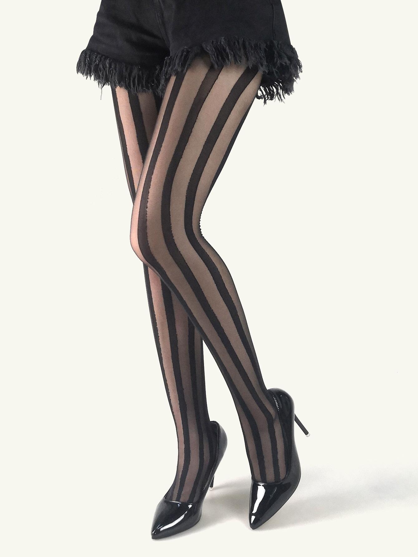 Medias de seda ultrafinas 8D 8547, sexys, con rayas verticales anchas de dos colores, estilo Nueva York, para mujer.