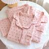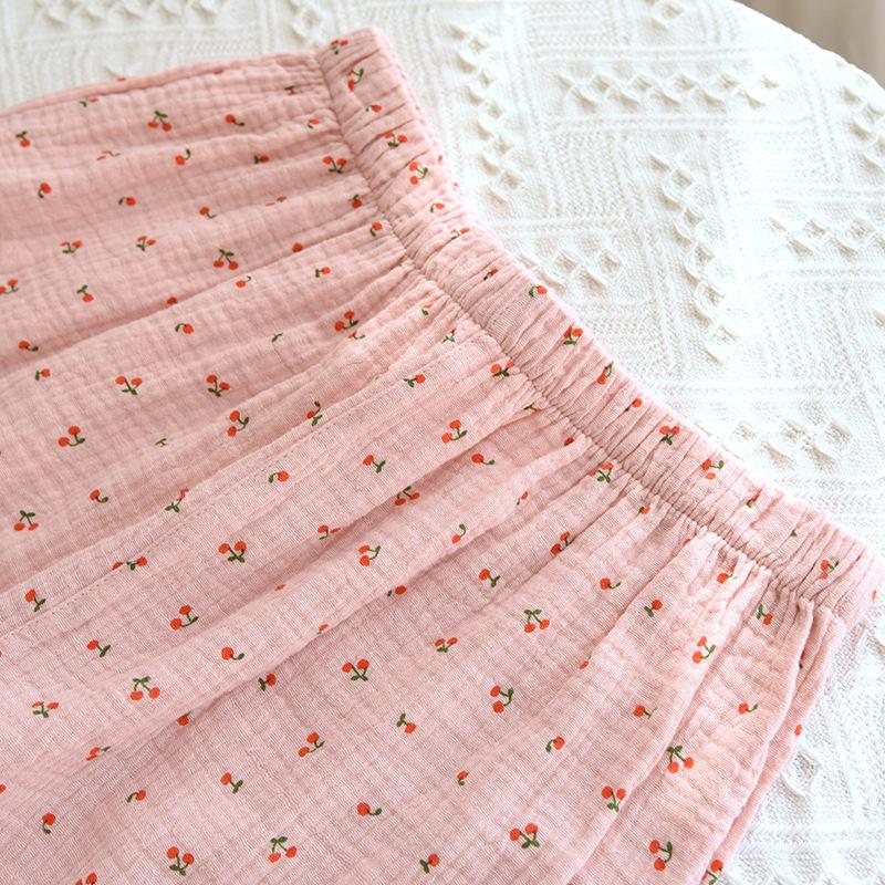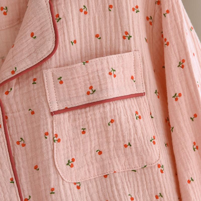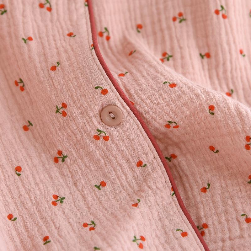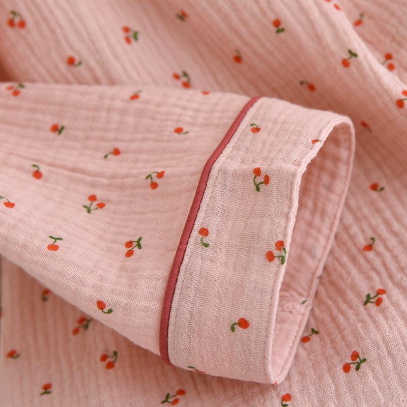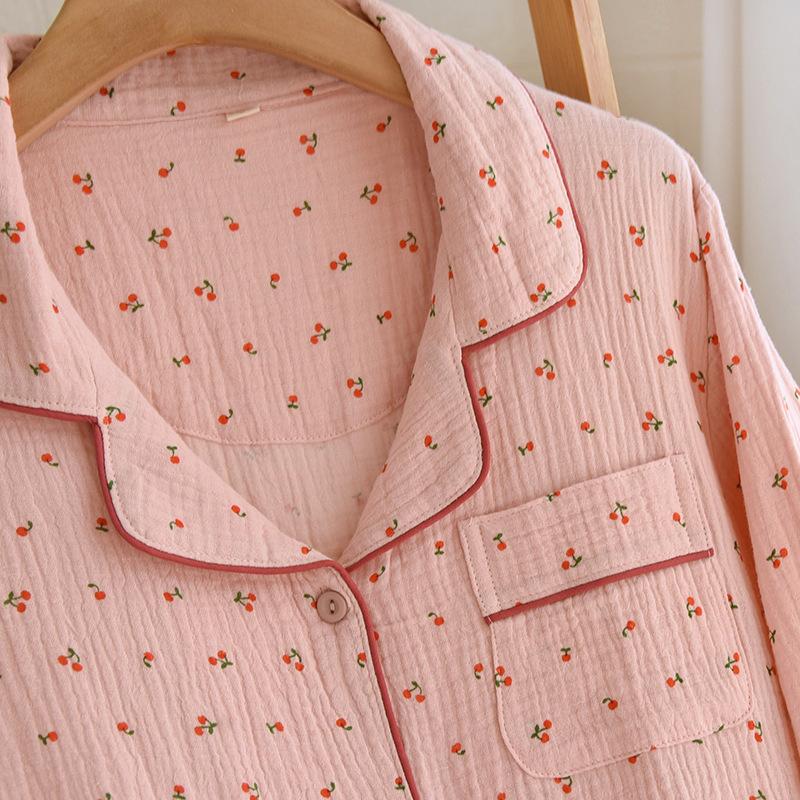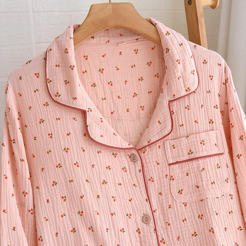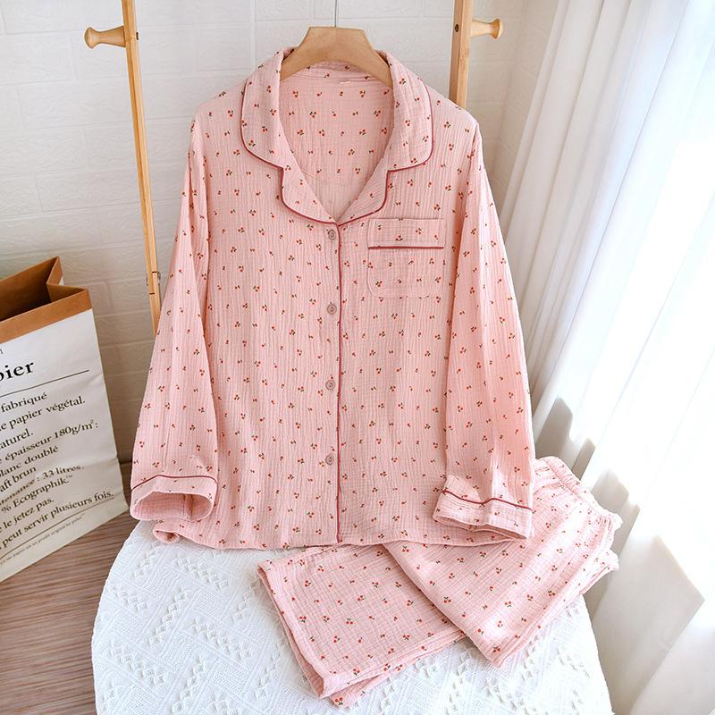 Conjunto de Pijama Nuevo de Crepé de Cereza para Mujer, Casual, Cómodo, Transpirable, de Manga Larga, Pantalón Largo, Conjunto de Ropa de Descanso al por Mayor