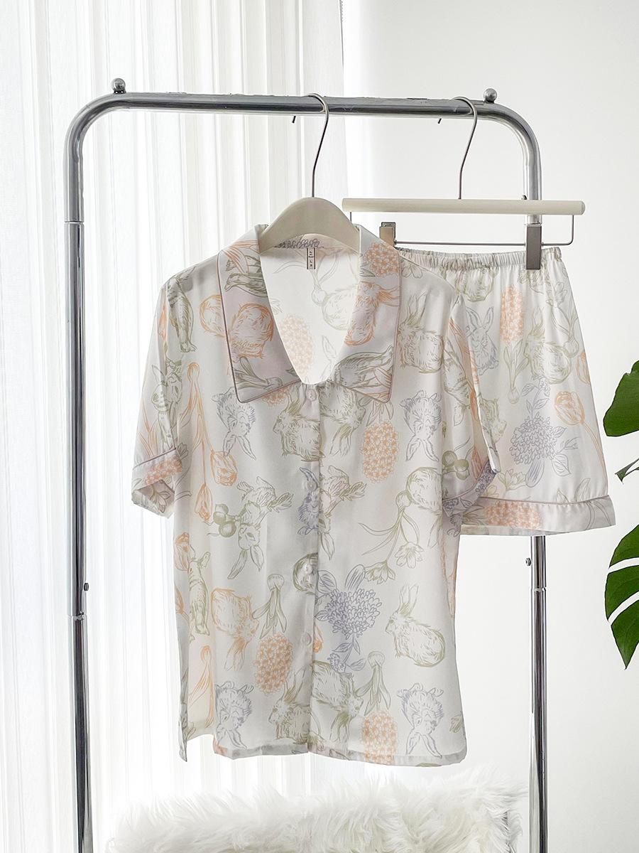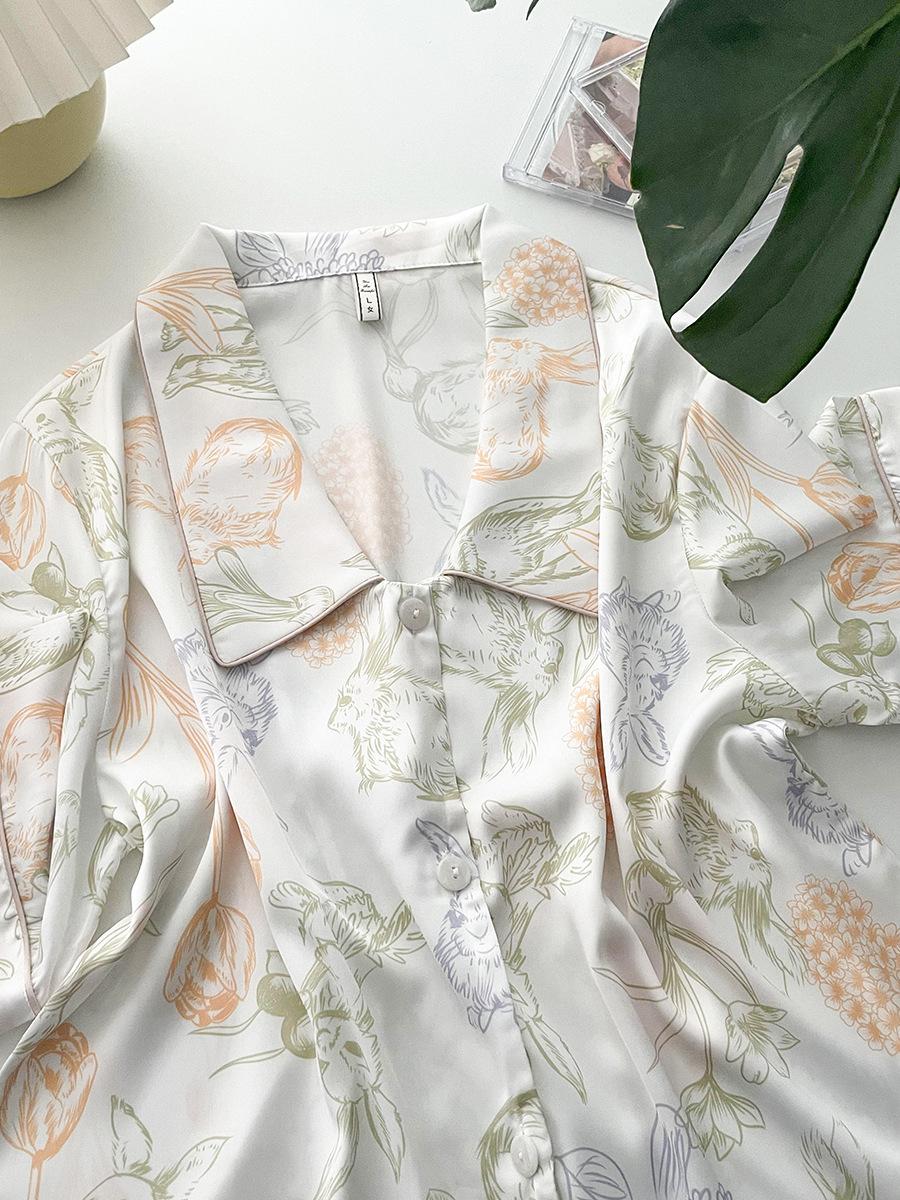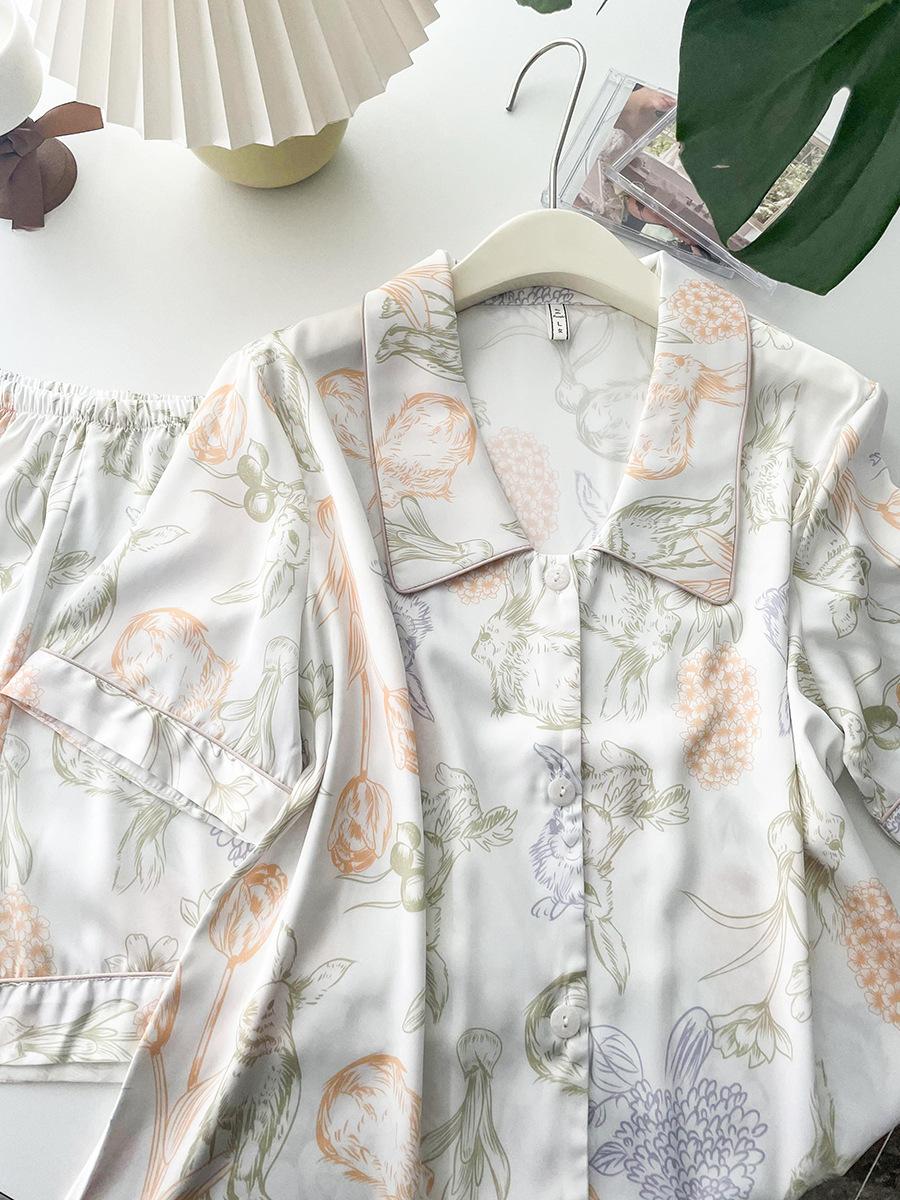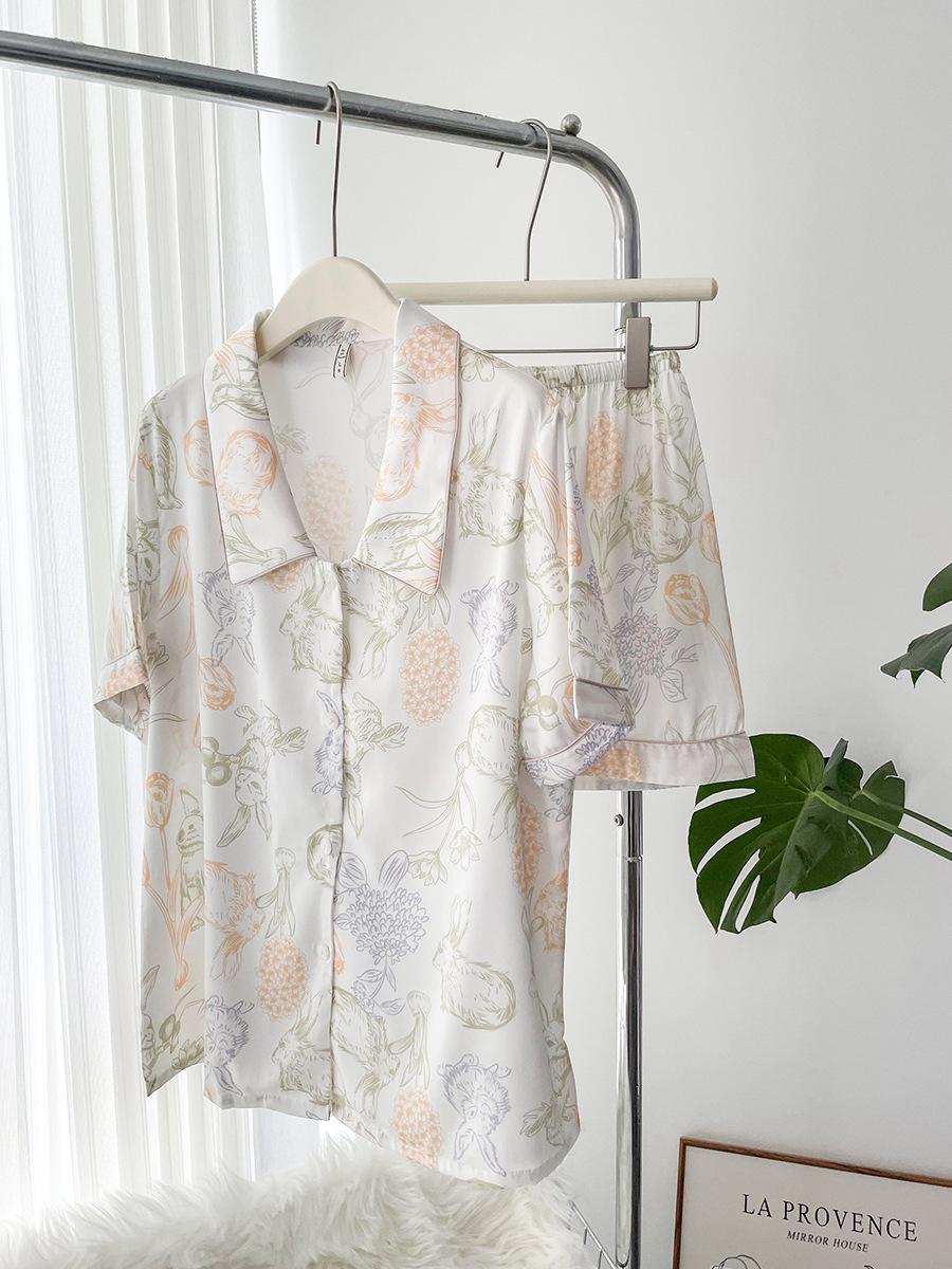 Pijama de verano para mujer, de seda helada, de alta gama, con solapa, para el hogar, holgado, informal, de seda helada para mujer
