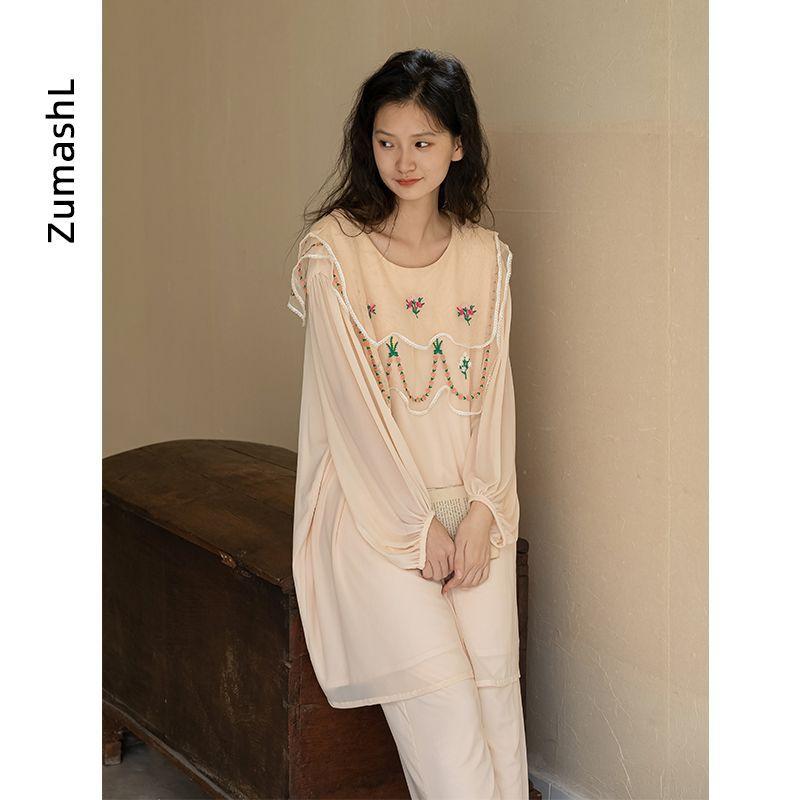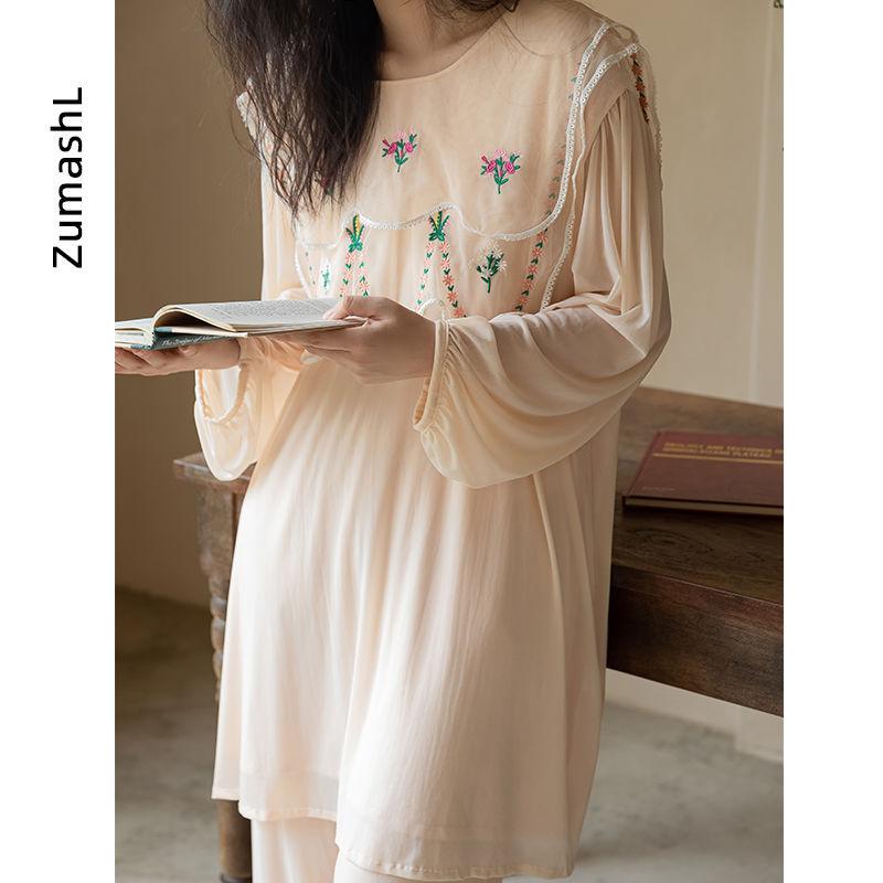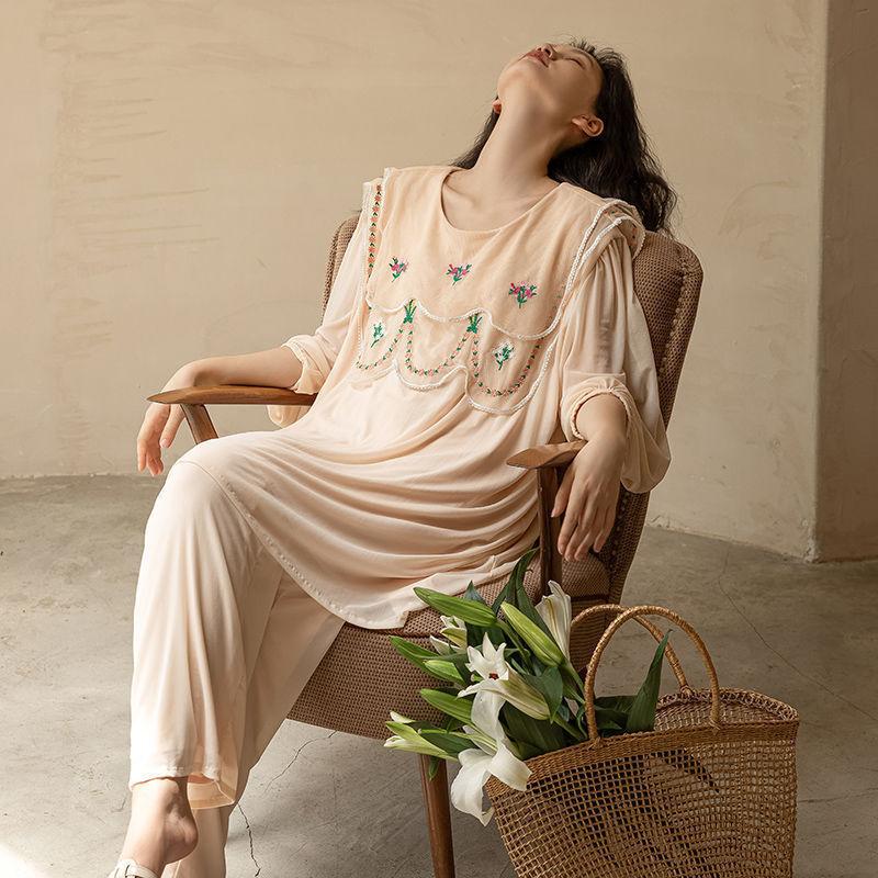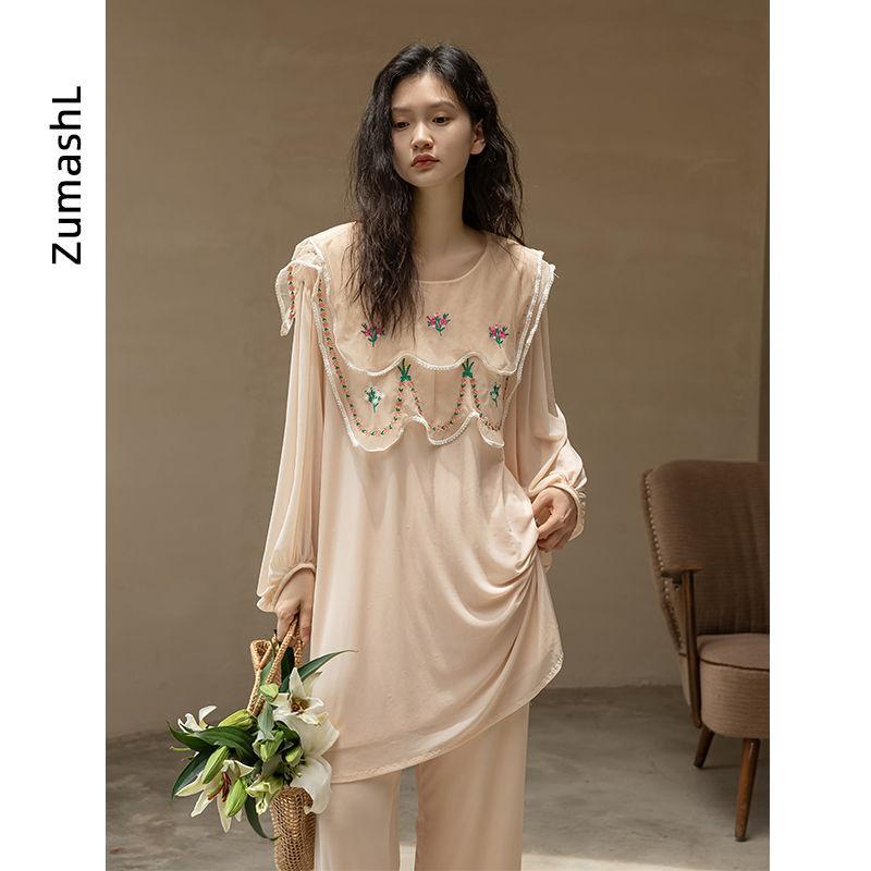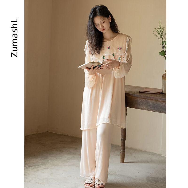 Pijama Modal Zumashi para Mujer Verano Manga Larga Delgado Conjunto de Dos Piezas Primavera y Otoño Ropa para el Hogar Traje Ropa Exterior 140