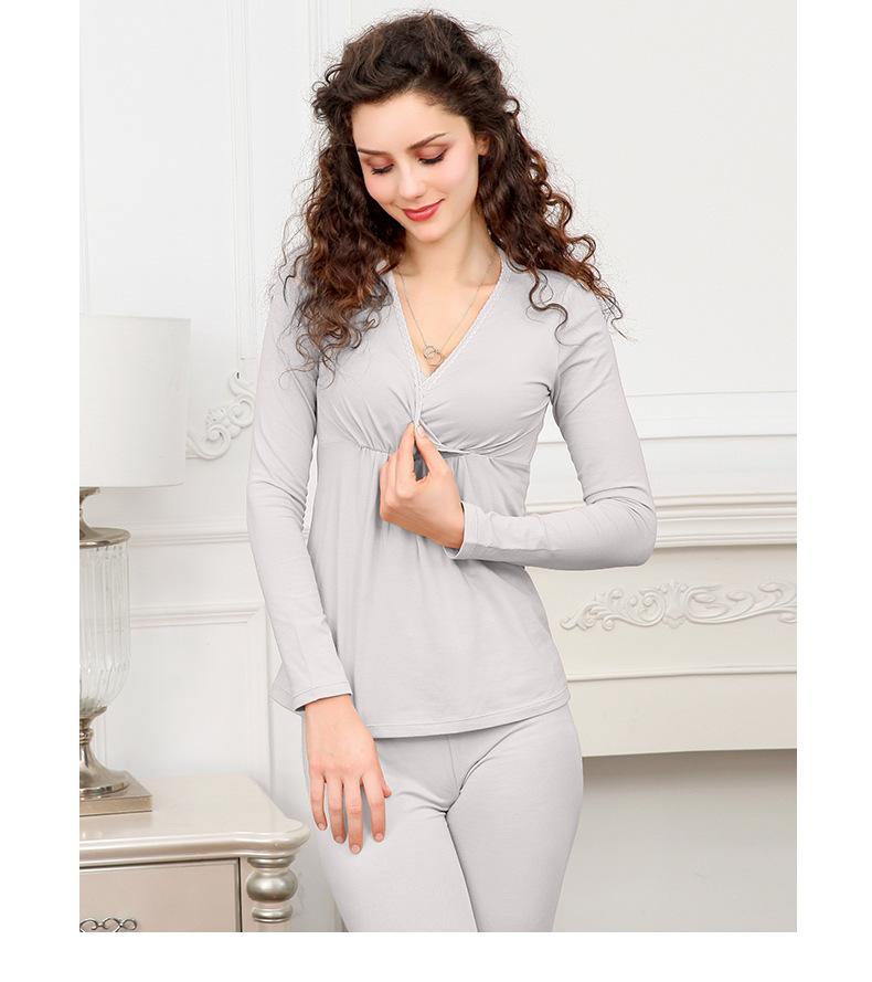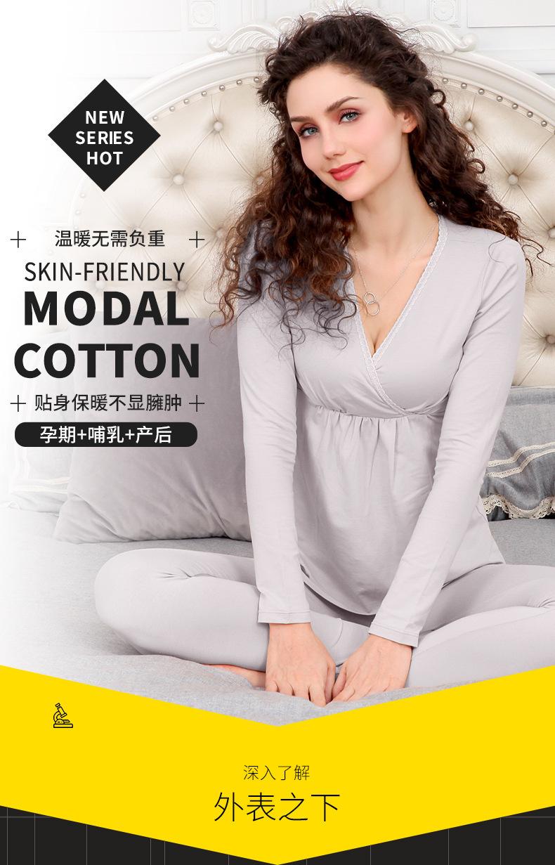 Ropa de lactancia de otoño para mujeres embarazadas, ropa interior térmica para mujeres embarazadas, ropa interior de lactancia gruesa, suéter de algodón, ropa de confinamiento para mujeres, otoño e invierno