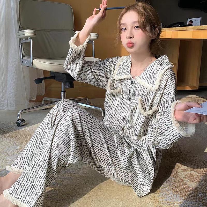 Pijamas de mujer de primavera y otoño de manga larga, lindos y sencillos para el hogar, de alta calidad, estilo nuevo 2023, se pueden usar al aire libre, traje de talla grande