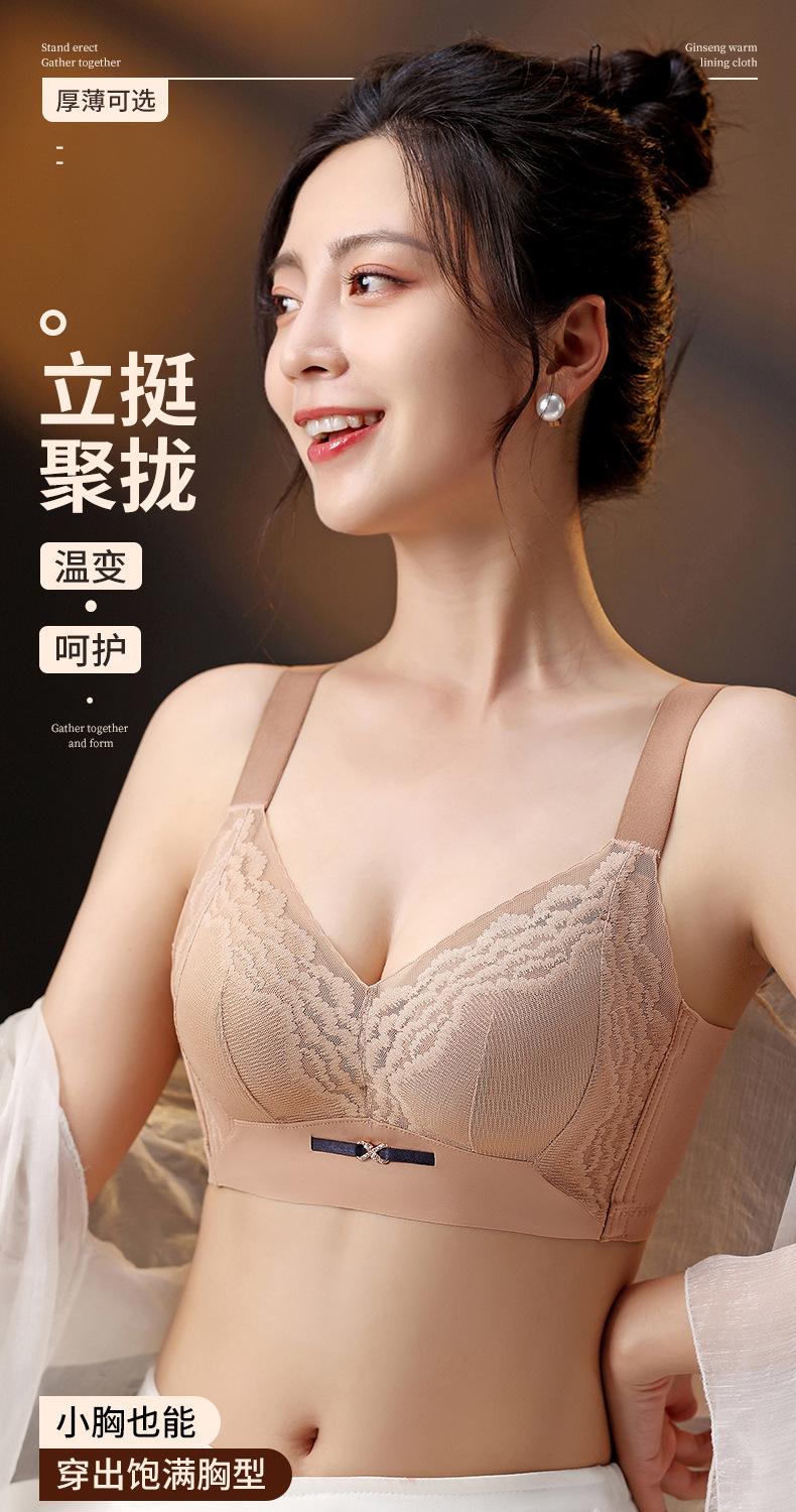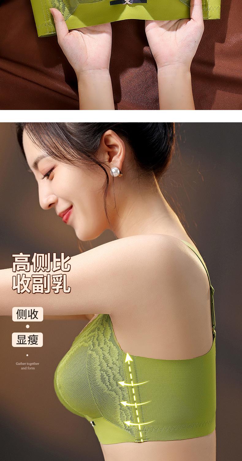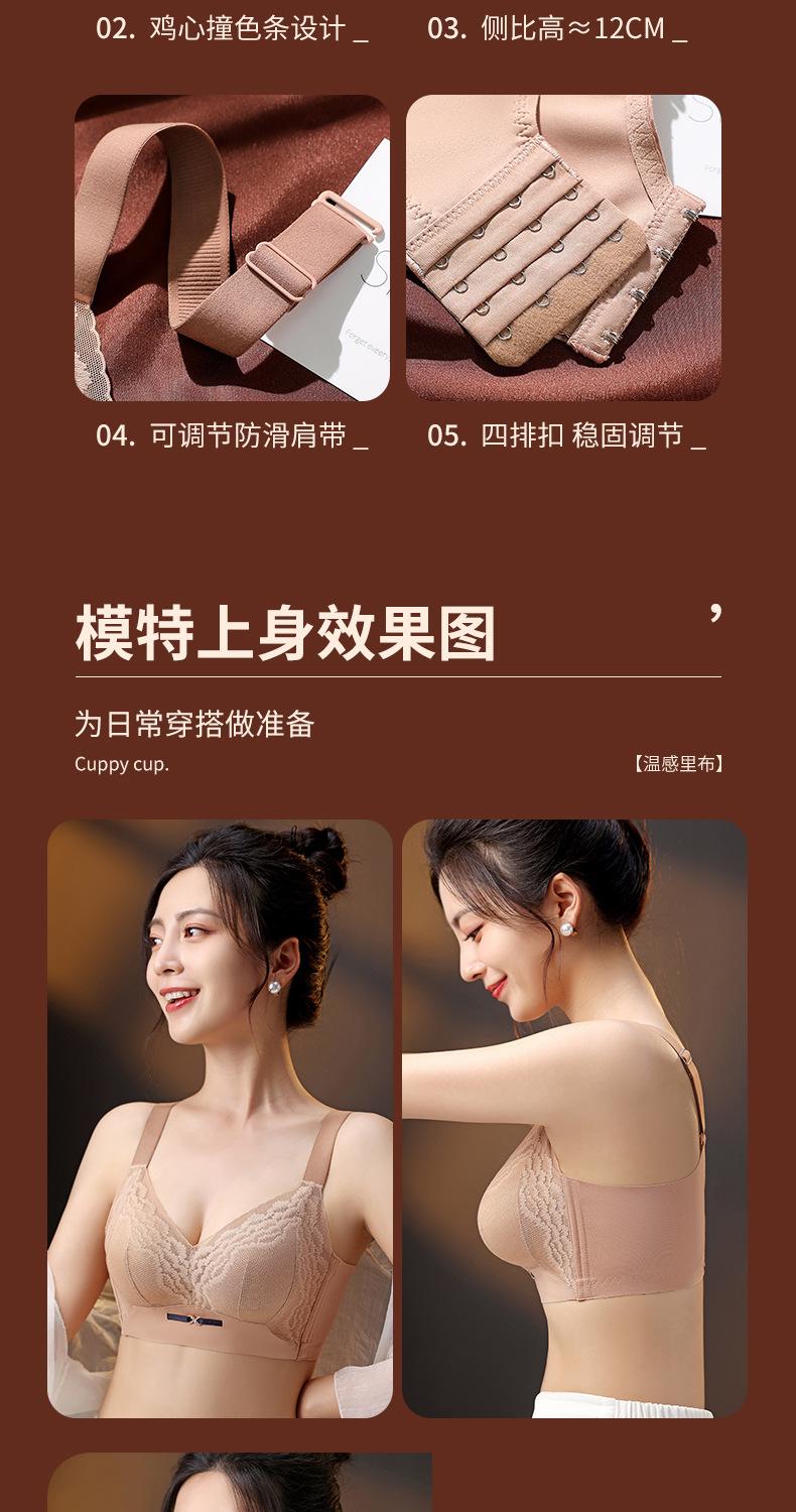 Este es un producto tejido con diseño de encaje. Está disponible en copas medianas-gruesas 32-38 AB y copas delgadas 34-40 BC en seis colores: negro/rojo/gris claro/marrón rosado/verde/blanco. Tirantes fijos y ajustables antideslizantes de 2.5 cm de ancho, tejidos de las alas que se pueden cortar a voluntad, cuatro filas de botones en la espalda, solo una pieza, sin ropa interior a juego.